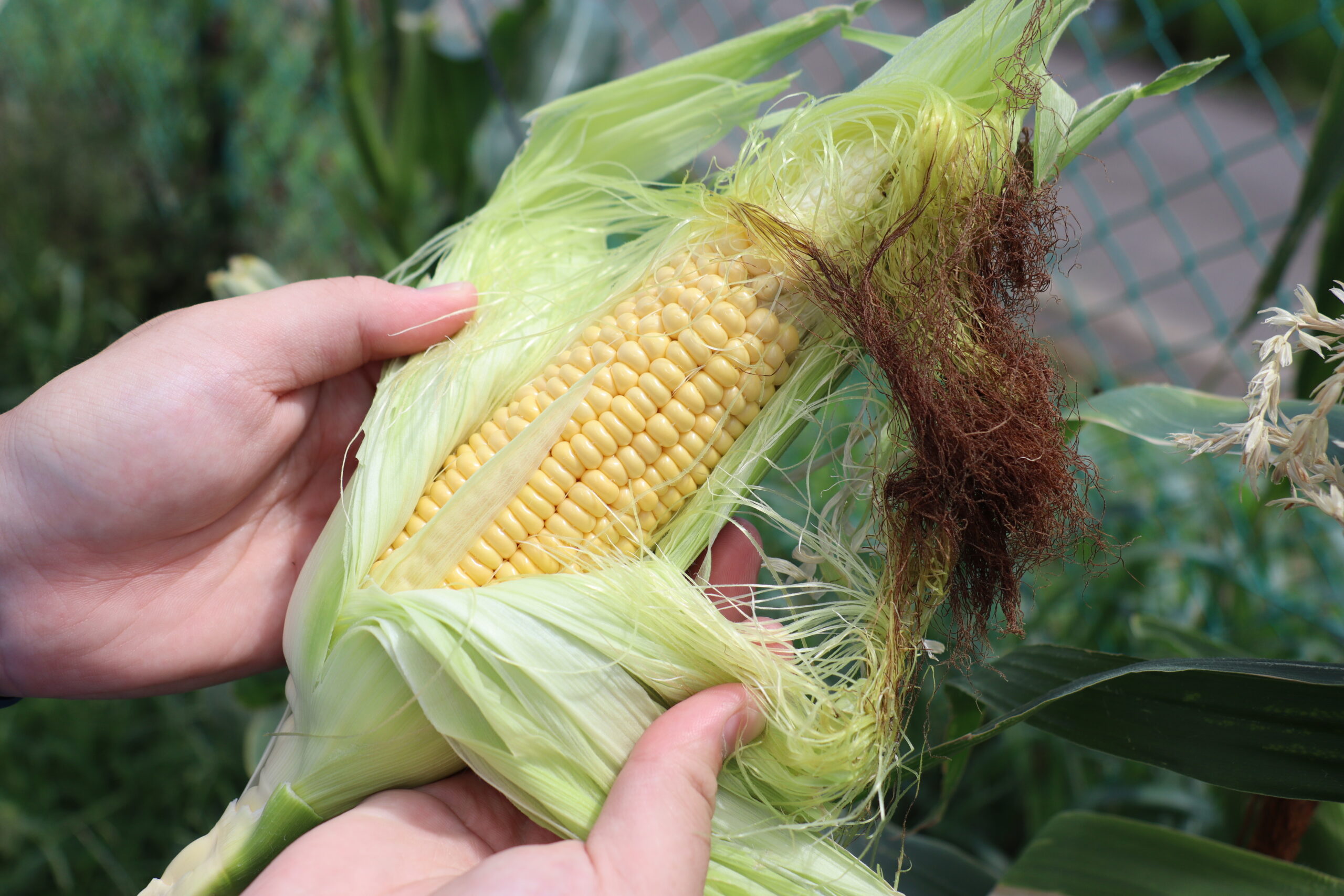夏のうだるような暑さが続く中、夏野菜は旬を迎えています。なす・とうもろこし・枝豆は日を増すごとに大きく成長しています。