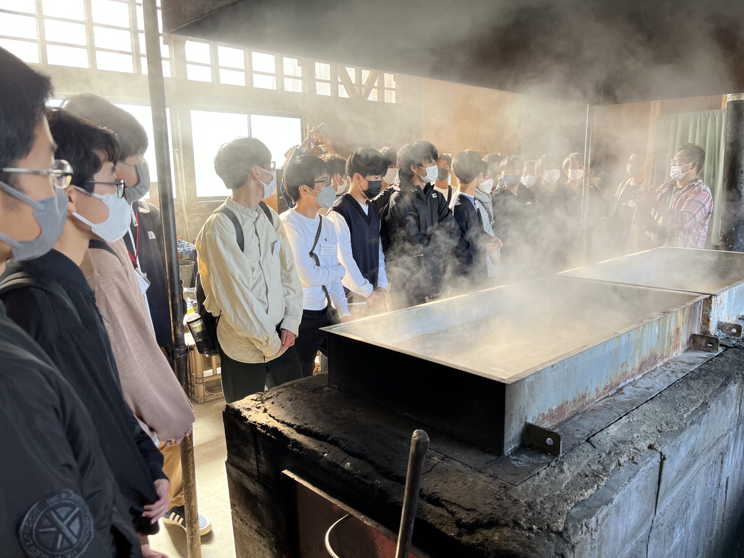 午後のプログラムは「地方創生の学び」越前海岸沿いにある志野製塩所にて塩作りと越前海岸盛り上げ隊について学びに訪れました。