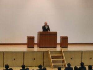 校長講話の後、受験を控えた高校3年生を全校生徒の拍手で送り出しました。