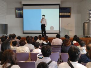 また、本校フロンティアコースの高校生のプレゼンテーションをお聞きいただきました。