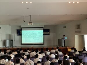 中学2年生第1回学力推移調査の結果の返却。進路担当から全体の成績の概況、模試ノートの取り組みについて細かな話がありました。