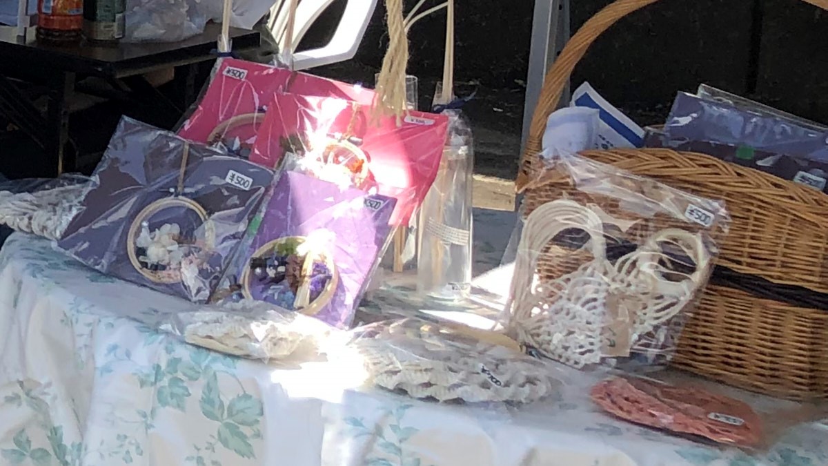 今年度は鉢植えや手作り品の販売の他に体験コーナーを設けてカレイドフレーム作りを体験して頂きました。