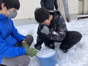 雪燈篭づくりのプランは湖南高校の生徒さんが進めてくれています。どんな燈篭をいくつ作るのか、作業時間をどのくらいで設定するか、解答のない問いが盛りだくさん。どこまで自分たちだけで安全で楽しい交流になるかを一生懸命考えて準備してくれました。