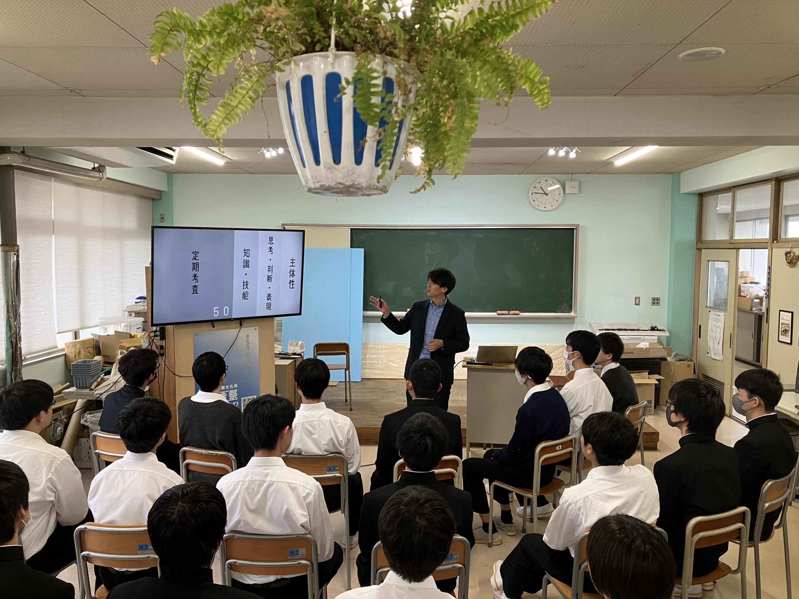 生徒指導部長からは「箸よく盤水を回す」についてのお話がありました。この言葉は小さな努力も続けると、大きな力になるという意味です。高校生活を過ごす上で大切にしてほしい言葉です。