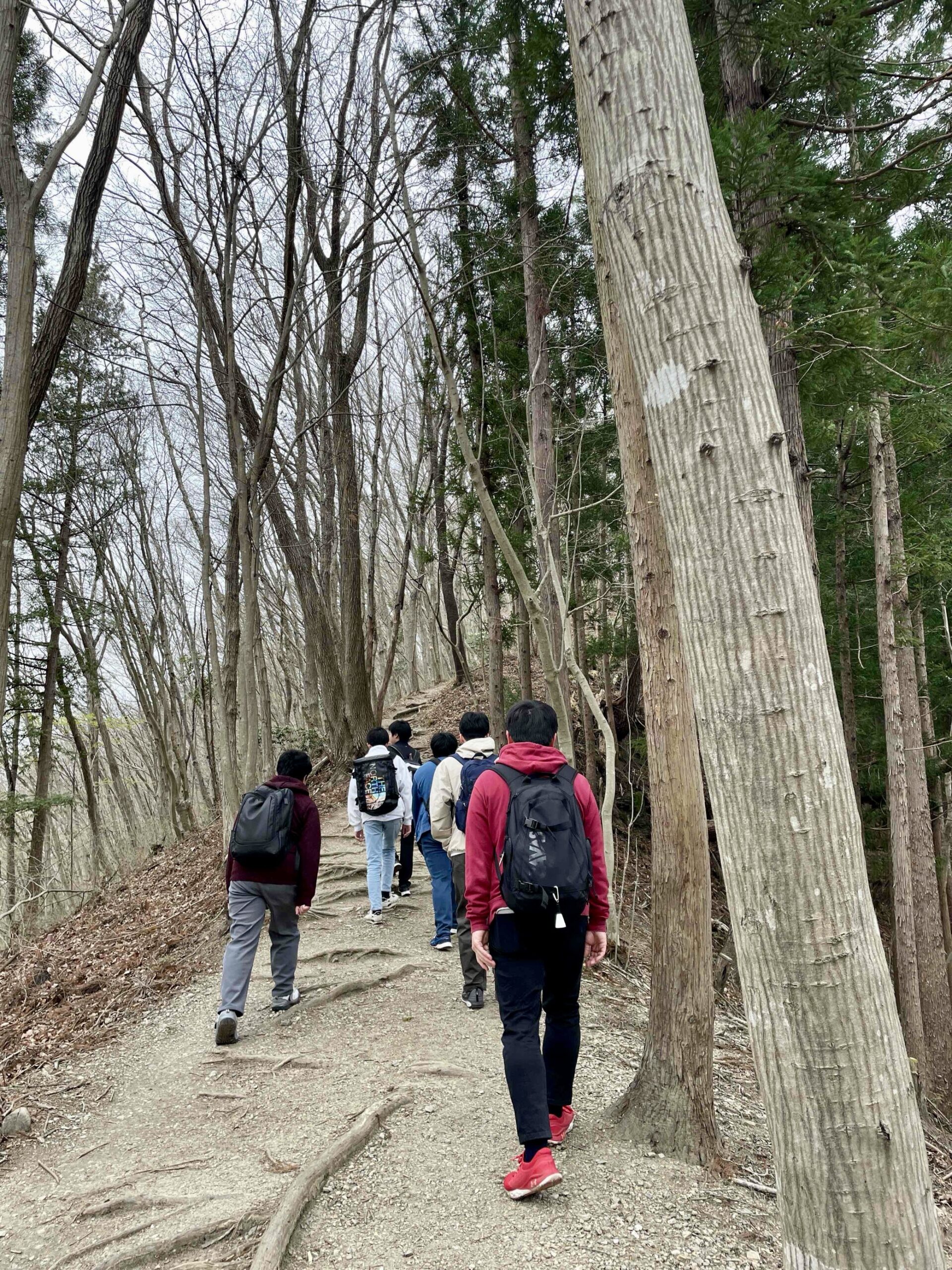 さて今年は・・・野上駅から長瀞アルプスハイキングコースを通り長瀞駅までの道のりを歩きます。秩父三社でもある宝登山神社が終着点です。3学年混合の班で言葉を掛け合いながらまずは山頂を目指します。