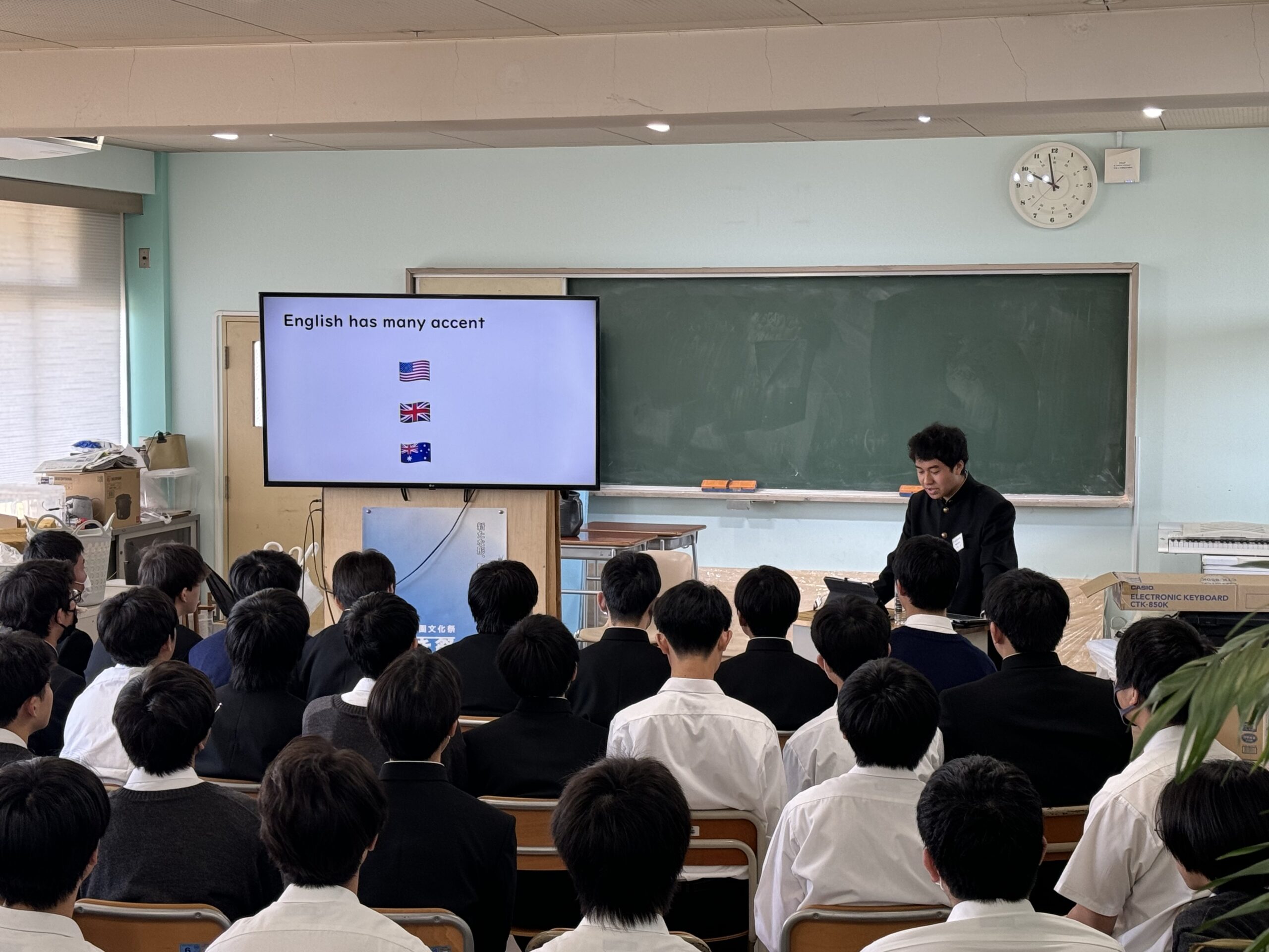 次に、生徒が英語でのスピーチを行いました。語学の学びについてや、語源から読み取れることなど”ことば”について語ってくれました。