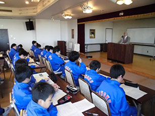 春の青天のもと出発式を行い、千葉県白子へオリエンテーション合宿に出発しました。 開校式を無事に済ませ、生徒は校長の「中学生になるということ」の話をしっかりと聞き、 自分の目標・班の目標をたてました。そして、クラスの目標を真剣に話し合っています。