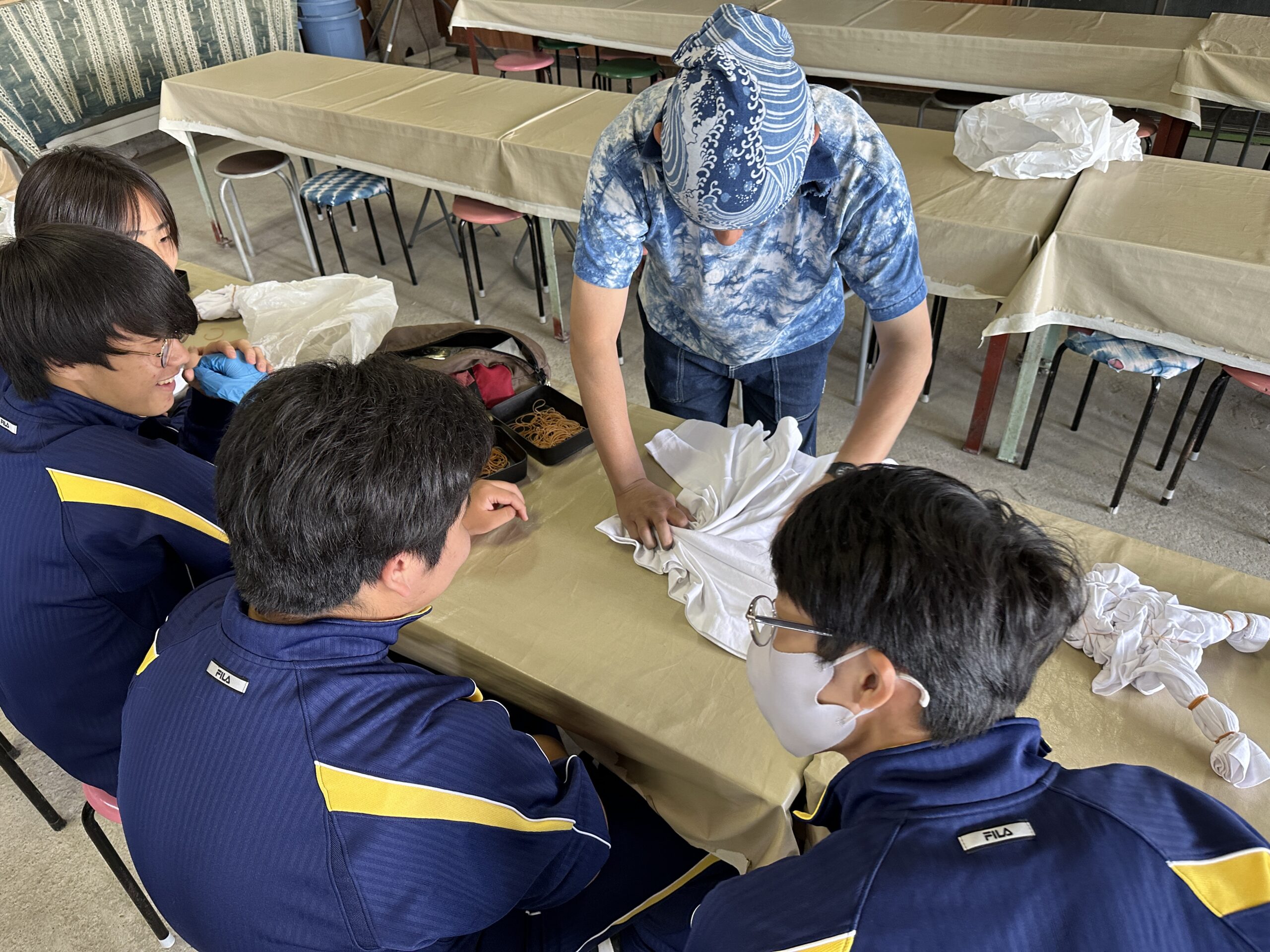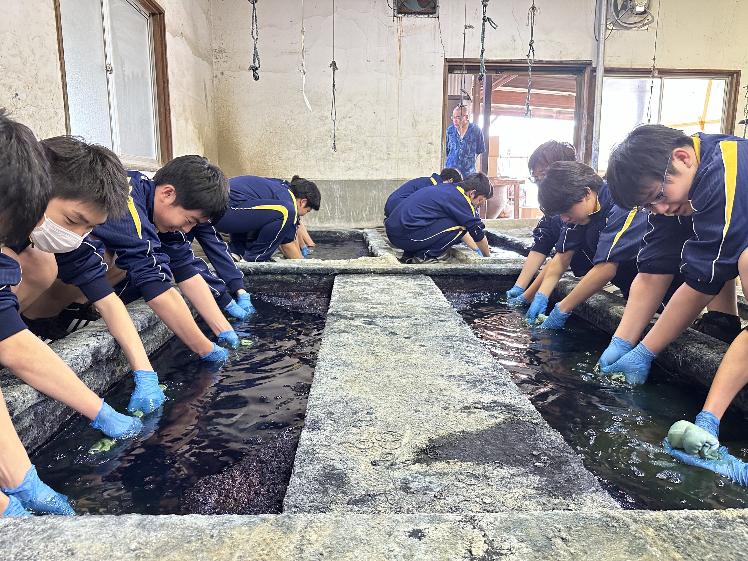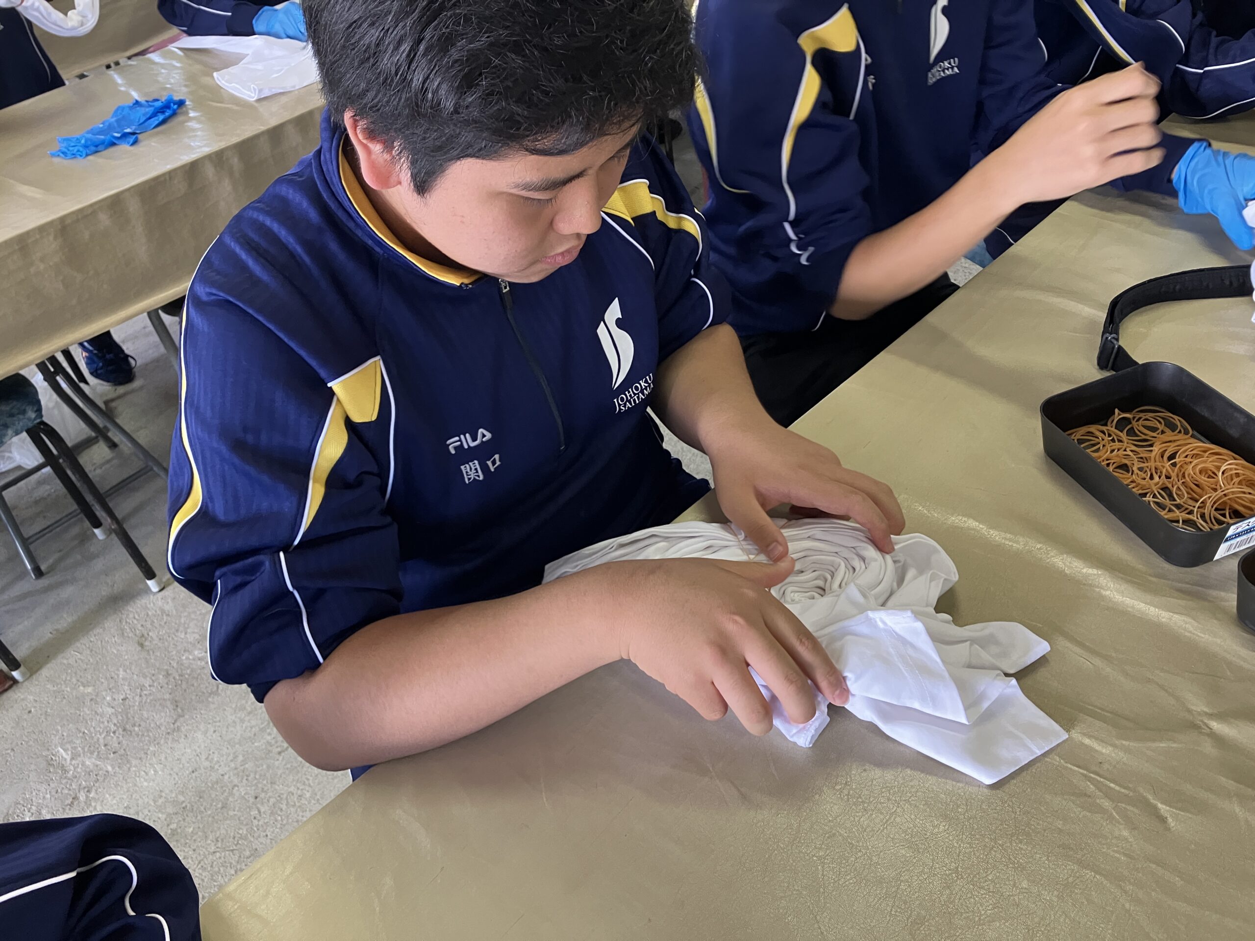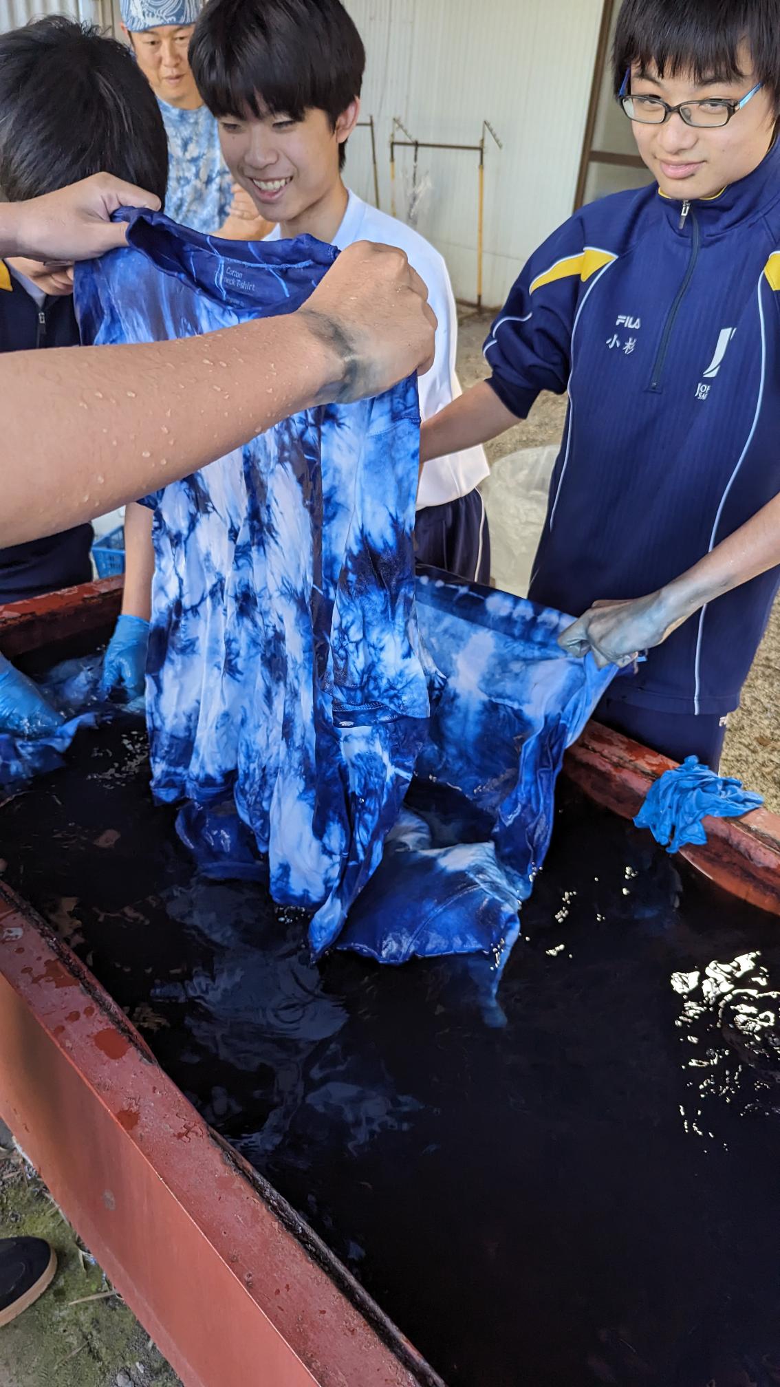 徐々に鮮やかな「ジャパンブルー」に染まっていくTシャツに生徒たちは感動していました。