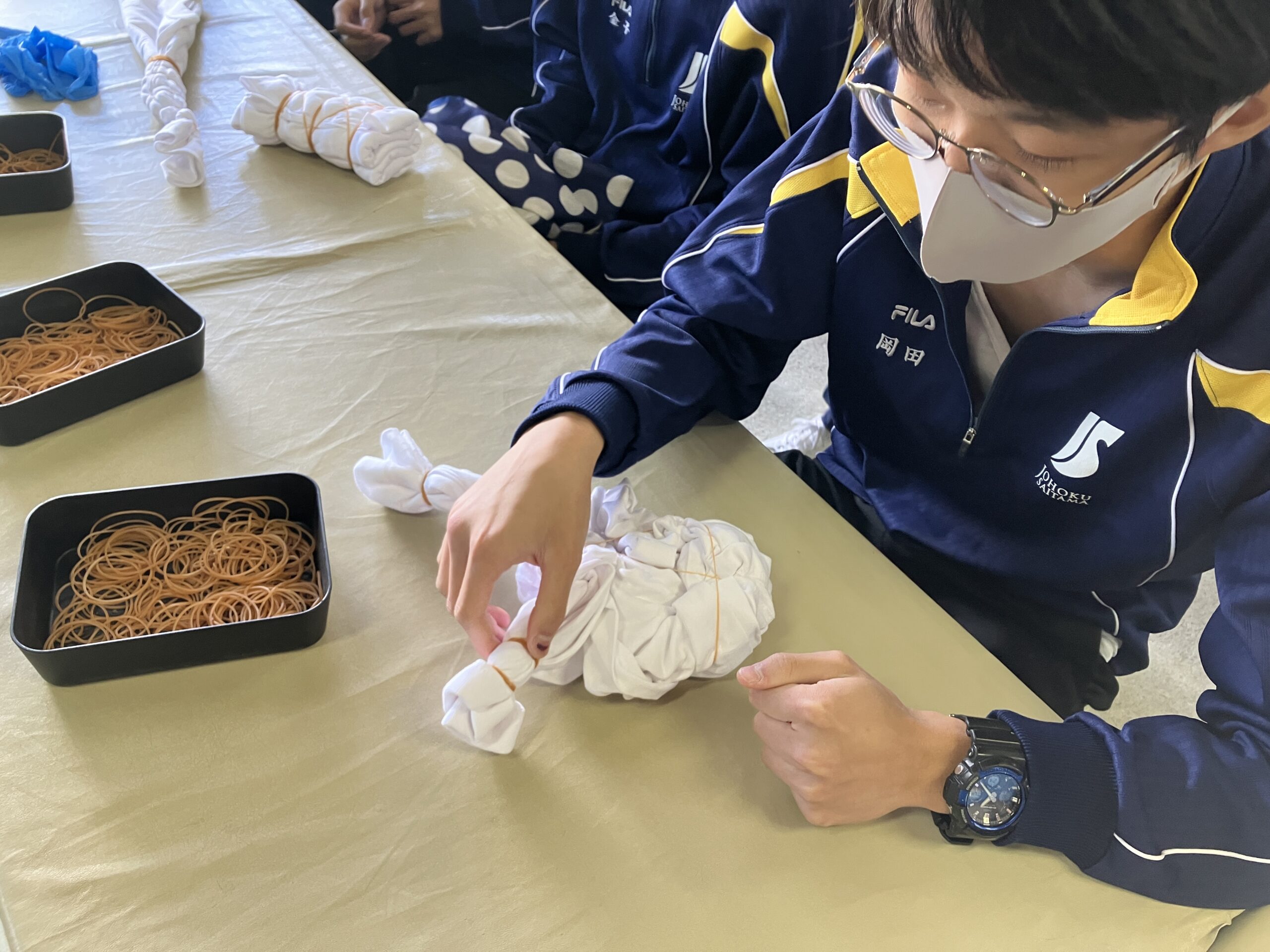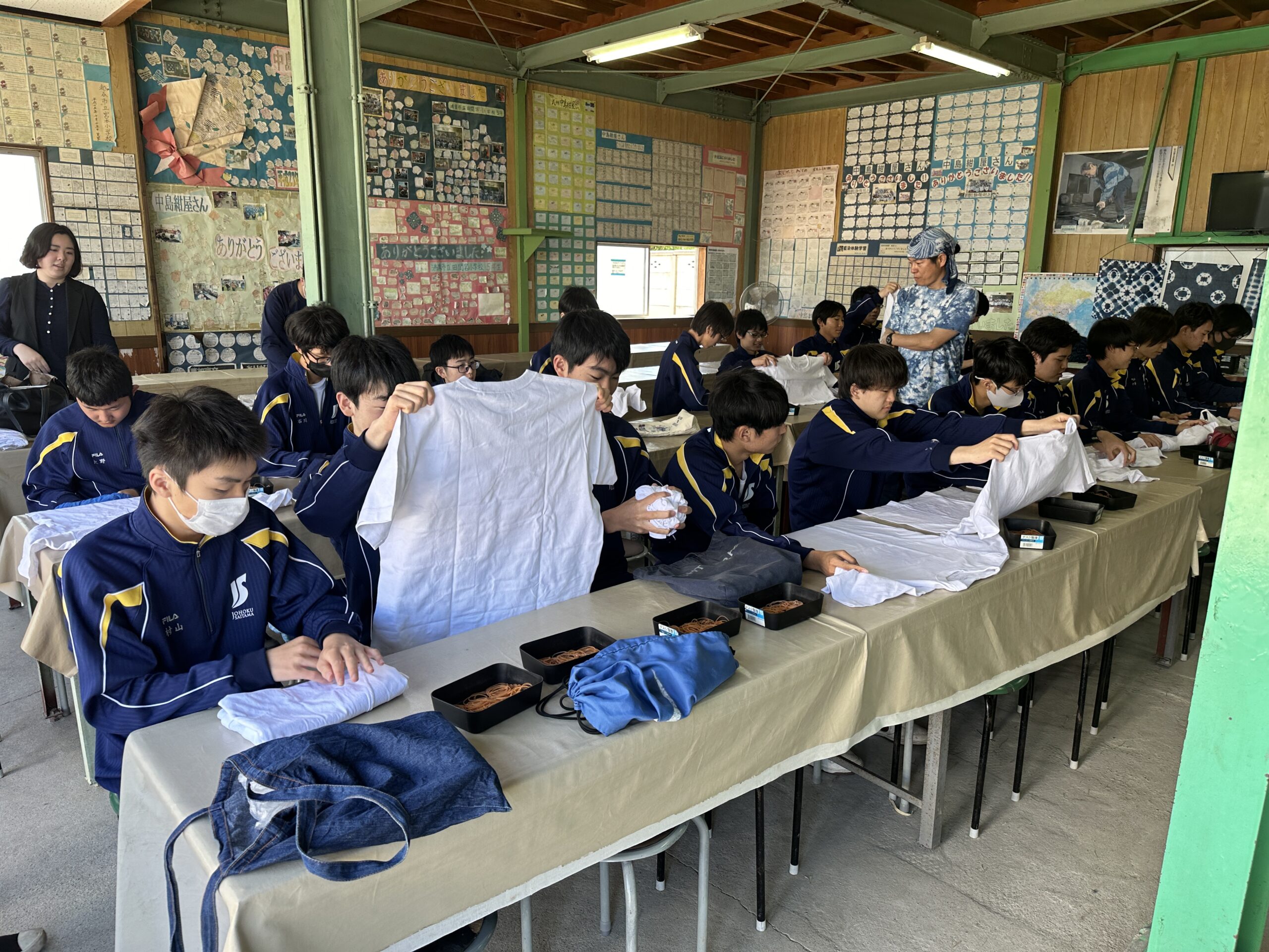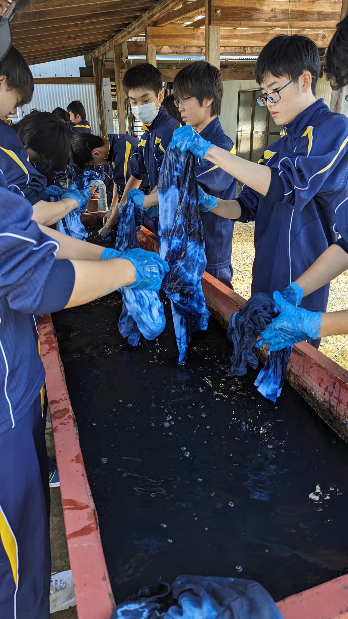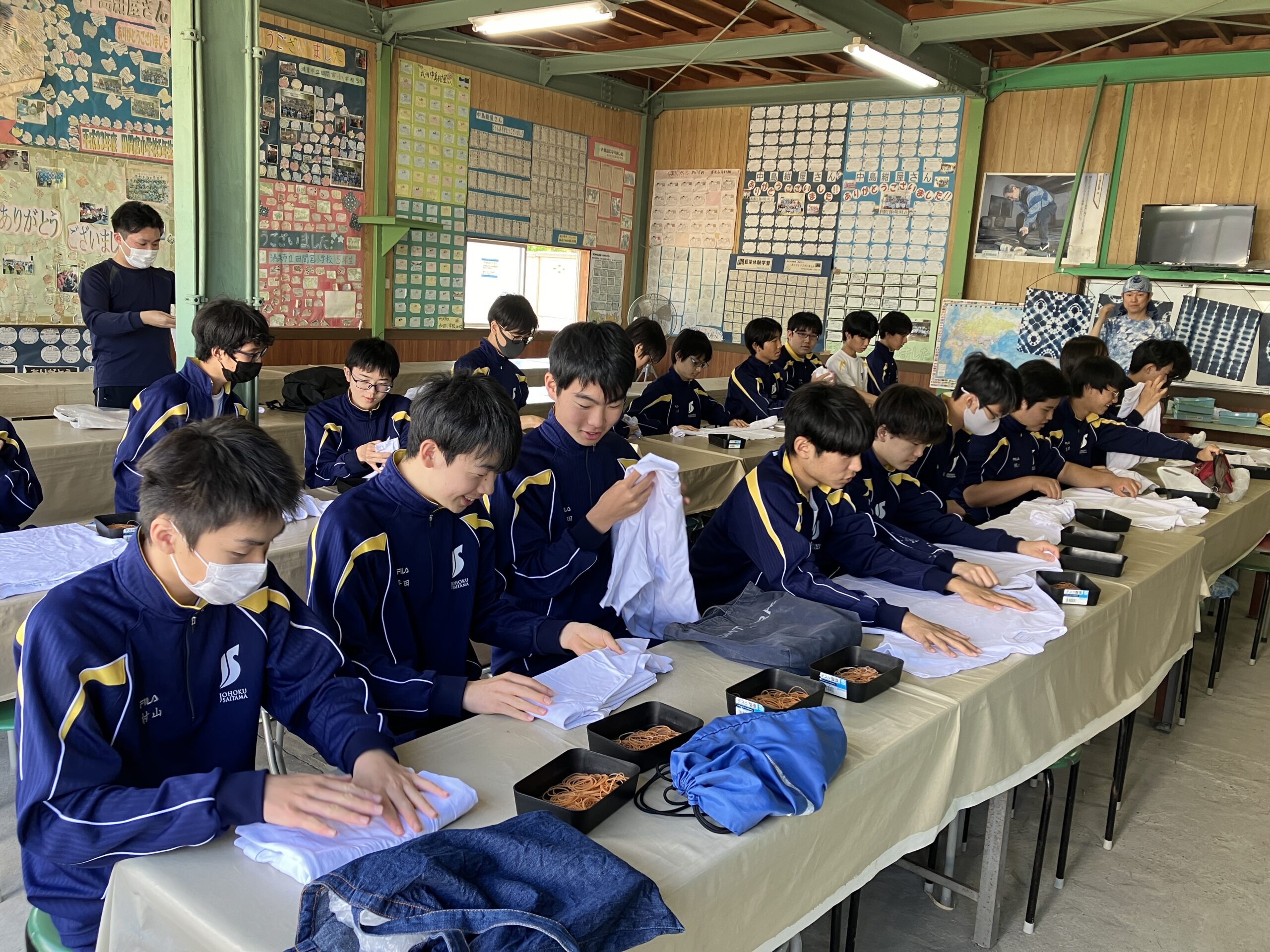 徐々に鮮やかな「ジャパンブルー」に染まっていくTシャツに生徒たちは感動していました。