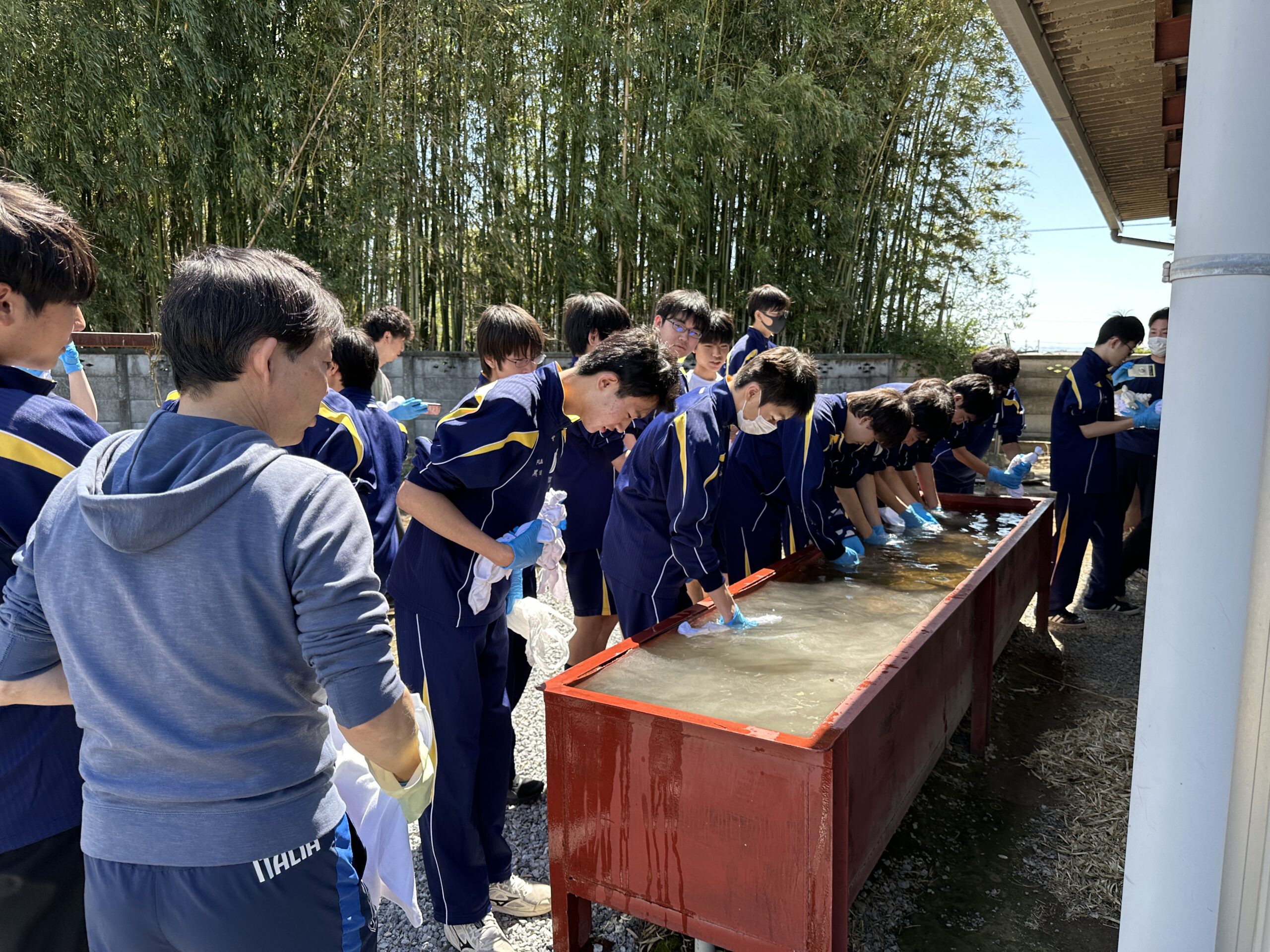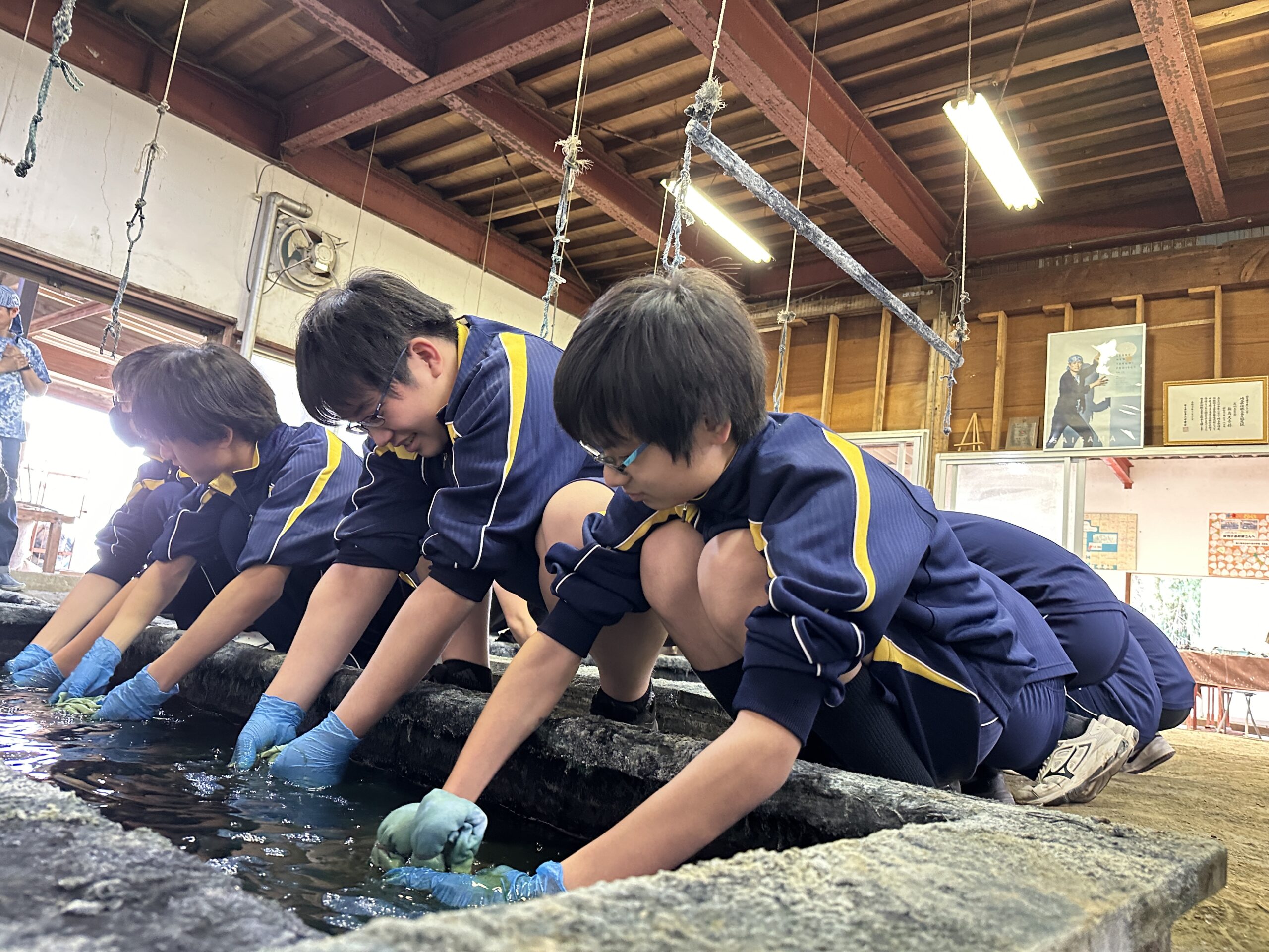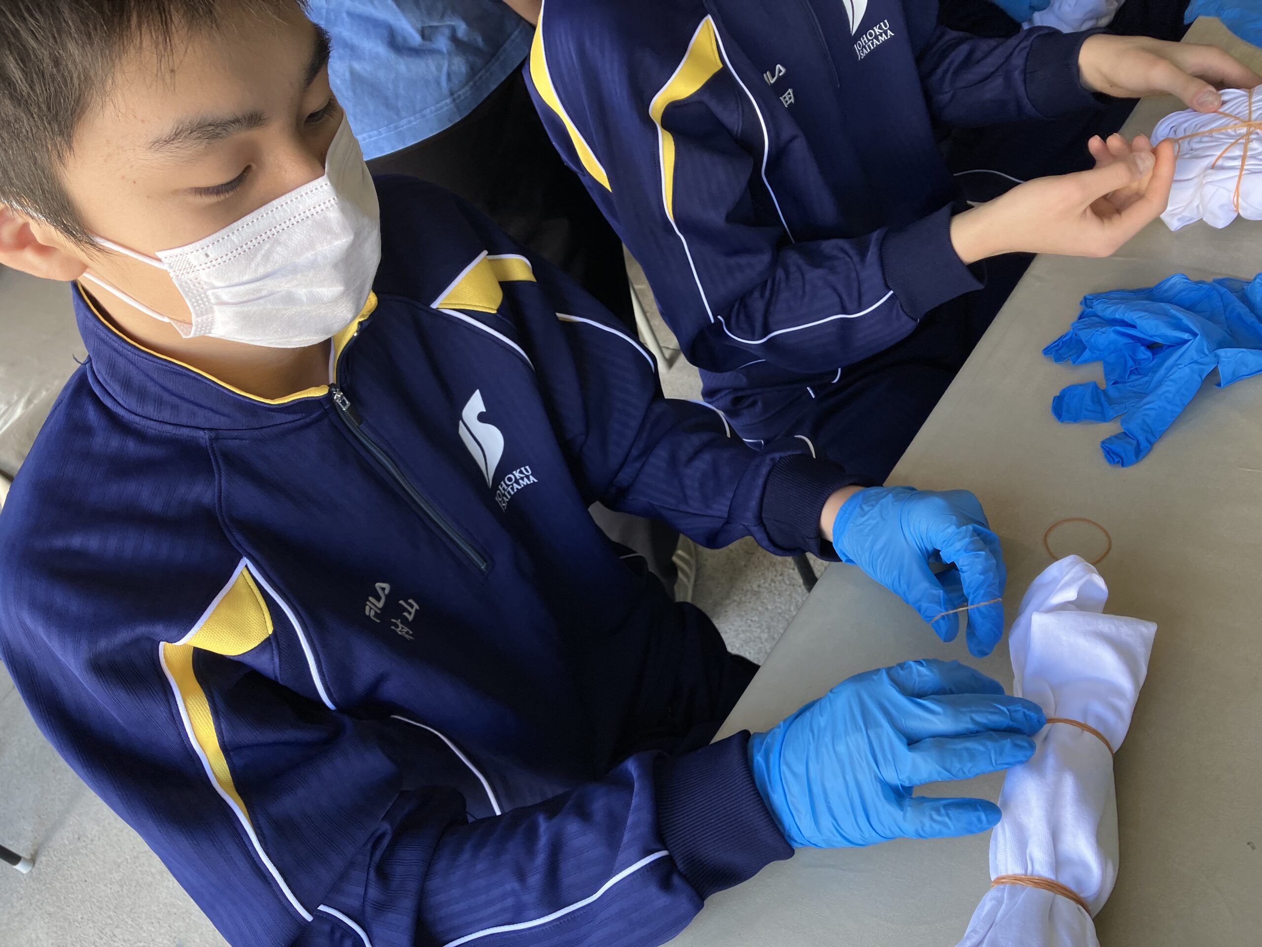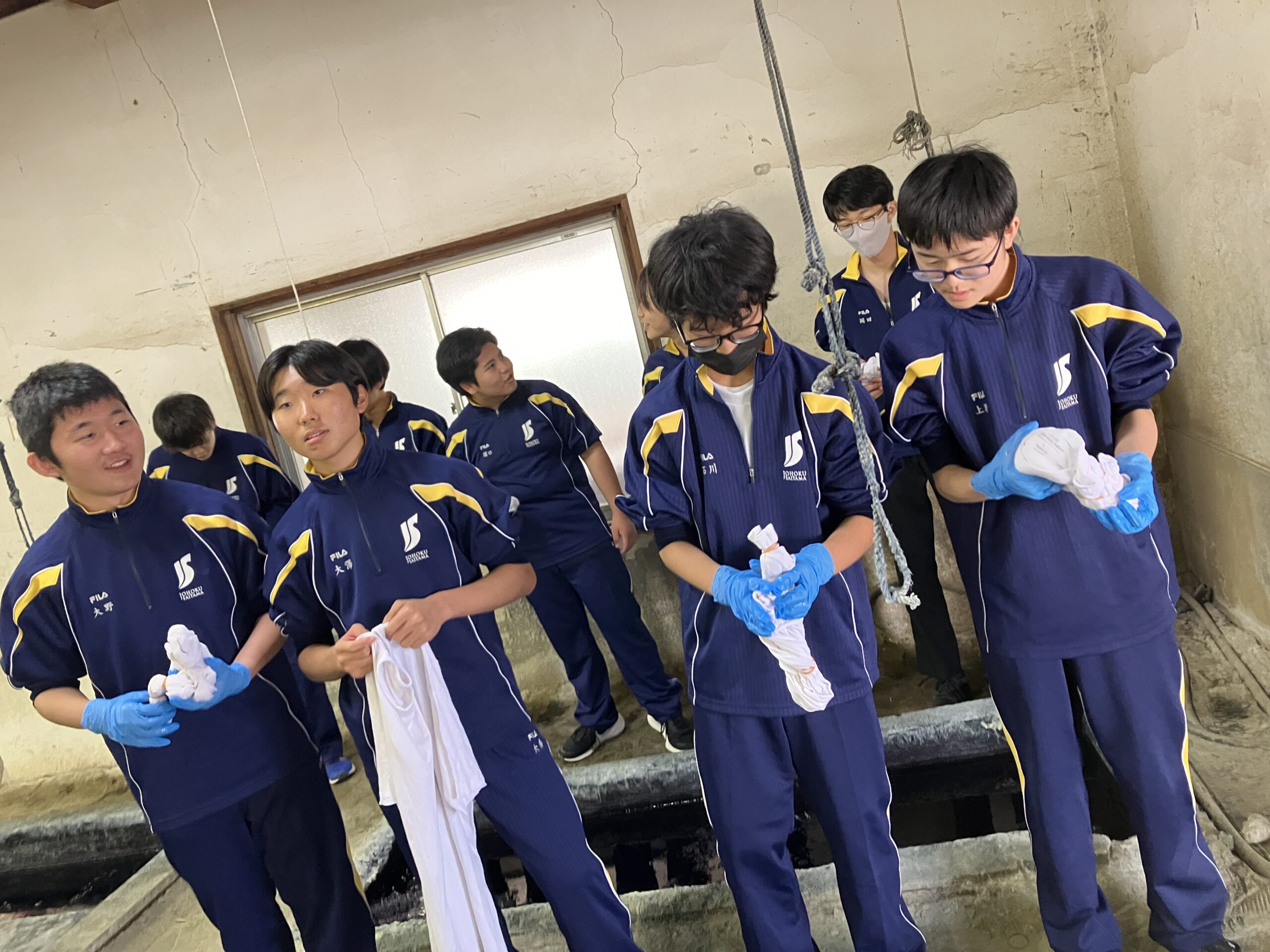 徐々に鮮やかな「ジャパンブルー」に染まっていくTシャツに生徒たちは感動していました。