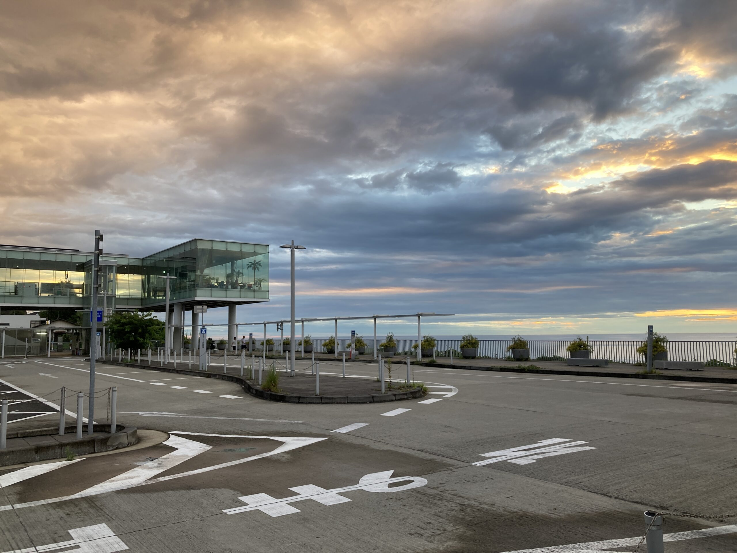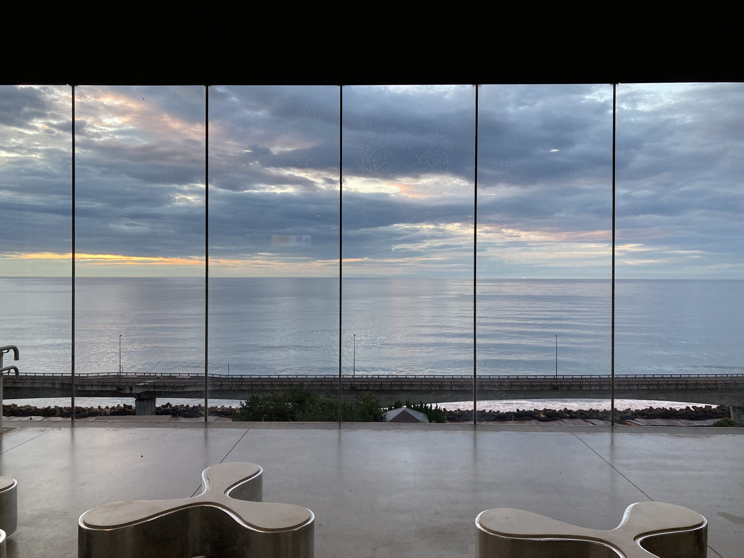 日立駅舎は著名な建築家妹島和世が設計したことでも知られています。天気が良ければ水平線から日の出を拝むことができるのですが、残念ながら滞在中は曇り空。それでも十分美しい景色を堪能することができました。