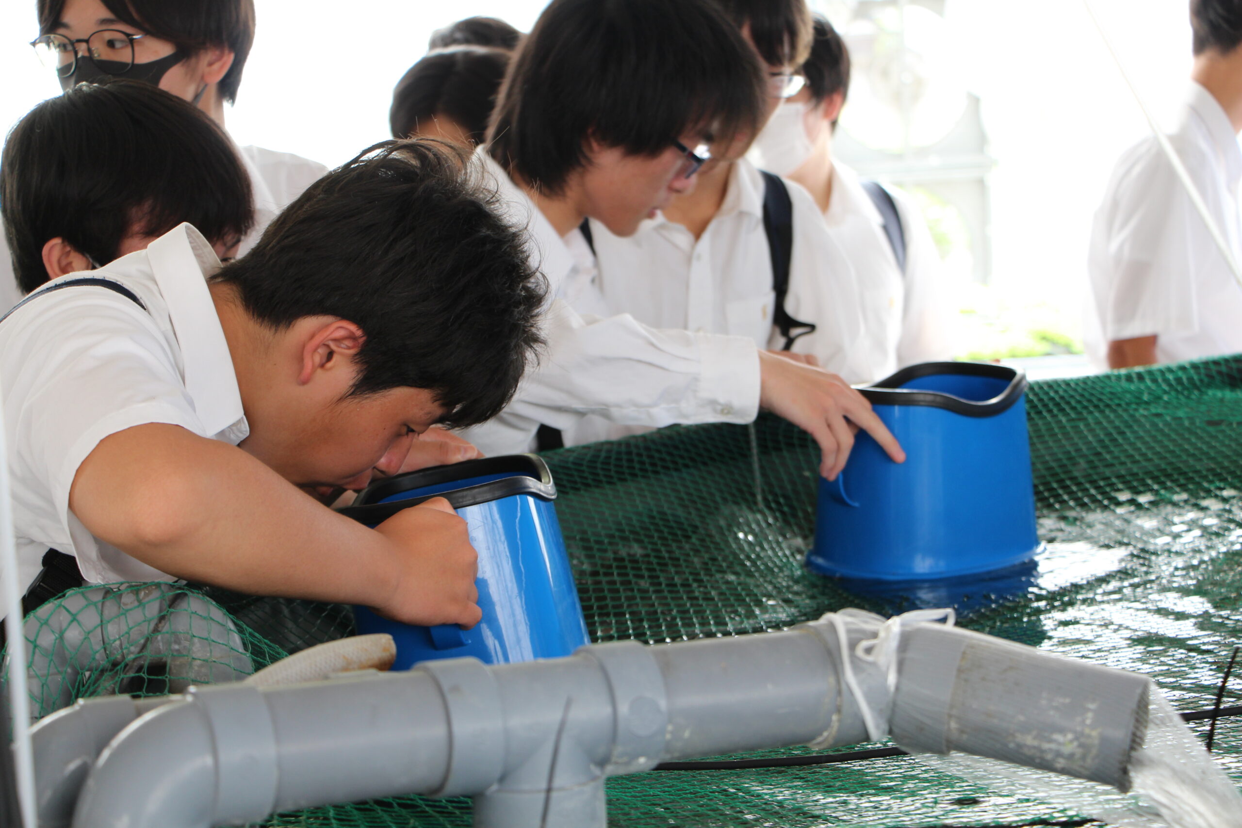 フロンティアコースでも2年生の一部ではアクアポニックスを自作中です。フリルレタスの栽培とドジョウの飼育を両立させ、循環型農法へ挑戦しています。