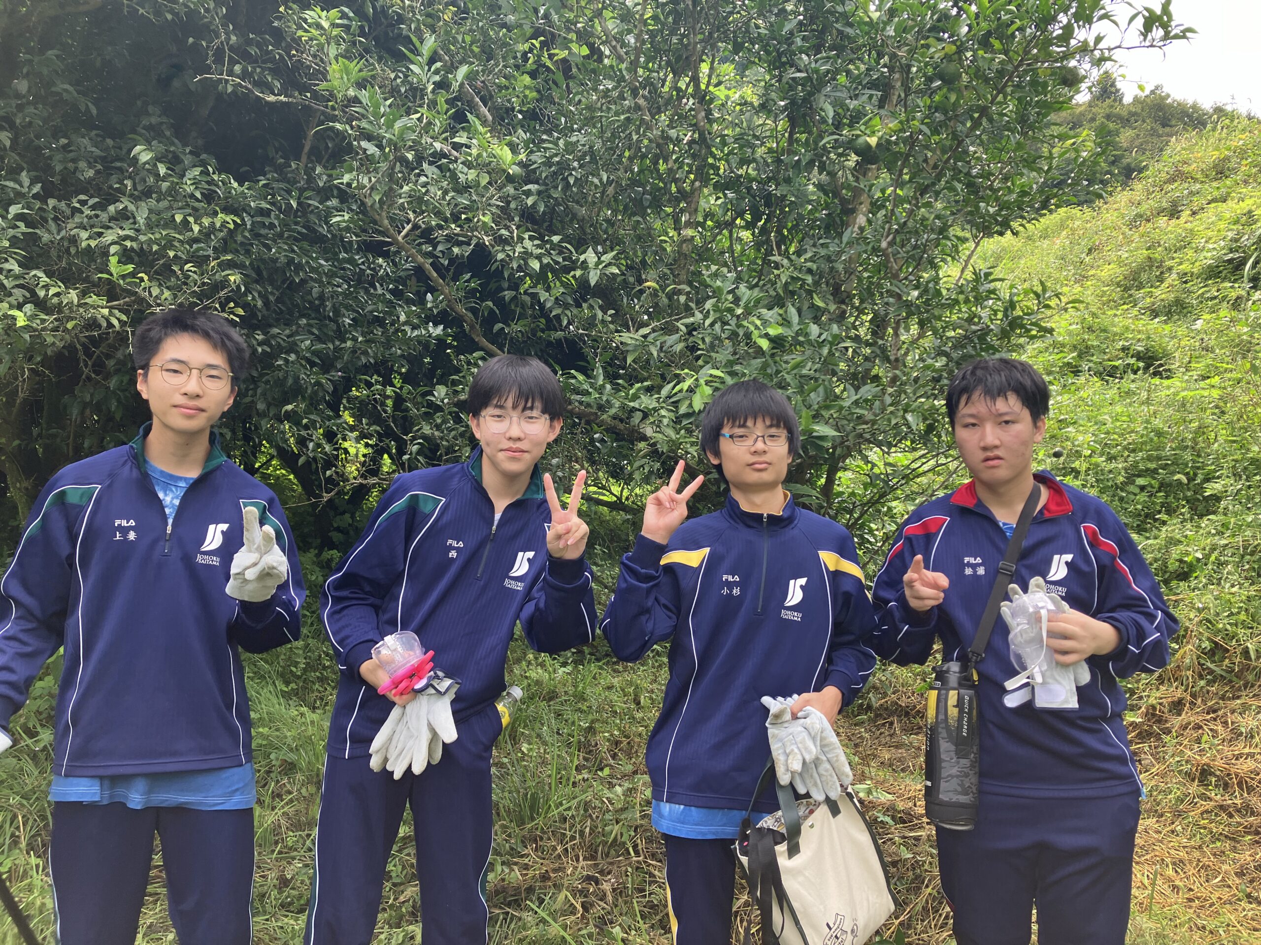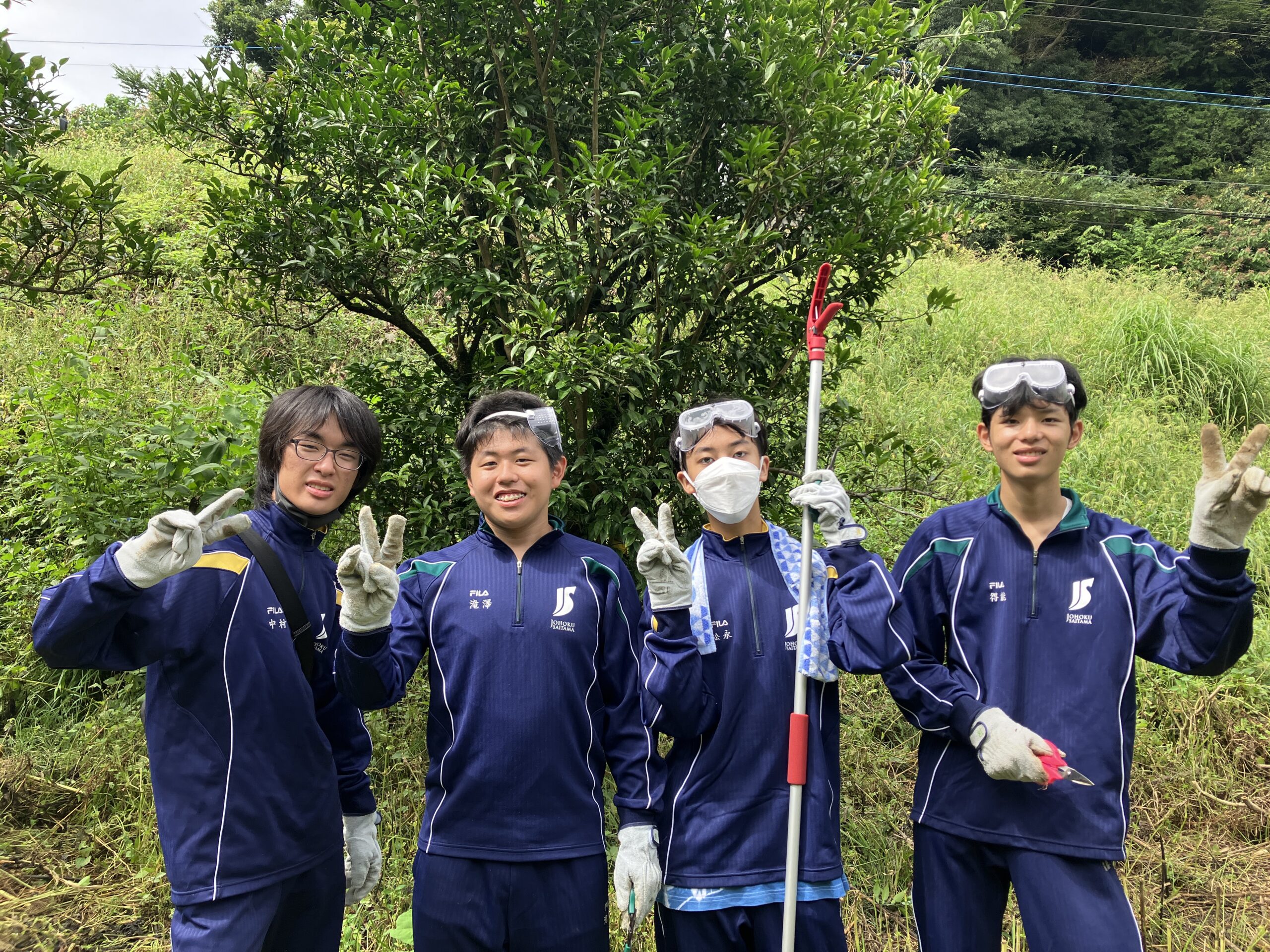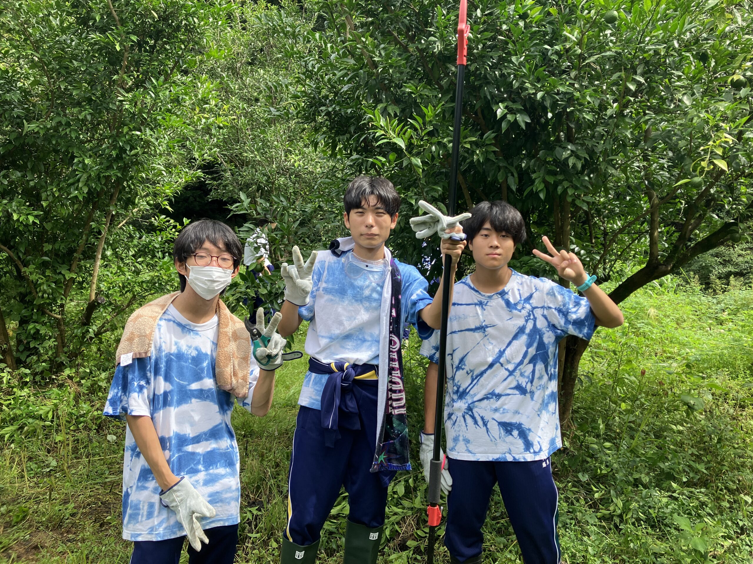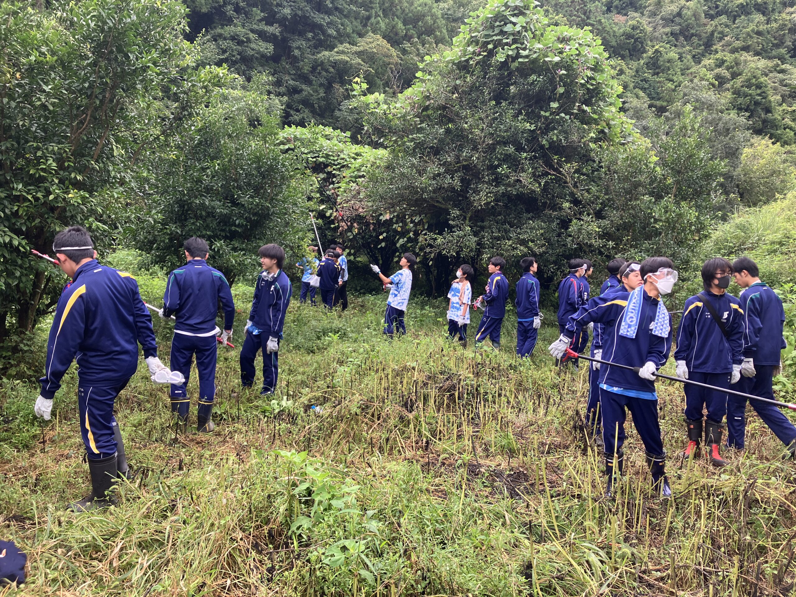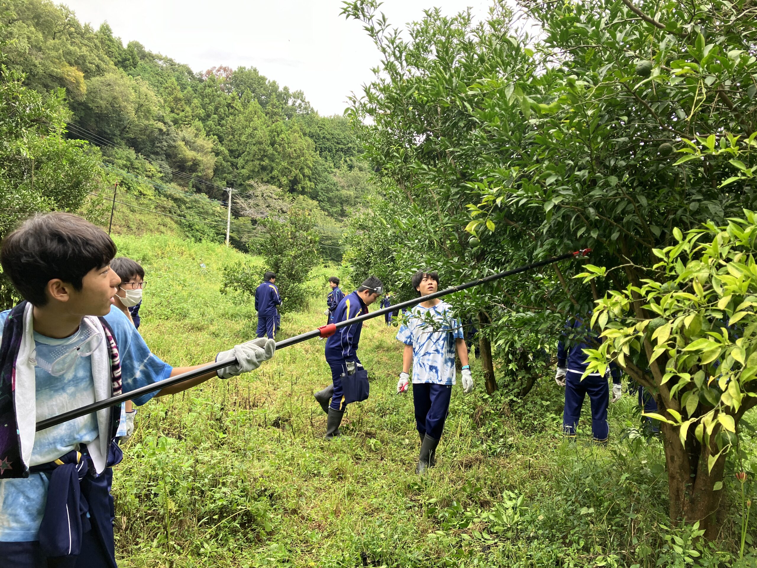 大きく育った草を刈り、いざ生徒たちとゆずの木整備へ!