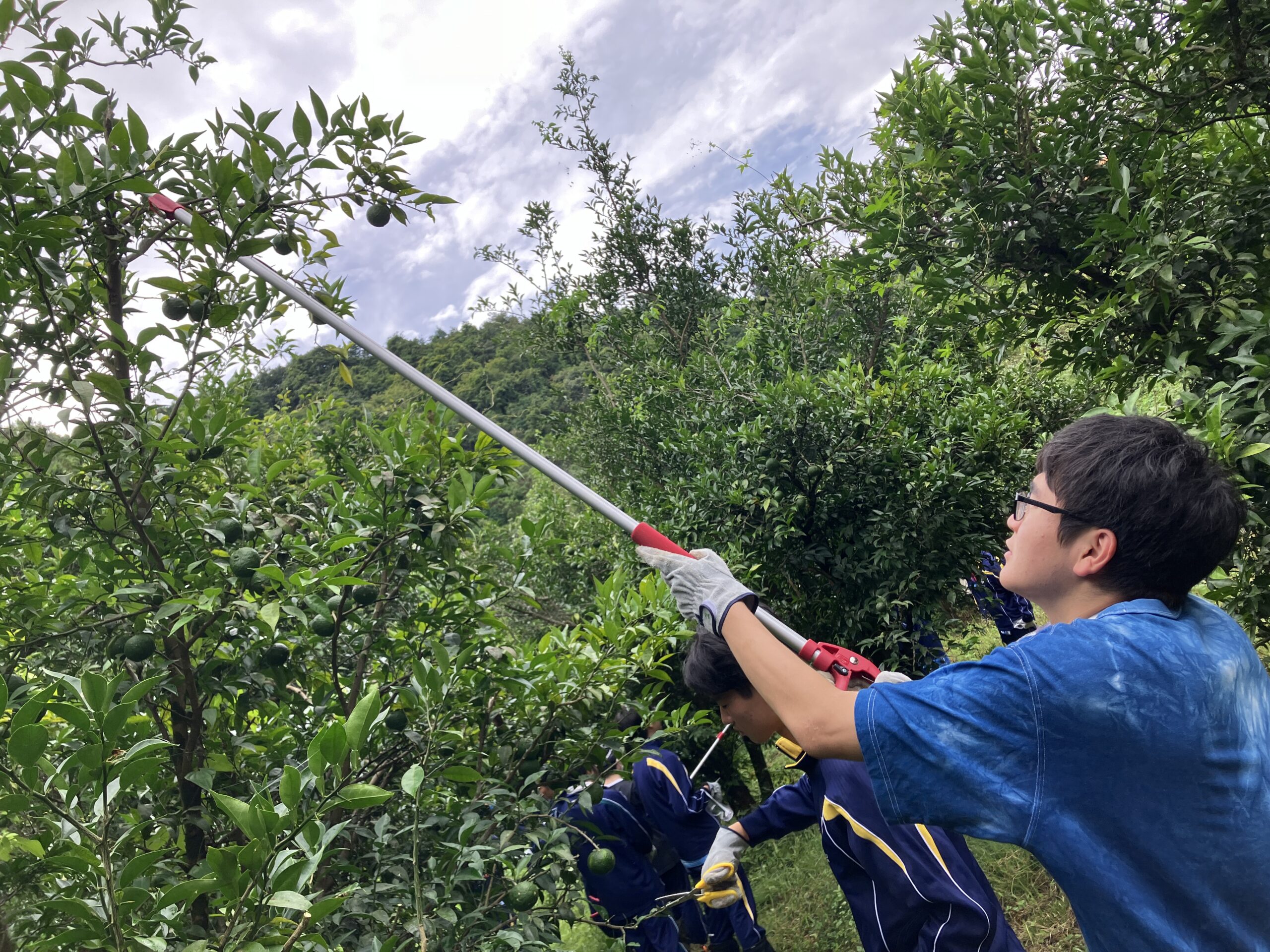 ゆずにしっかり日が当たるように枝の剪定をしていきます。