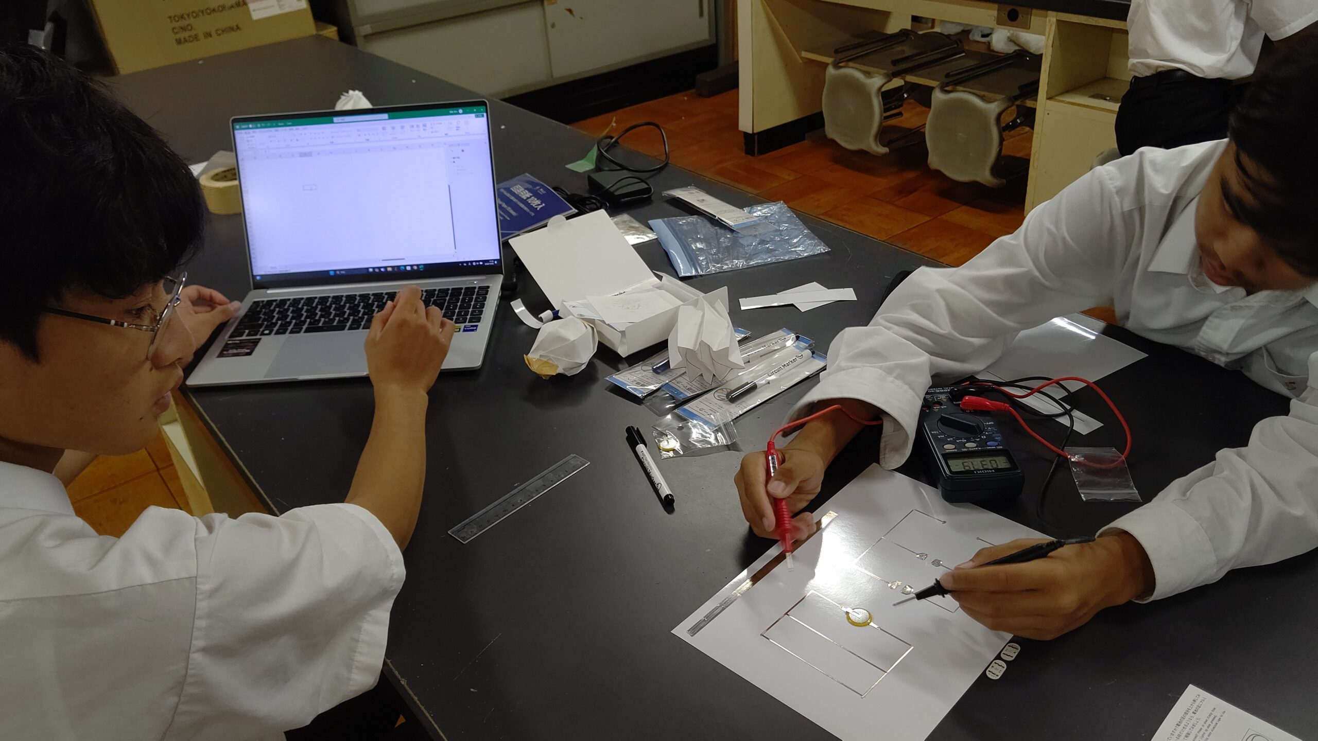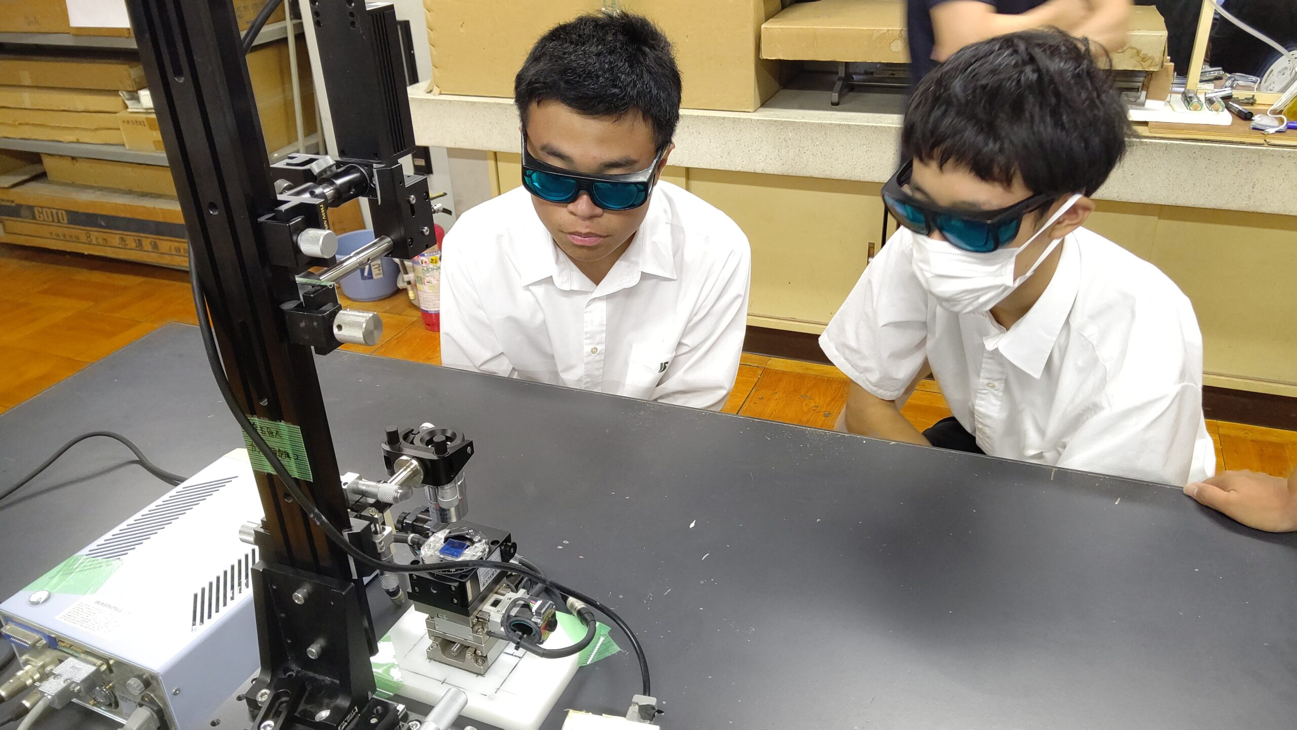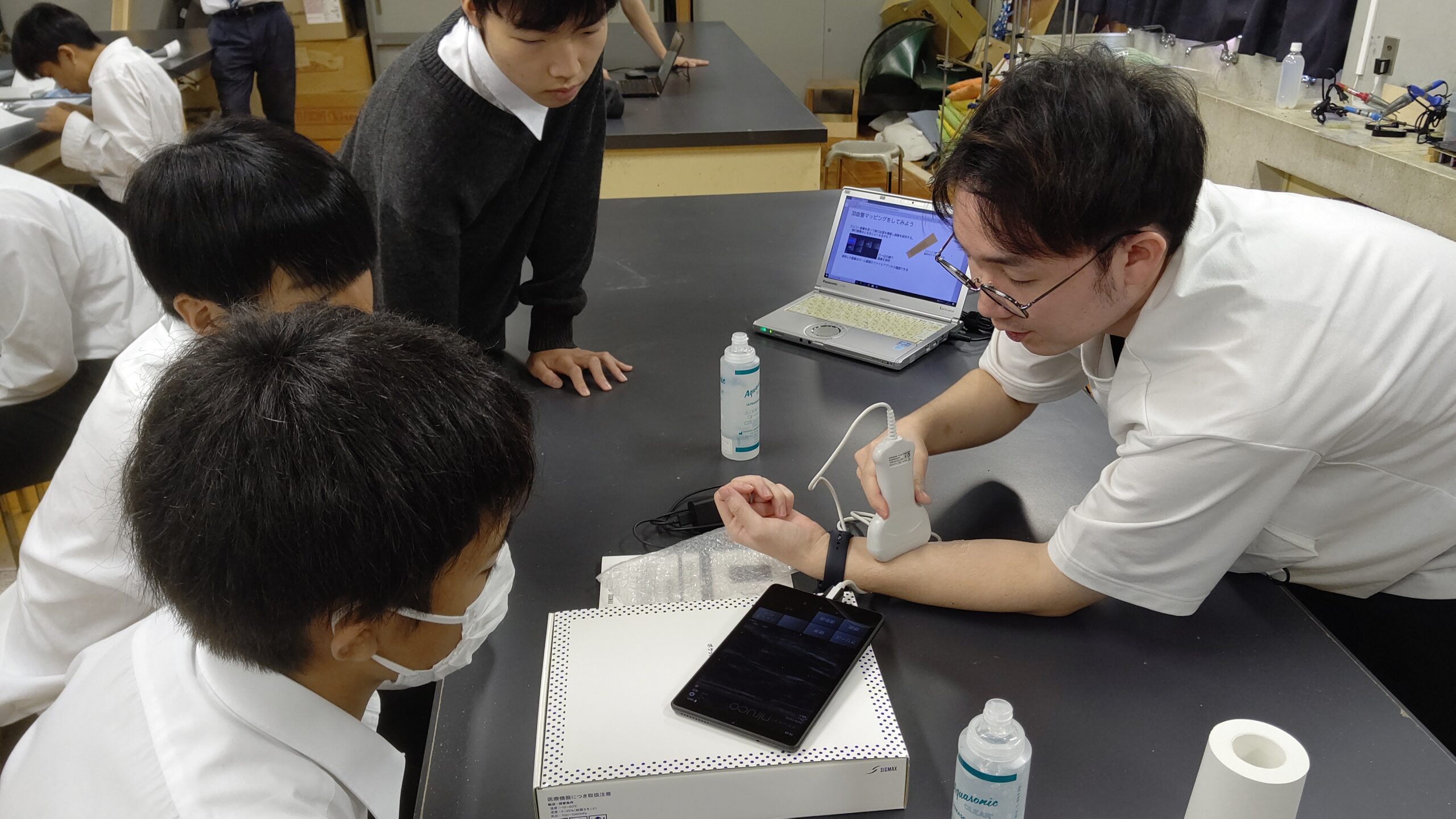 10月2日(水)の放課後を利用して、埼玉医科大学保健医療学部の若山先生と大学院生を本校に招いて、医学と工学を結んだ内容の実習体験をしていただきました。高校1・2年生の希望者14名が参加し、5つのプログラムから1つ選択し体験しました。黙々と作業をするグループや、自身の身体を使って調べていくグループなど様々で、うまくいかない様子も多々見られました。ただ、これも大学の研究の一面だと若山先生は生徒に伝えていました。生徒は授業終了から2時間以上の実習で疲れつつも、皆本当に楽しんでいる姿が印象的でした。他のグループの実習内容が気になる生徒も多く、次はあの実習をやりたいなと盛り上がっていました。大変貴重な時間を過ごすことができました。