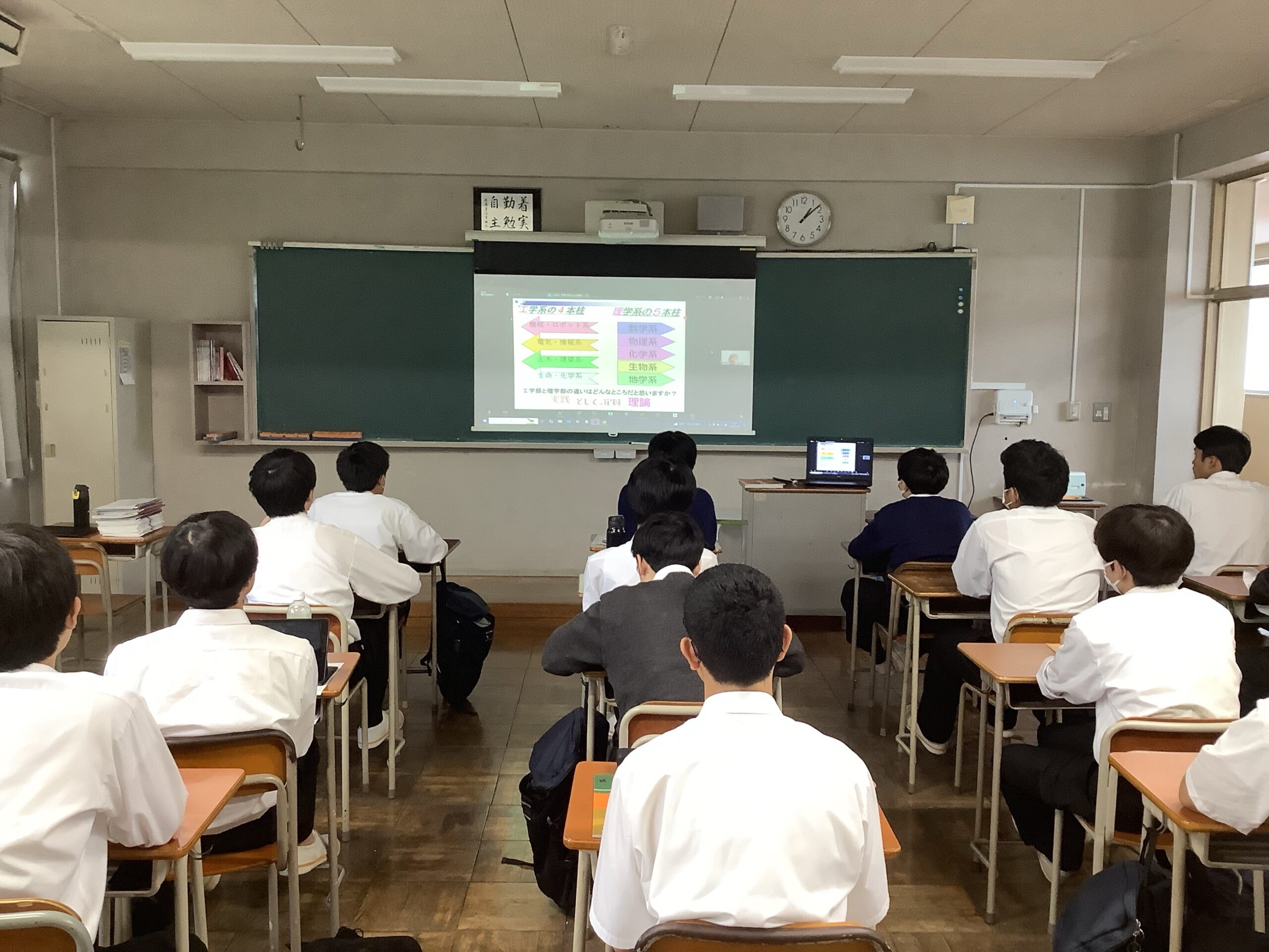 10月18日(金)、第3回定期考査終了後の放課後を利用して、13大学を本校に招き、13の学術系統の講義を高校1年生の生徒が聴講しました。生徒は下記の学術系統から2分野を選び、1コマ40分の講義を聞き、11月の文理選択に生かします。テスト終了後ということで疲れが溜まっている中、興味ある分野であるからこそ最後まで集中して聞いており、質問もしていました。