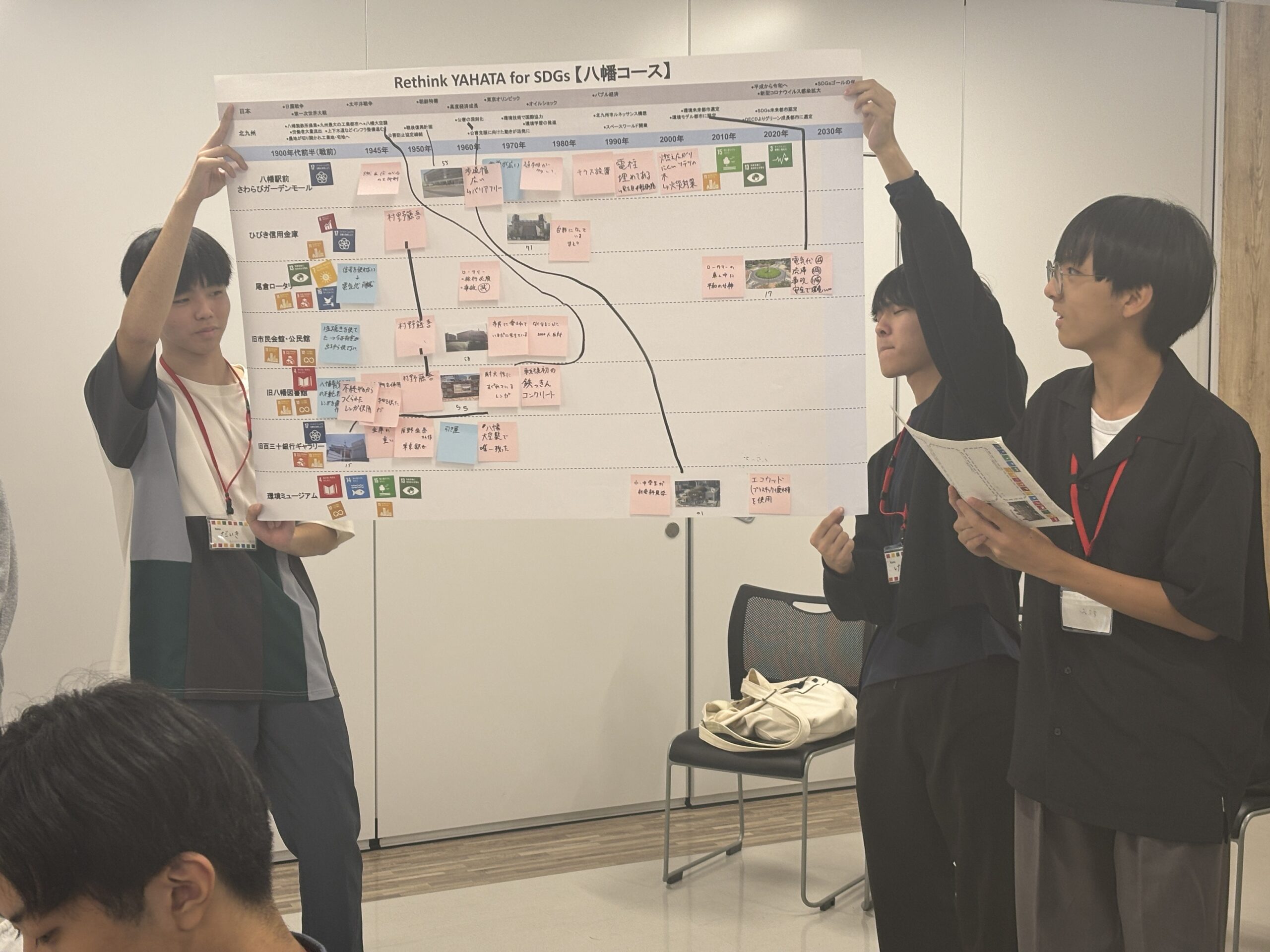 その後は昨日もお世話になった北九州市立大学地域創生学群小林研究室の学生さんによる「Rethink YAHATA」プログラムに参加しました。最初にジアウトレット九州にて、環境問題への取り組みを伺い、その後向かった八幡製鐵所関連施設では旧本事務所を見ながら大学生と意見を交わすフィールドワークを行いました。そのあとも町歩きを行い、最後にワークショップをすることで本日の学びを確認しました。発表段階では各グループが地域観察に基づき、しっかりと意見を述べられていました。