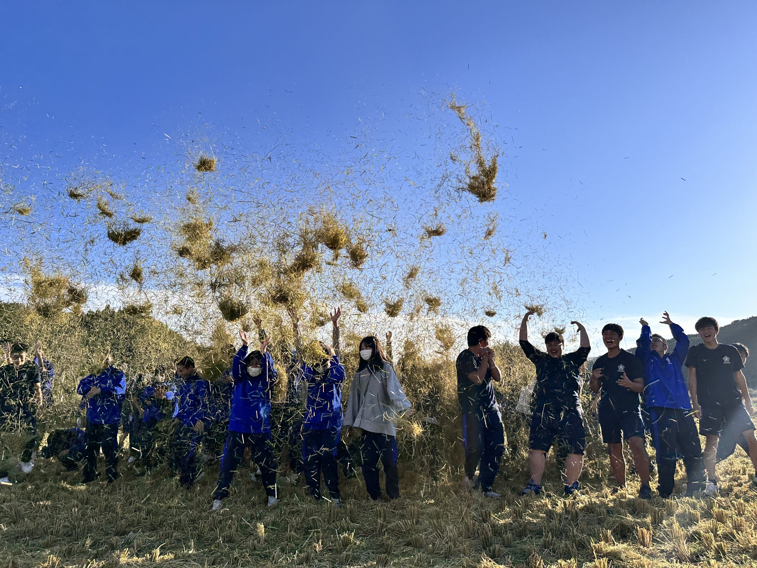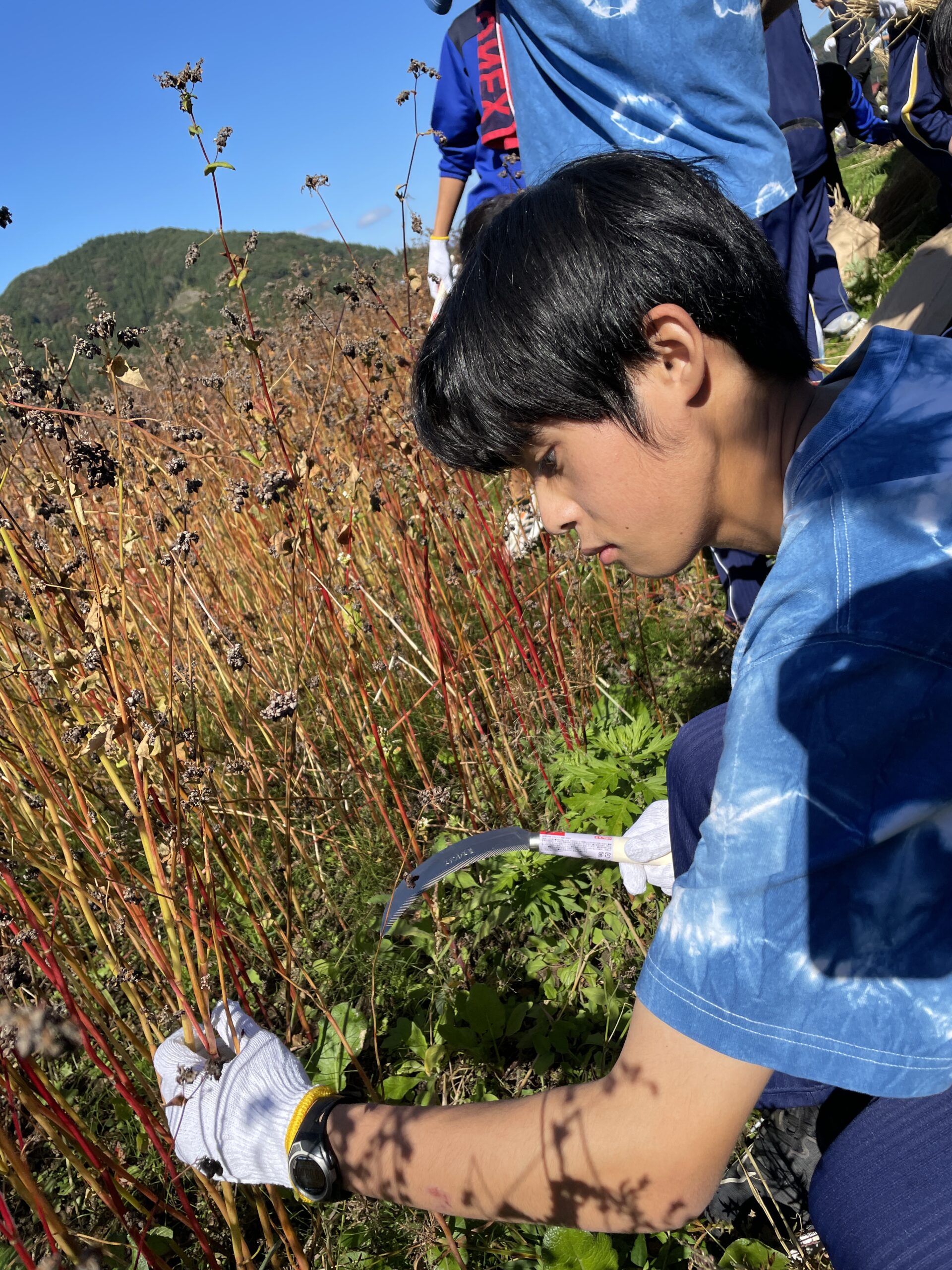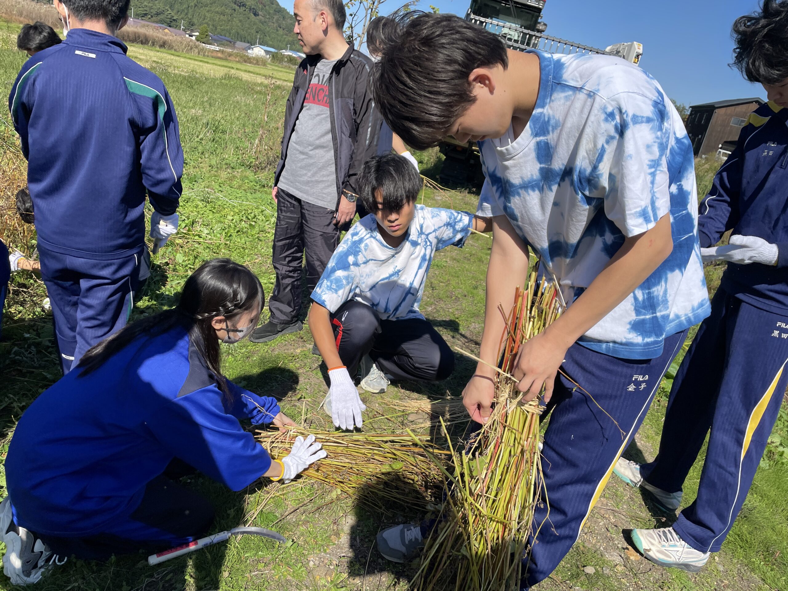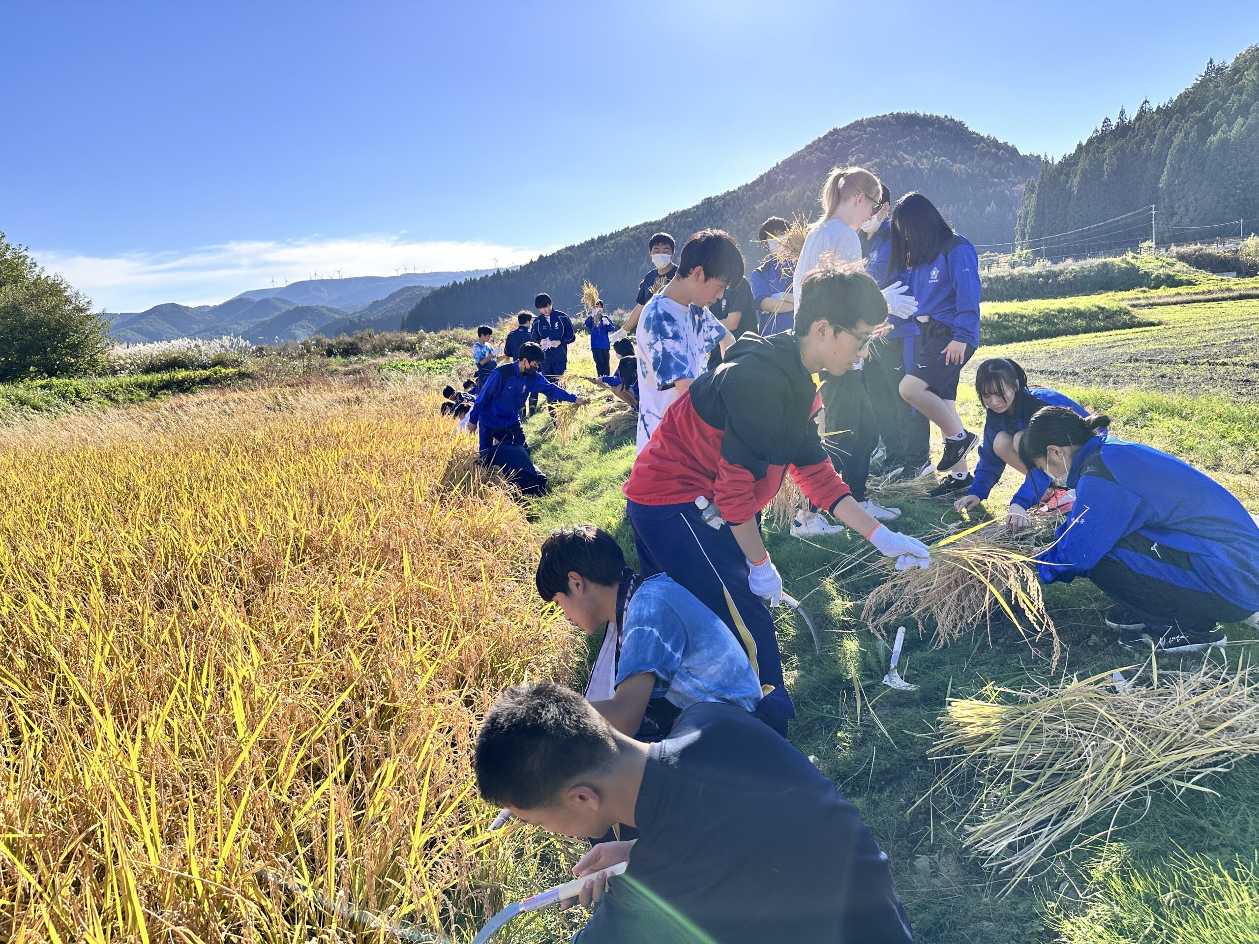 今回の湖南探究は「距離感を掴む」という目標で、2日目は湖南高校との交流がありました。午前中は湖南町の散策や蕎麦の収穫、午後は稲の刈り取りを行いました。特に蕎麦の収穫と稲の刈り取りでは、地域の農家の方や湖南高校の生徒たちと鎌の使い方や刈る場所について頻繁にコミュニケーションを取りました。そのため、最終的に上手く収穫や刈り取りができたことは、目標である「距離感を掴む」を達成できたということだと思います。