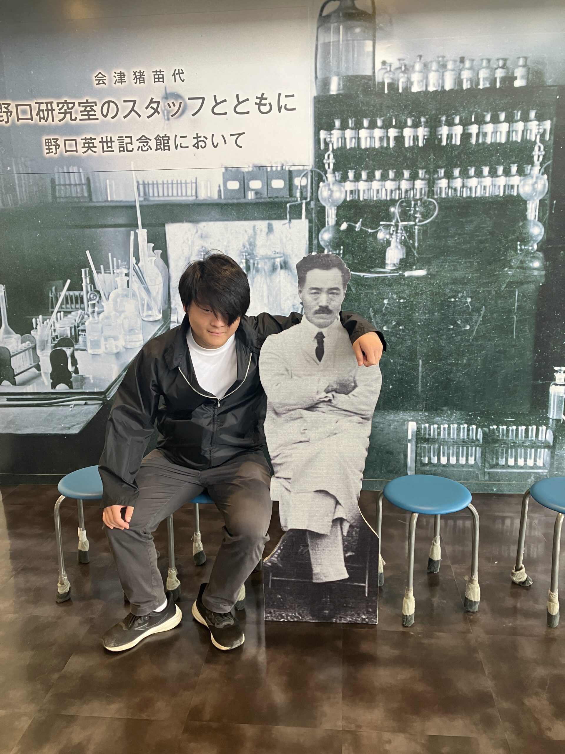 楽しい時間はあっという間で気づけば湖南探究最終日の10/26、私たちは初めに猪苗代湖のほとりにある野口英世記念館に訪れました。ここは福島県出身である、野口英世さんの生涯の功績や軌跡をまとめた資料館で、多彩な展示物や資料で分かりやすく野口英世さんの事を知ることができます。私は人物一人に対して二階建ての綺麗な資料館が立ち、そしてそこに大量の観光客が訪れていることにとても驚き、それ程野口英世さんが世間に認知され、多大な功績を残した日本が誇るべき人物なのだと再認識することができました。(私もいつか、私の資料館が立つように頑張ります。)