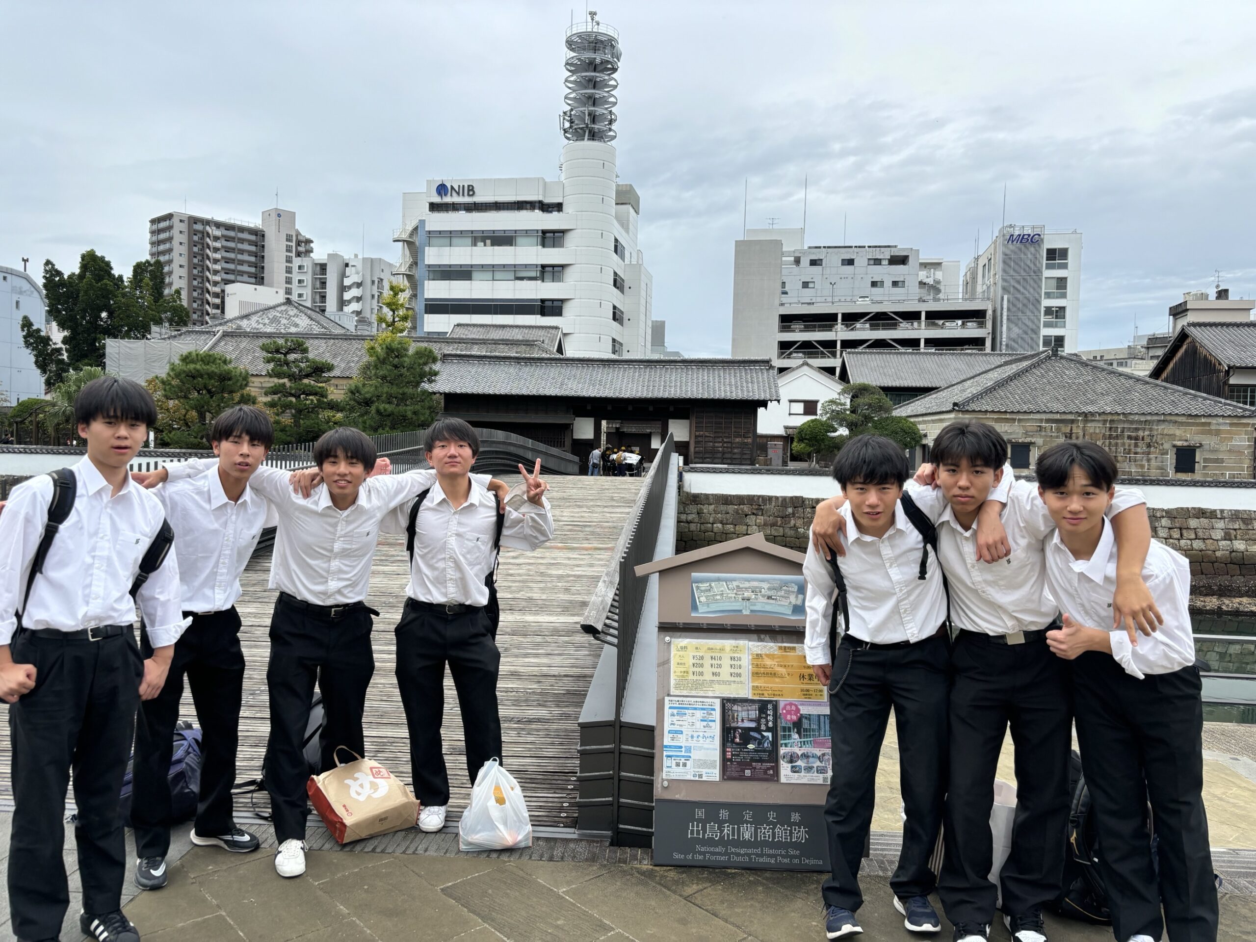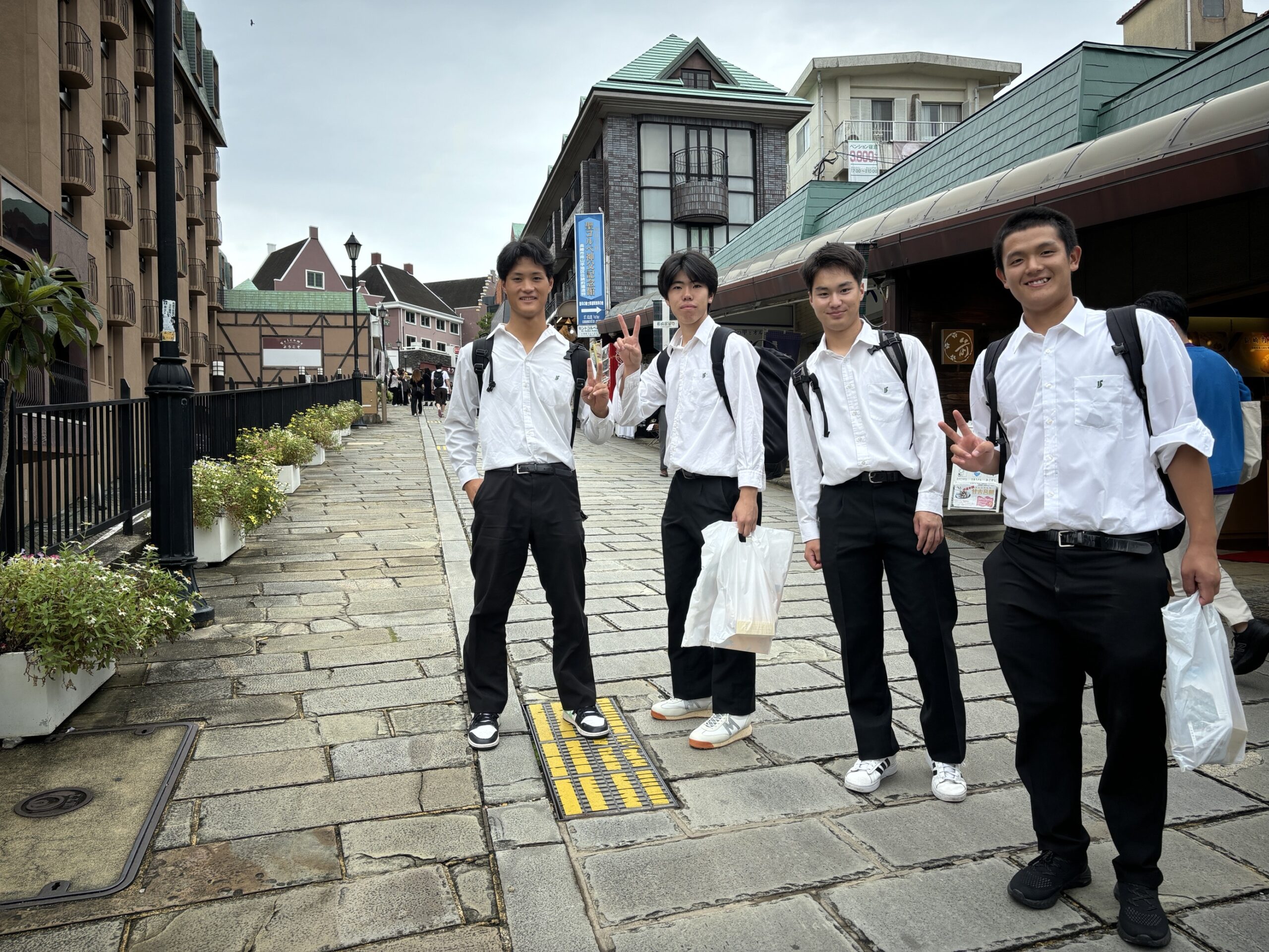 最終日となる本日は長崎での半日研修を行いました。朝食時には少し疲れが見えていましたが、各々の班が事前に計画したルート通り回れたようです。大浦天主堂、グラバー園、出島とたくさんの場所を周り、お土産袋をかかえ、探求活動を終えました。