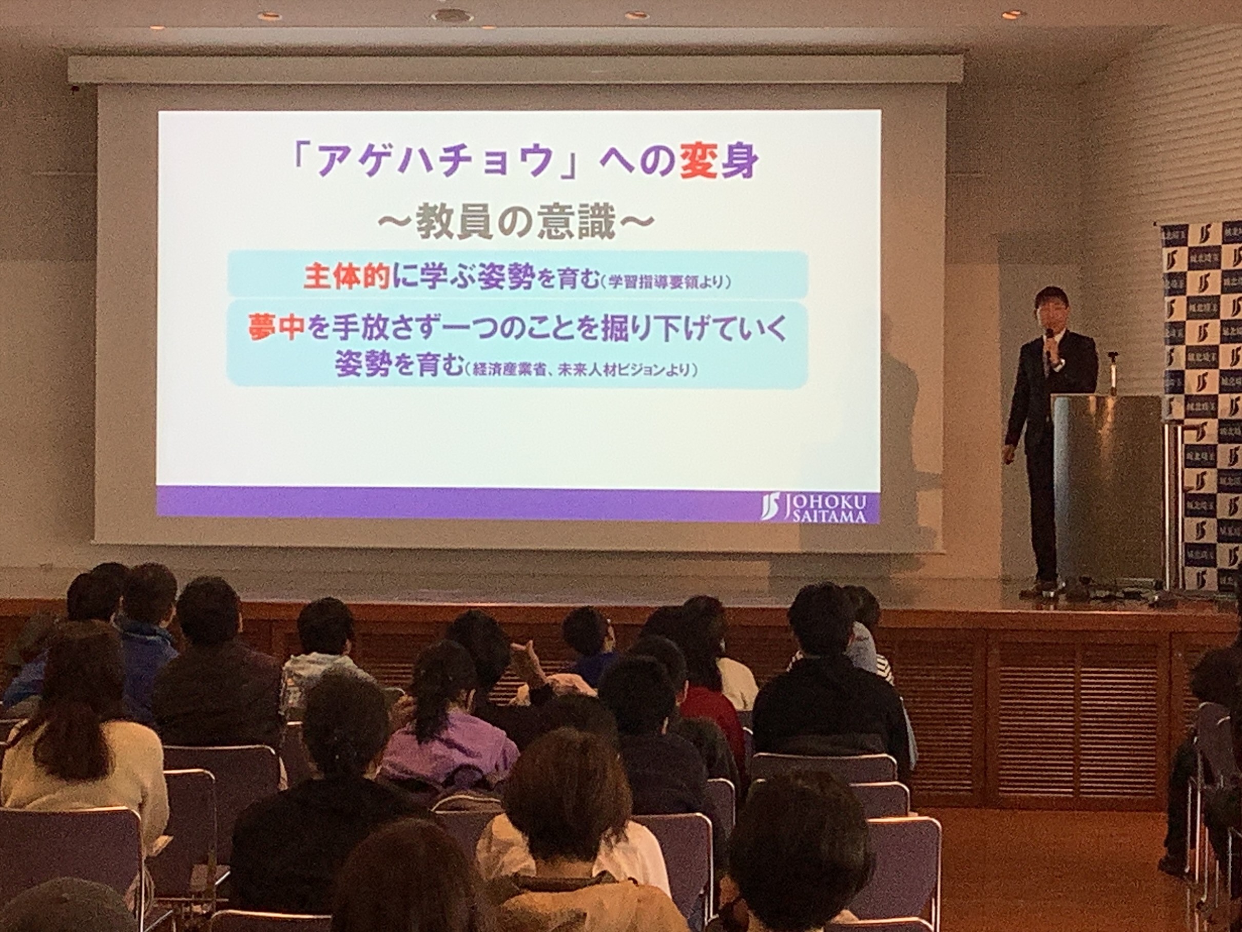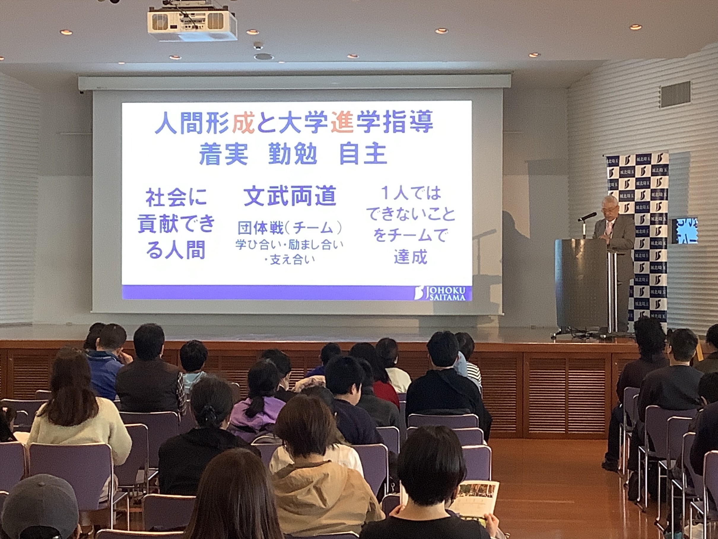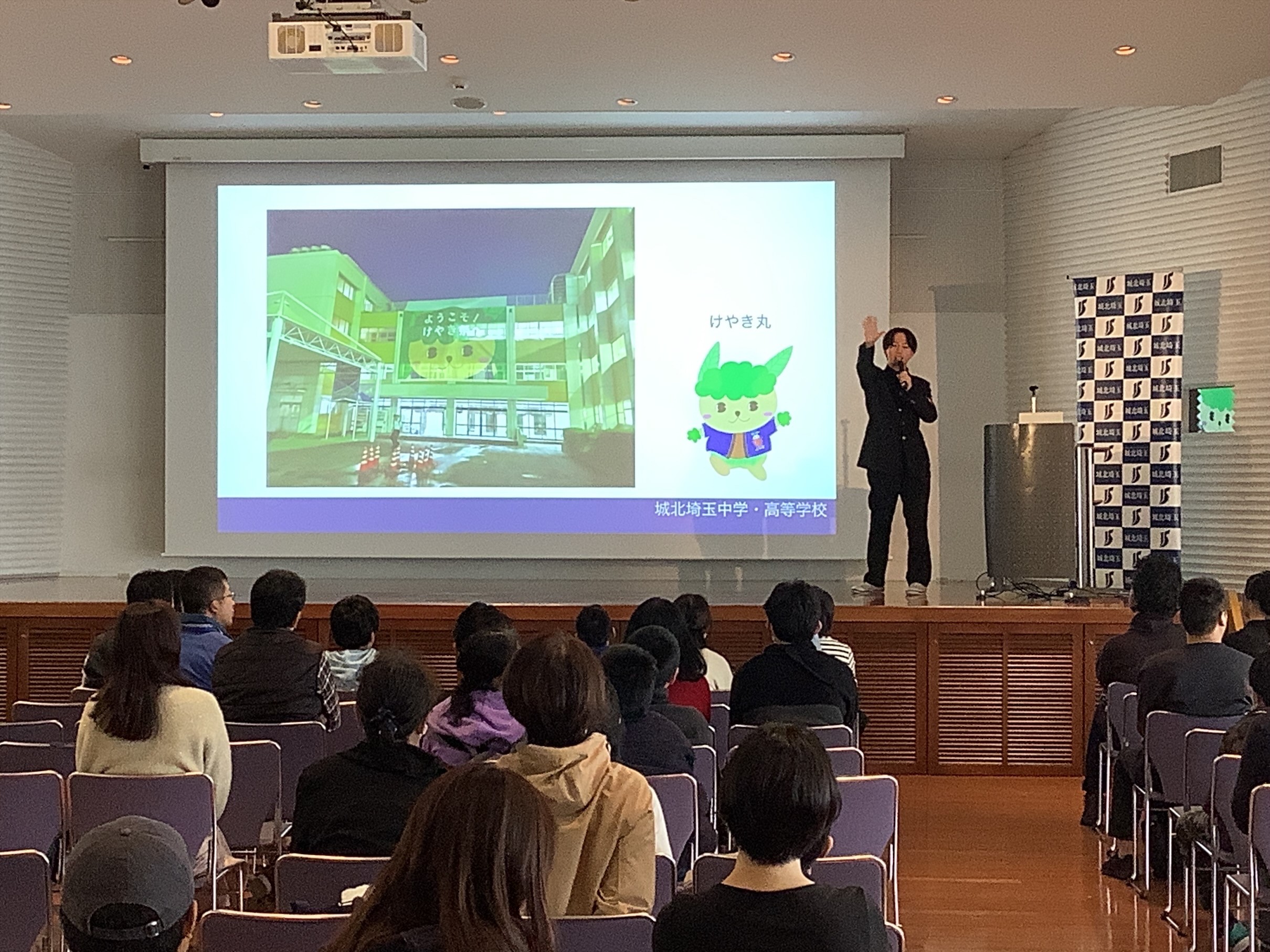 今回は、生徒も登壇し城北埼玉の魅力を紹介し、前回の説明会を体調不良で休んだ