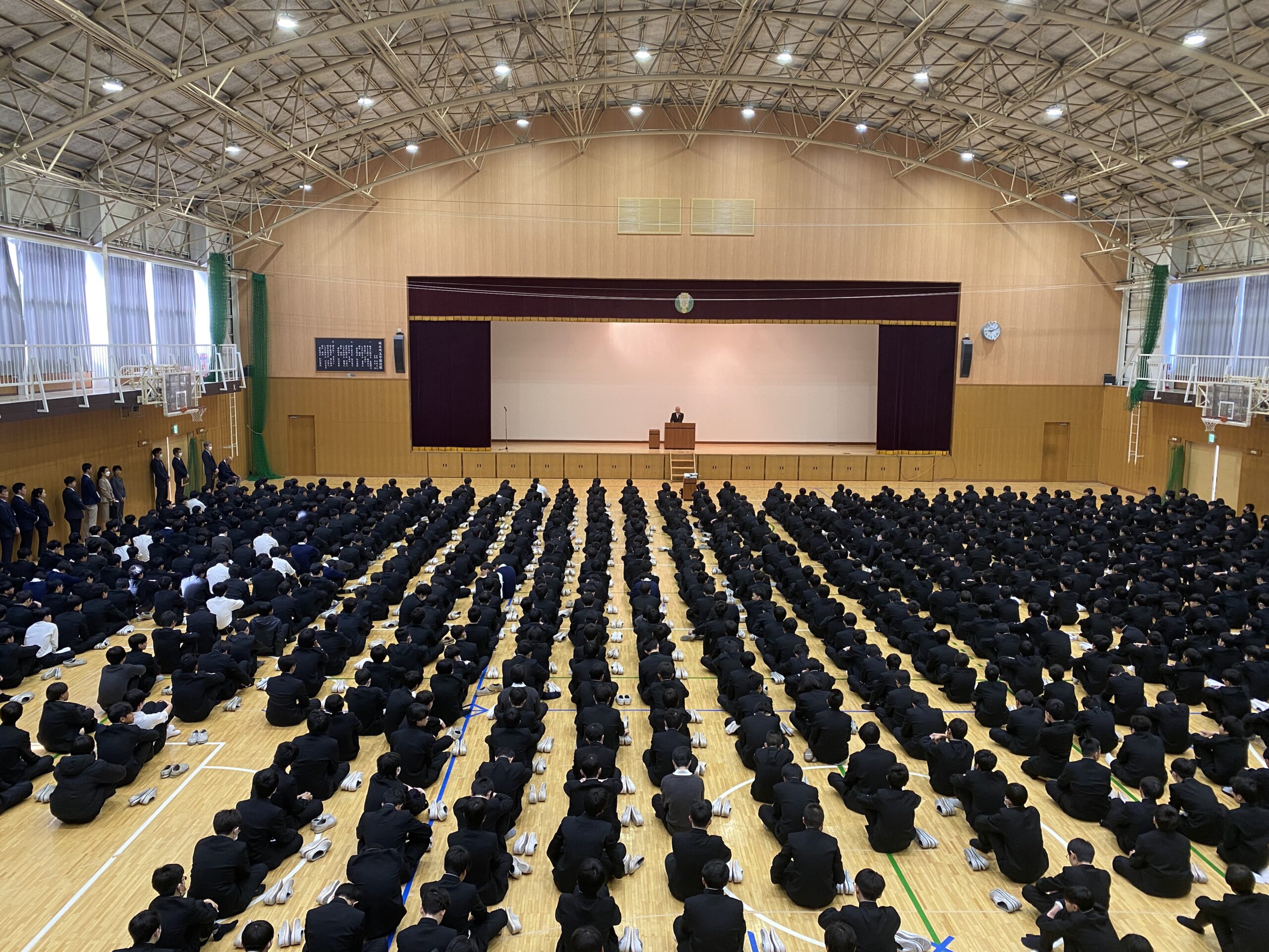 校歌斉唱、校長講話、特待生・部活動表彰と続きました。