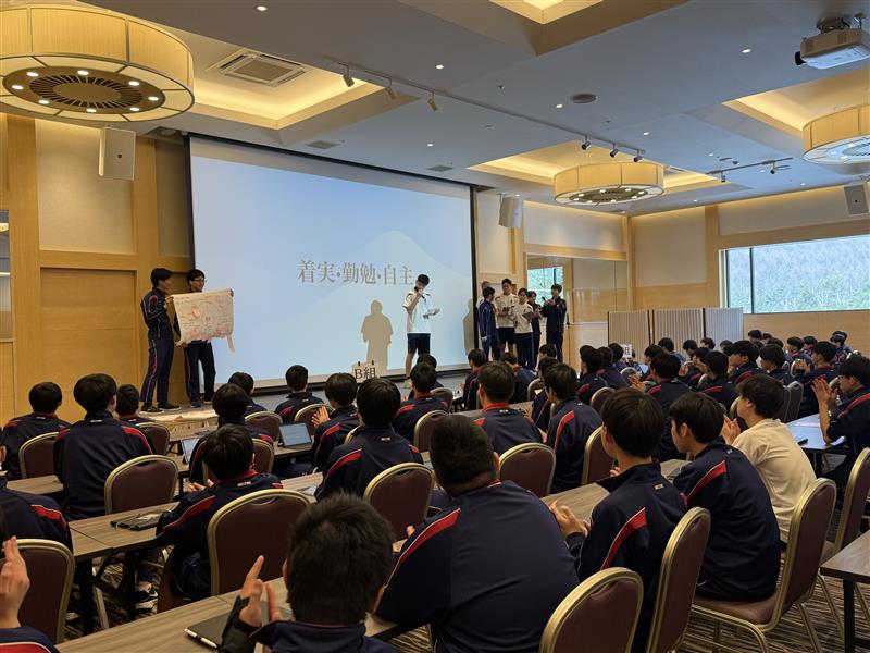4/11(金)2日目の午前中は前日に各クラスでのアイディアドーナッツを経てまとめた【着実・勤勉・自主】についてのプレゼンテーションからスタートしました。各クラス、それぞれのカラーが出て非常にいいものを披露してくれました。
