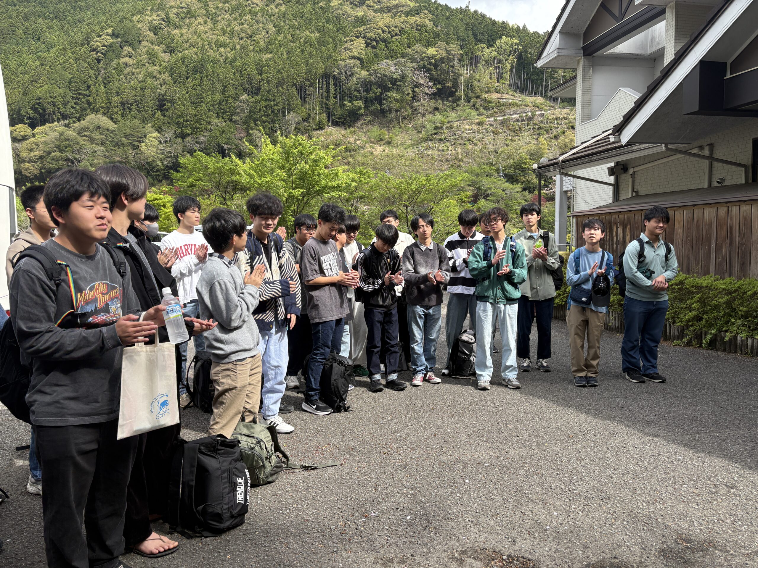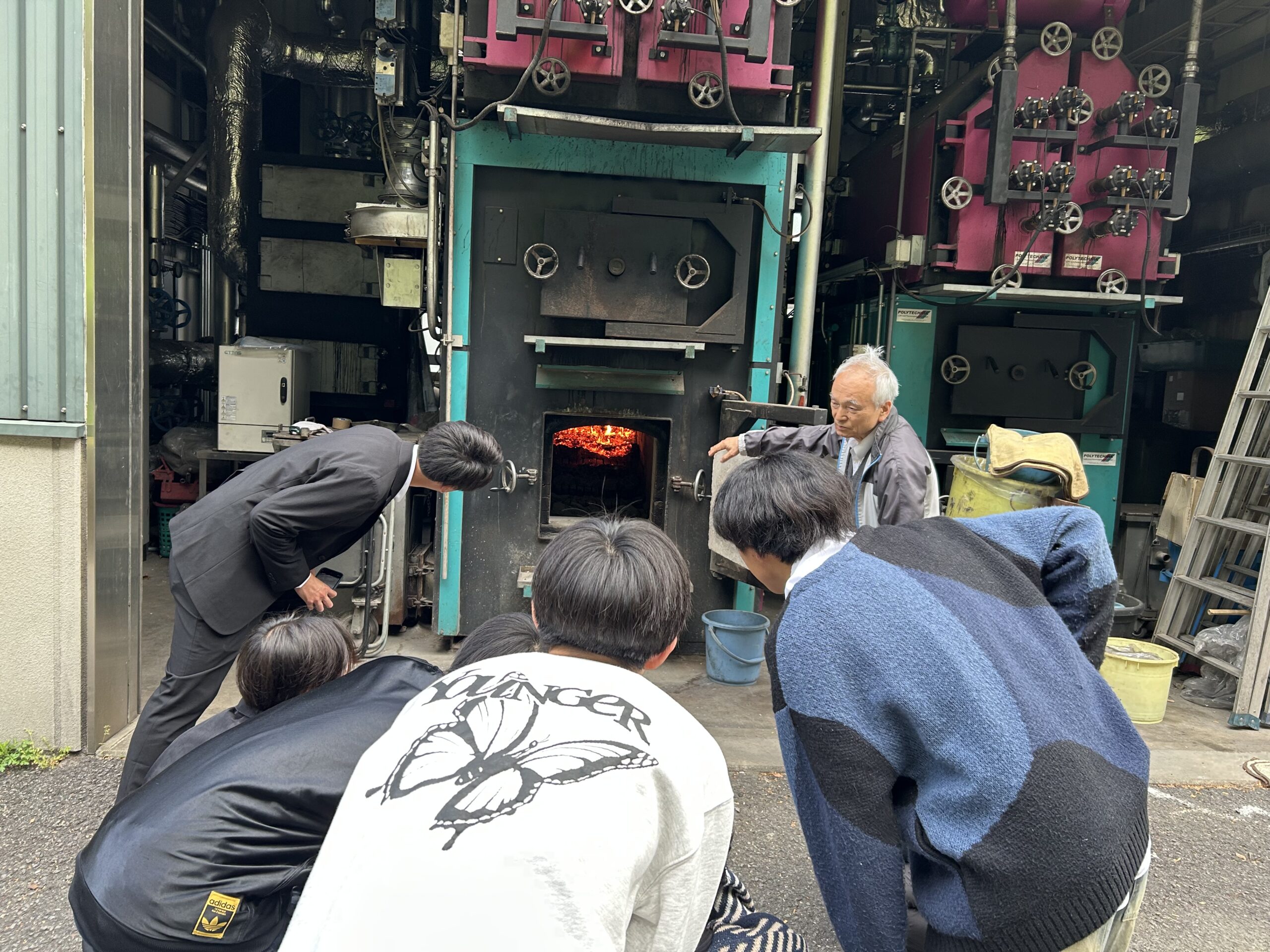 朝は月の宿のお風呂や暖房などに使用しているバイオマスエネルギー施設の見学をしました。間伐された杉の木をウッドチップにして燃焼させるなど改めて上勝町の環境への意識の高さを見れました。