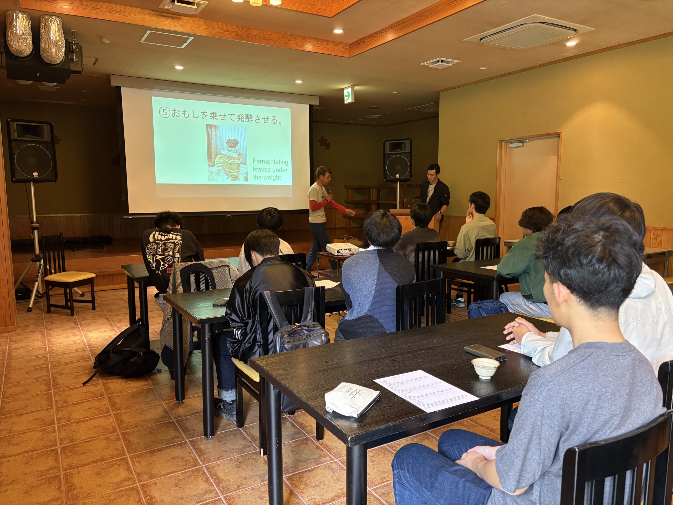 その後朝食をいただき、上勝町の阿波晩茶について、製法や農家さんごとの違いがあると伺い、実際に飲み比べることで、それぞれのこだわりを感じることができました。
