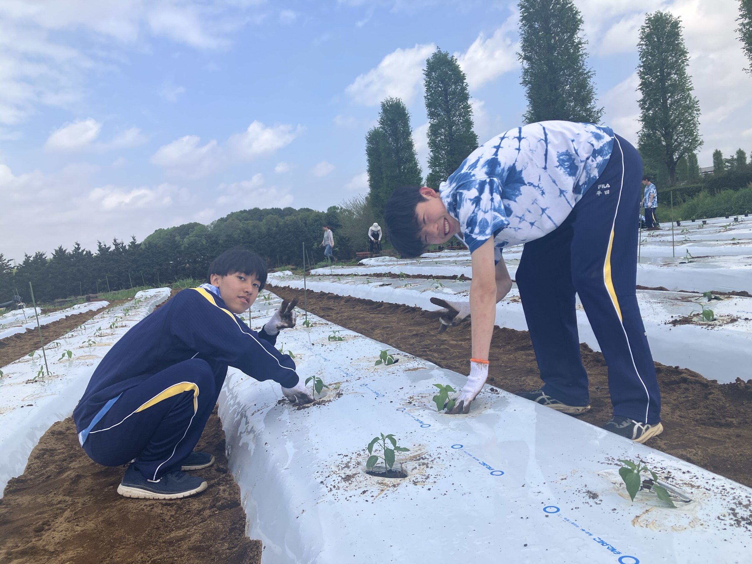 午後は午前中とは違う畑でパドロンというとうがらしを植えます。スペインのしし唐と呼ばれているそうです。同じとうがらしでも苗の様子が全く違っていました。今日の作業で2000株の苗を植えることができました。なんと1トンは収穫できるそうです!!またお手伝いに伺います。本日はありがとうございました。