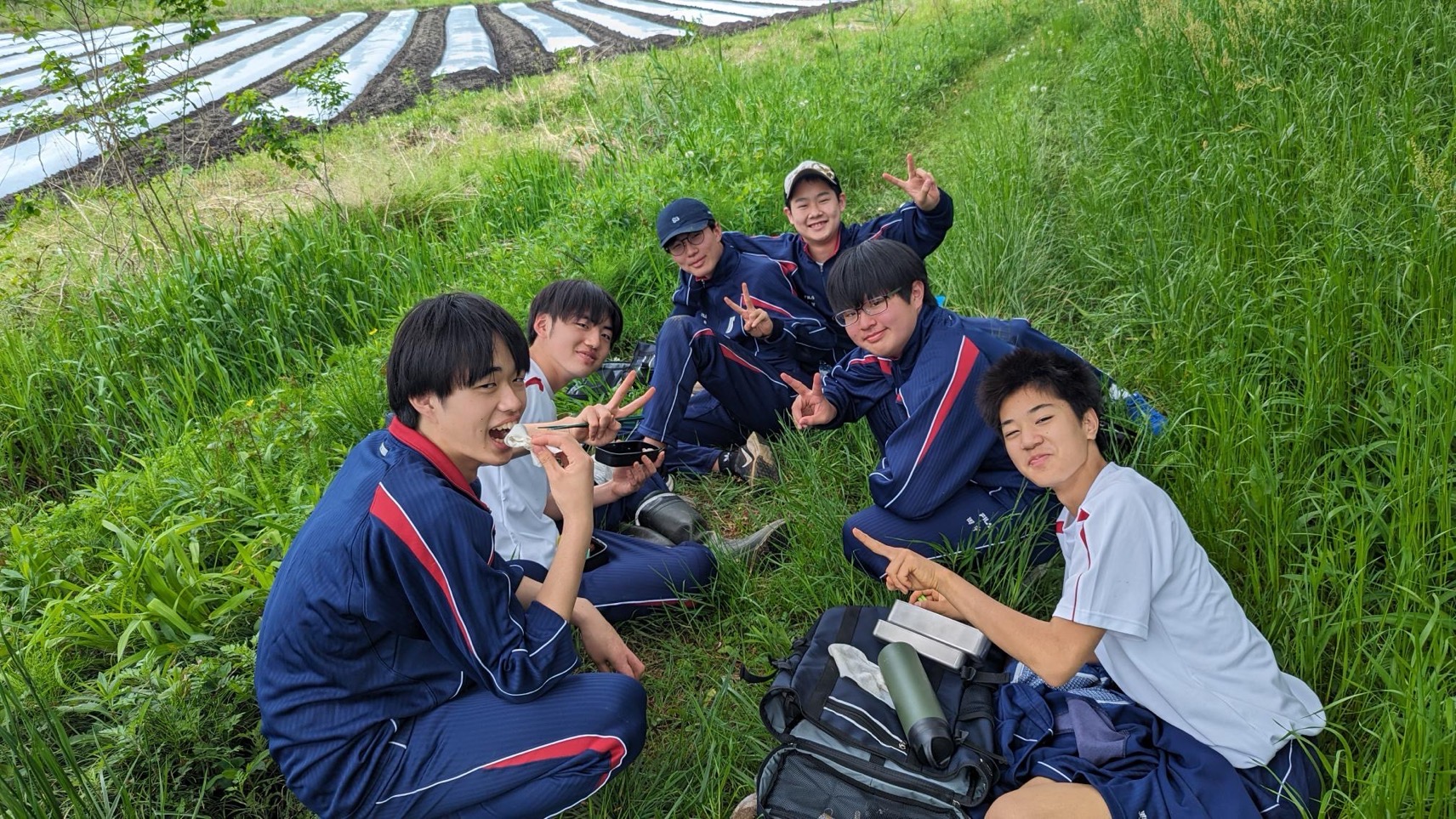 今回植えた苗で6月頃と11月頃に収穫ができるそうです。失敗しないように丁寧に苗を植えていきます。お昼は近くの原っぱで食べました。菜の花がとてもきれいな黄色で春の陽気を感じられました。