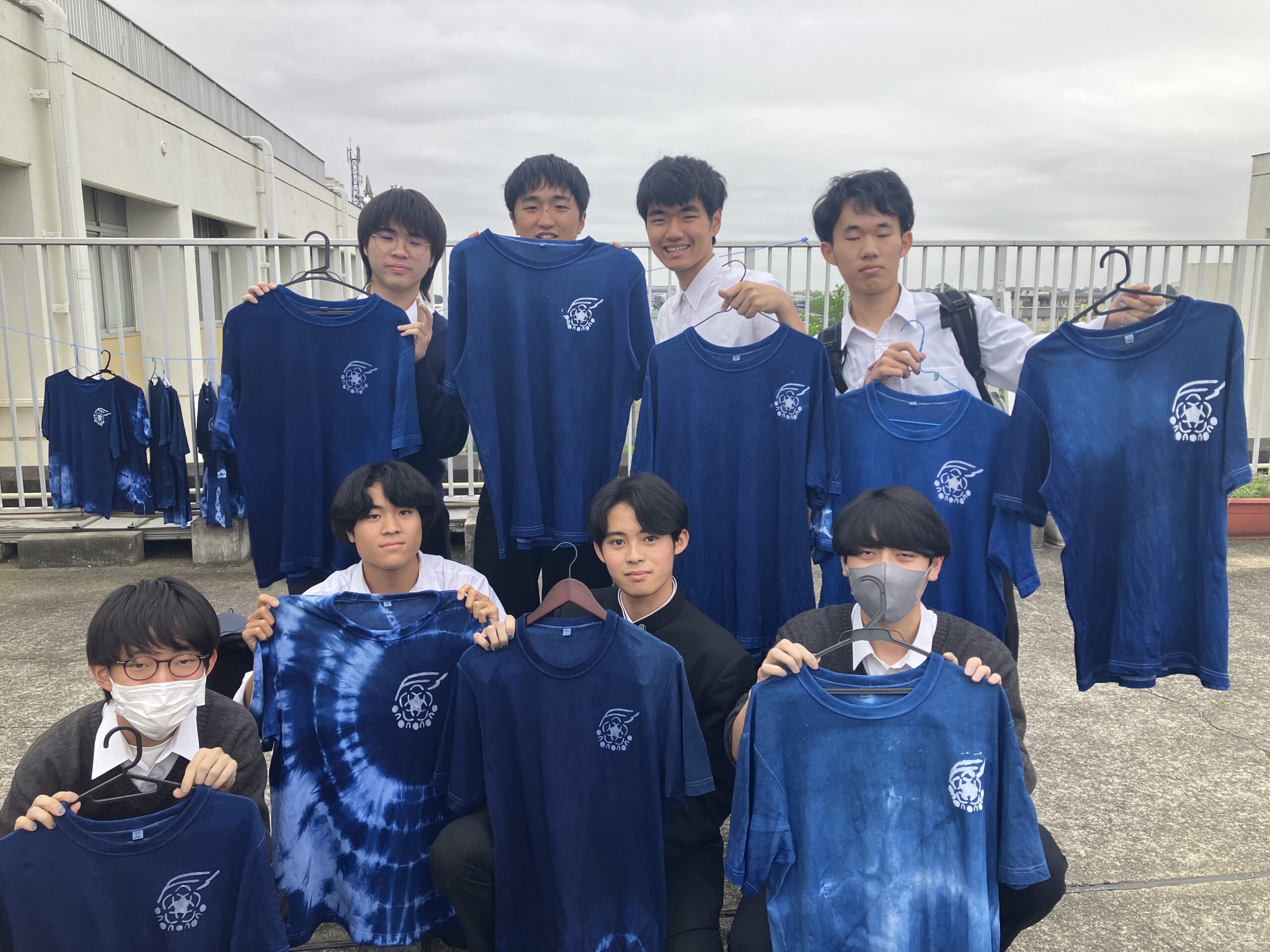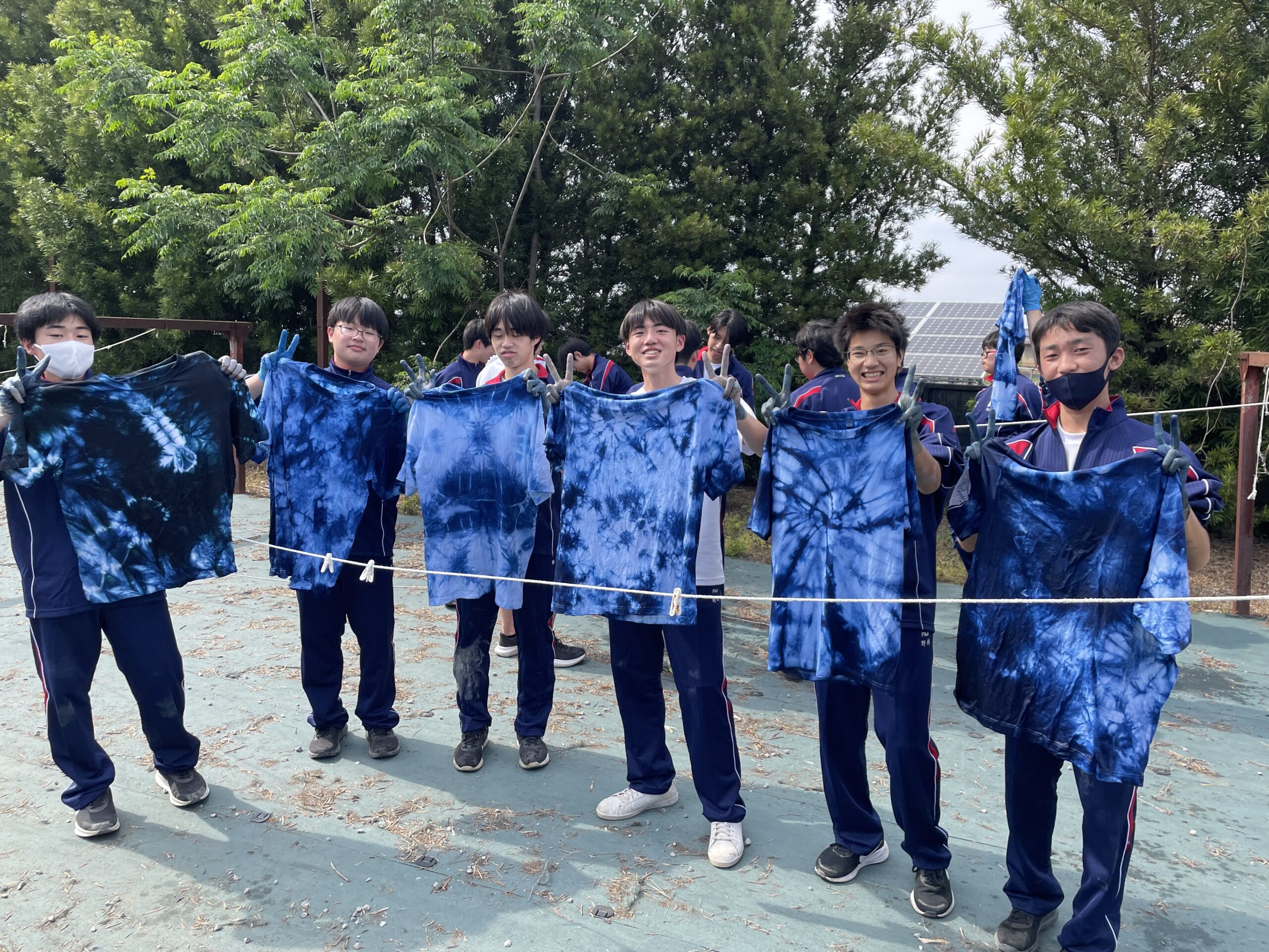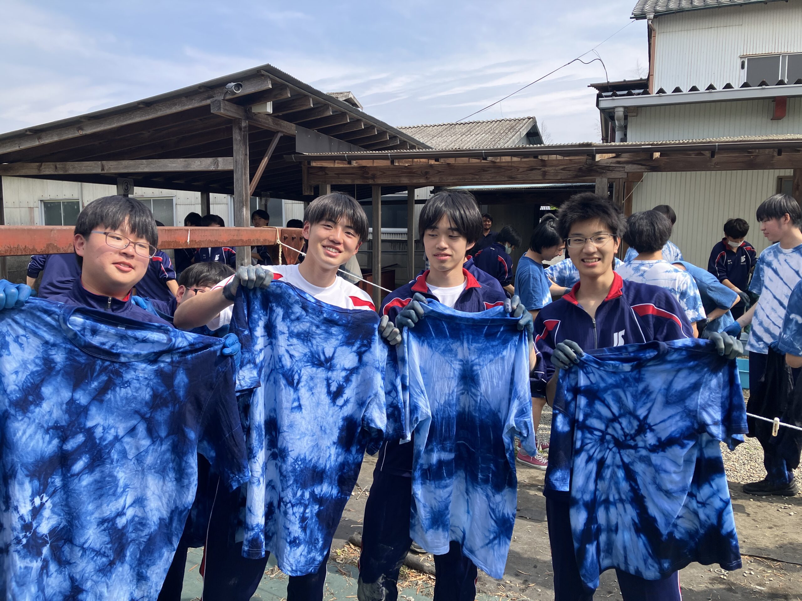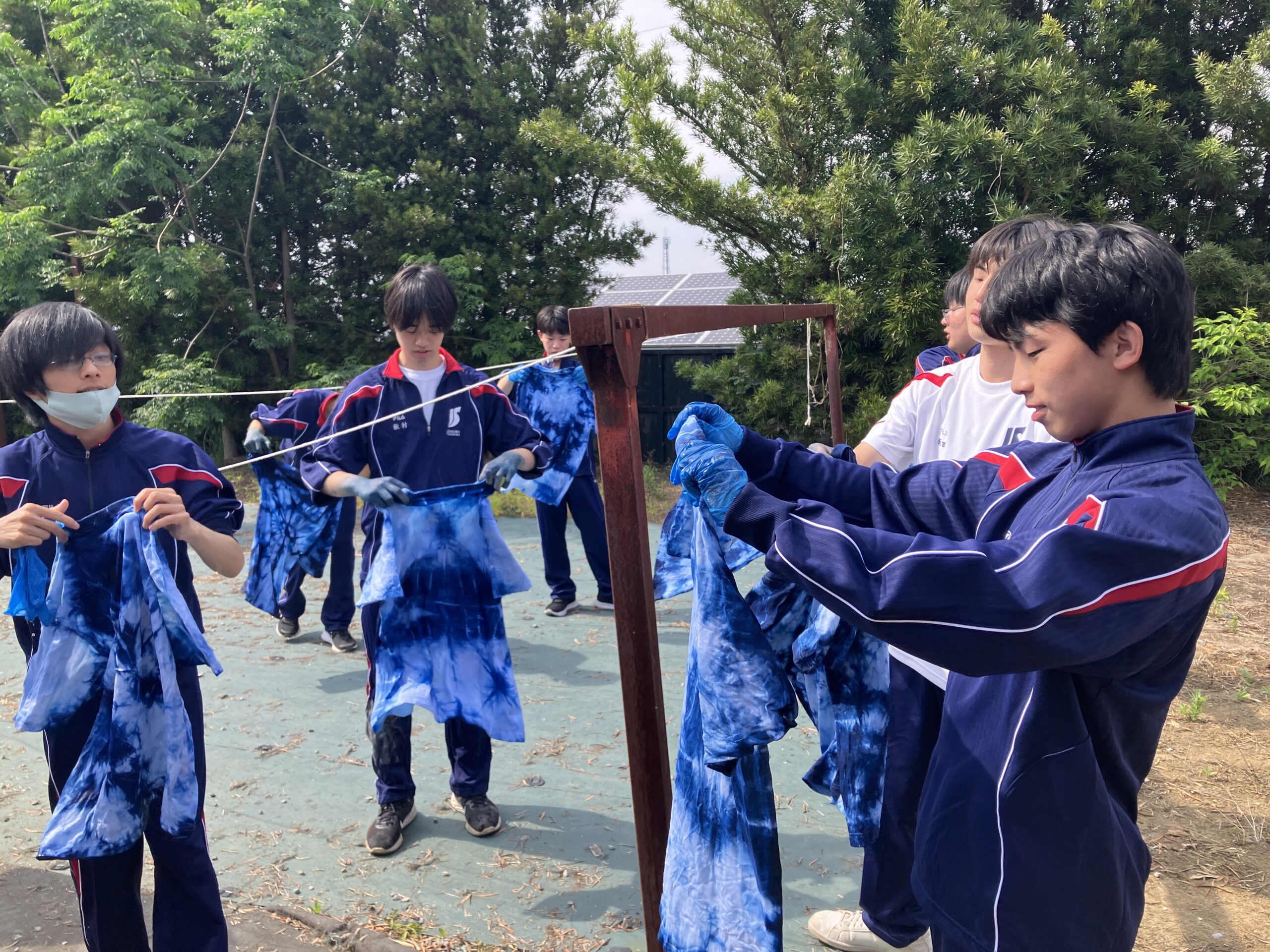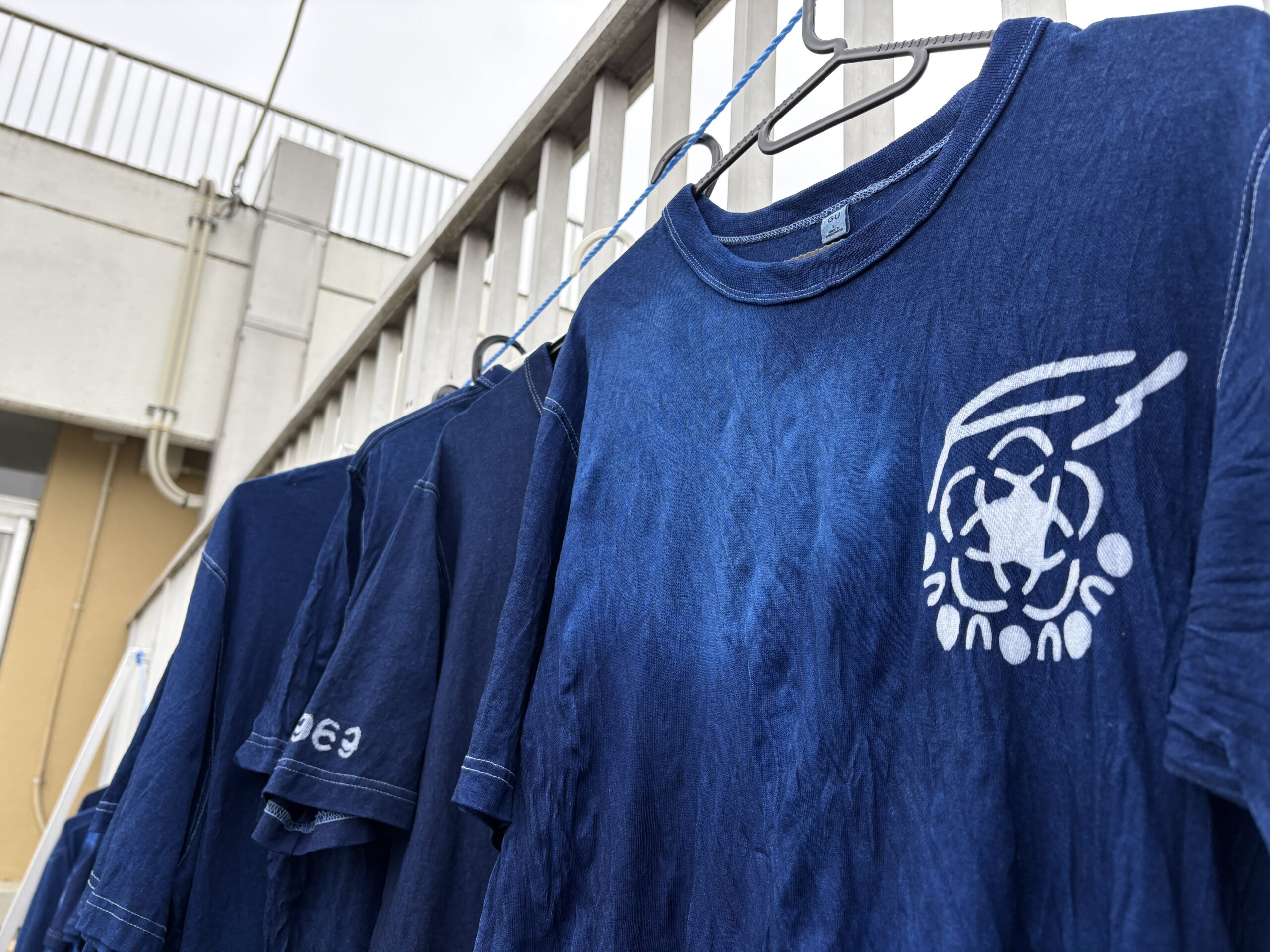 今年のフロンティアコースの3年生たちは、新たな試みに挑戦しました。それが「抜染(ばっせん)」という技法です。抜染とは、染め上げた布地の一部を化学的に脱色し、模様や文字を浮かび上がらせる伝統的な染色技法のひとつ。あえて“色を抜く”ことで、藍の深みの中に新たな表現が生まれます。