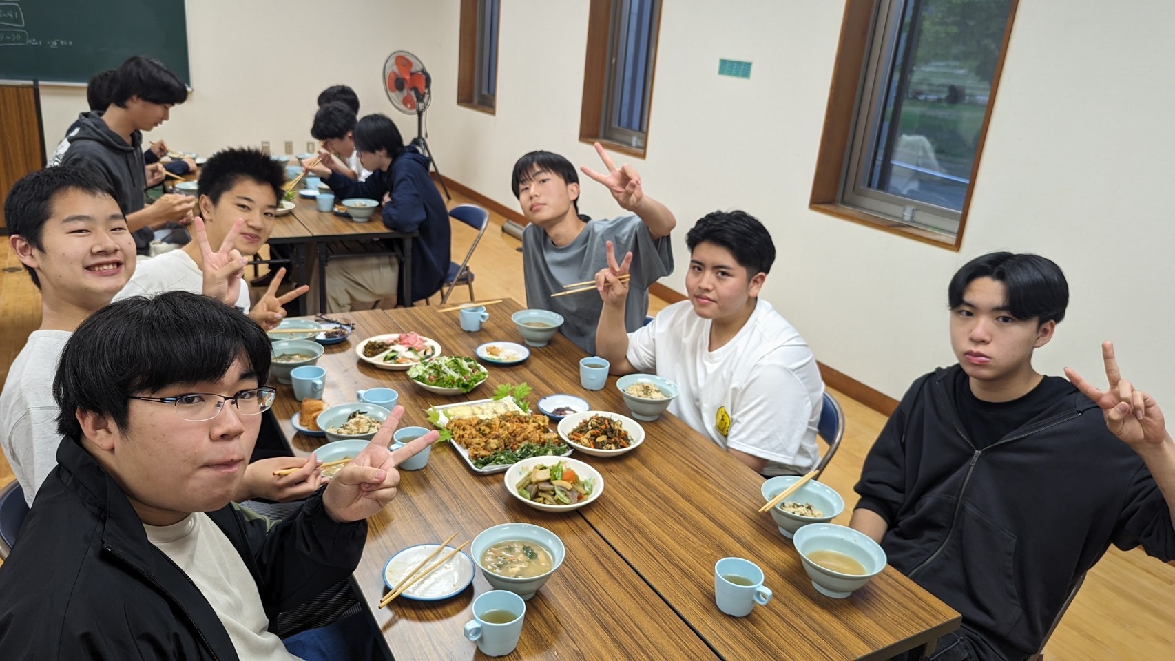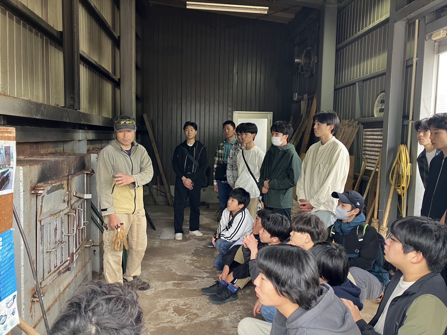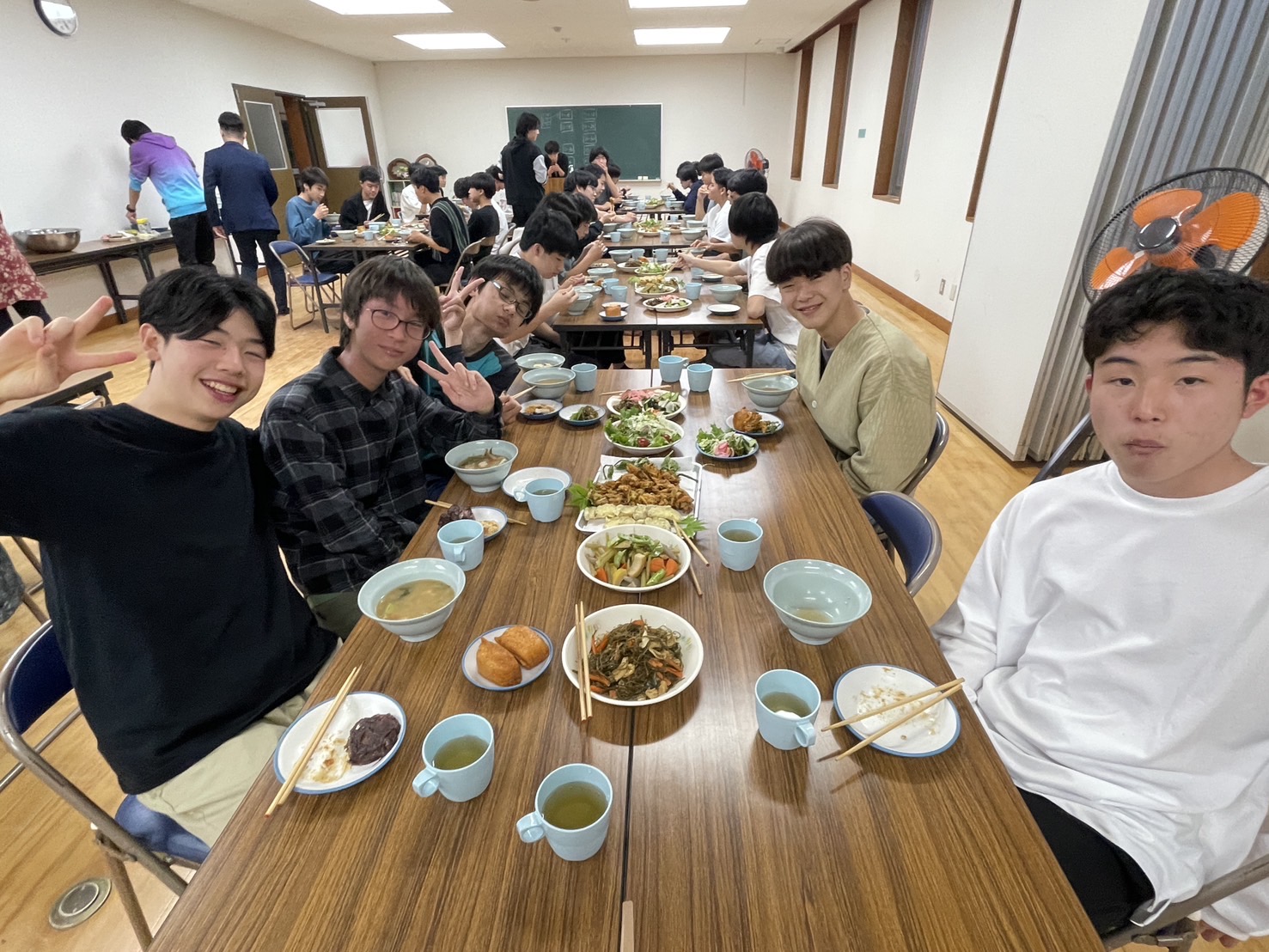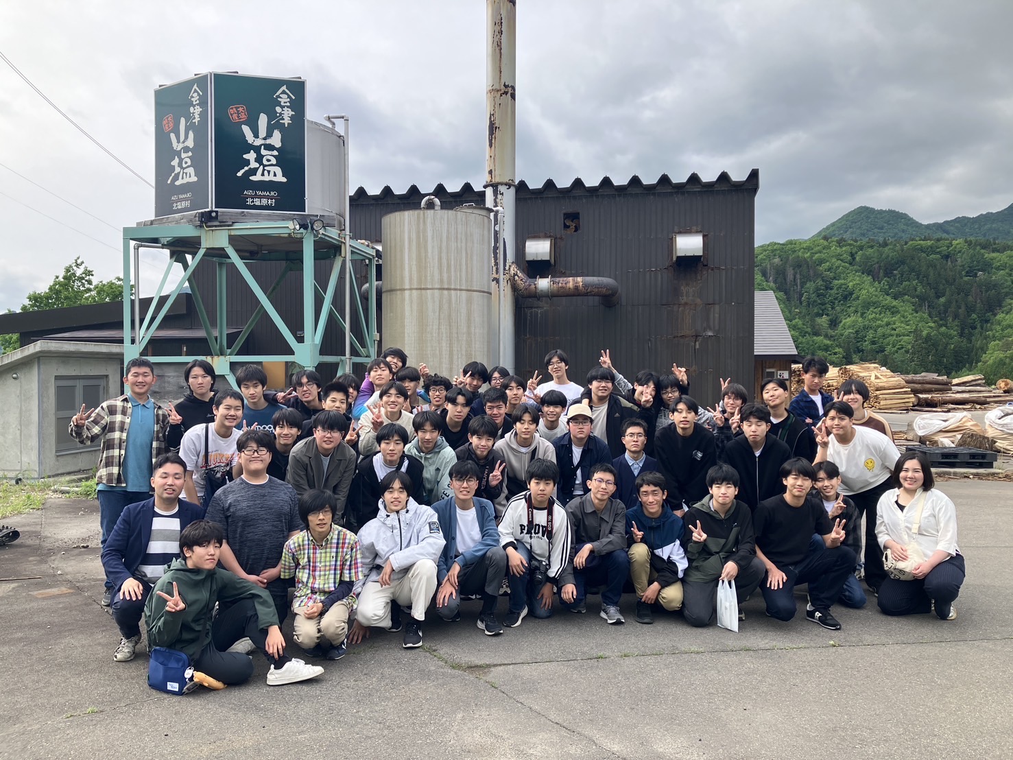 今回が初めての合宿行事です。本日は移動がメインになりましたが、山塩の工場を見学しました。工場で実際に製塩されている職人さんの話を聞くことができました。実際に行ってみて釜による熱気を感じることができました。今までは塩を当たり前のように使っていますが、塩作りの大変さを知ることができました。まだまだ1日目ですので頑張っていきたいと思います。