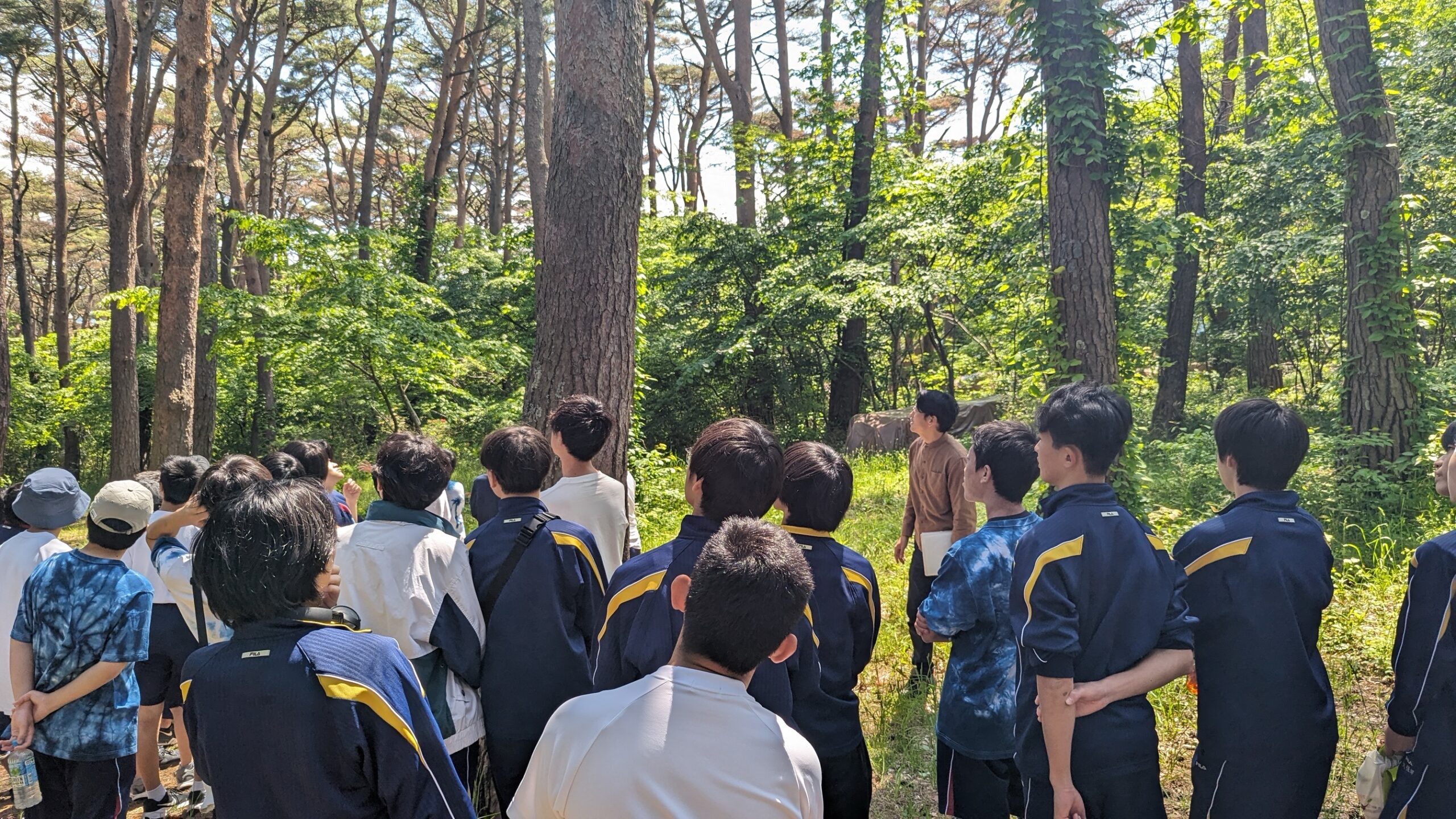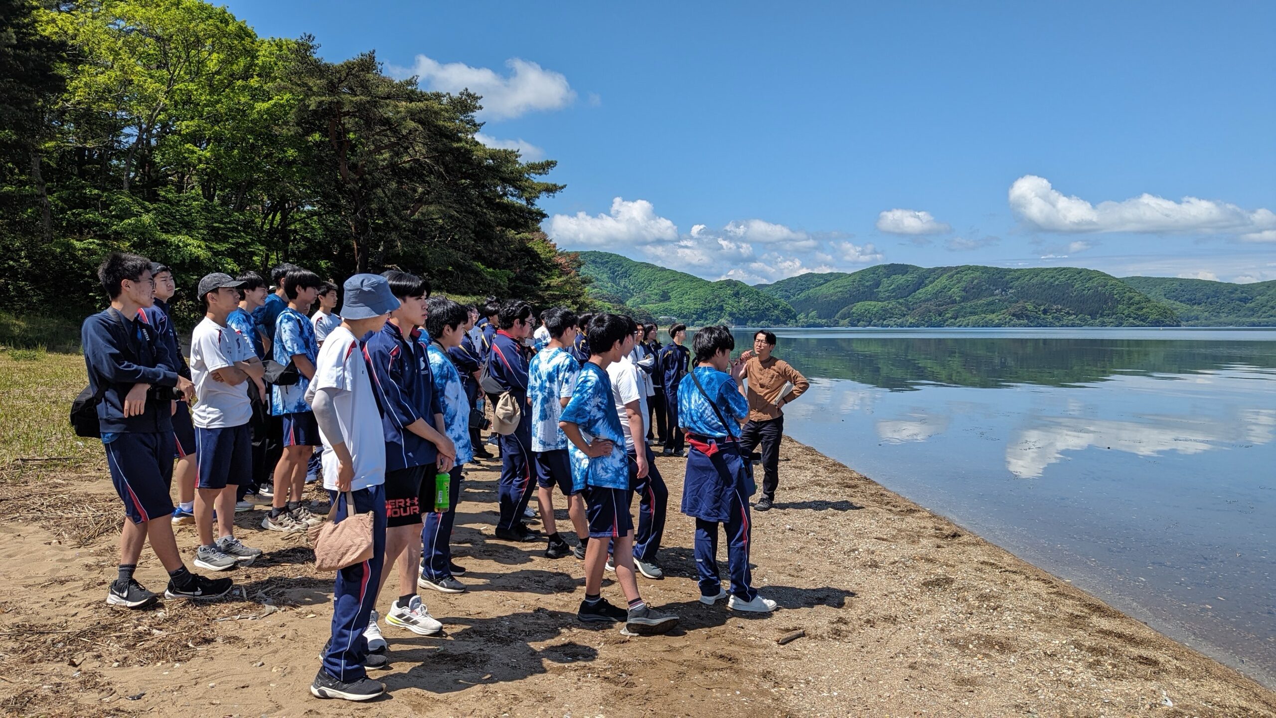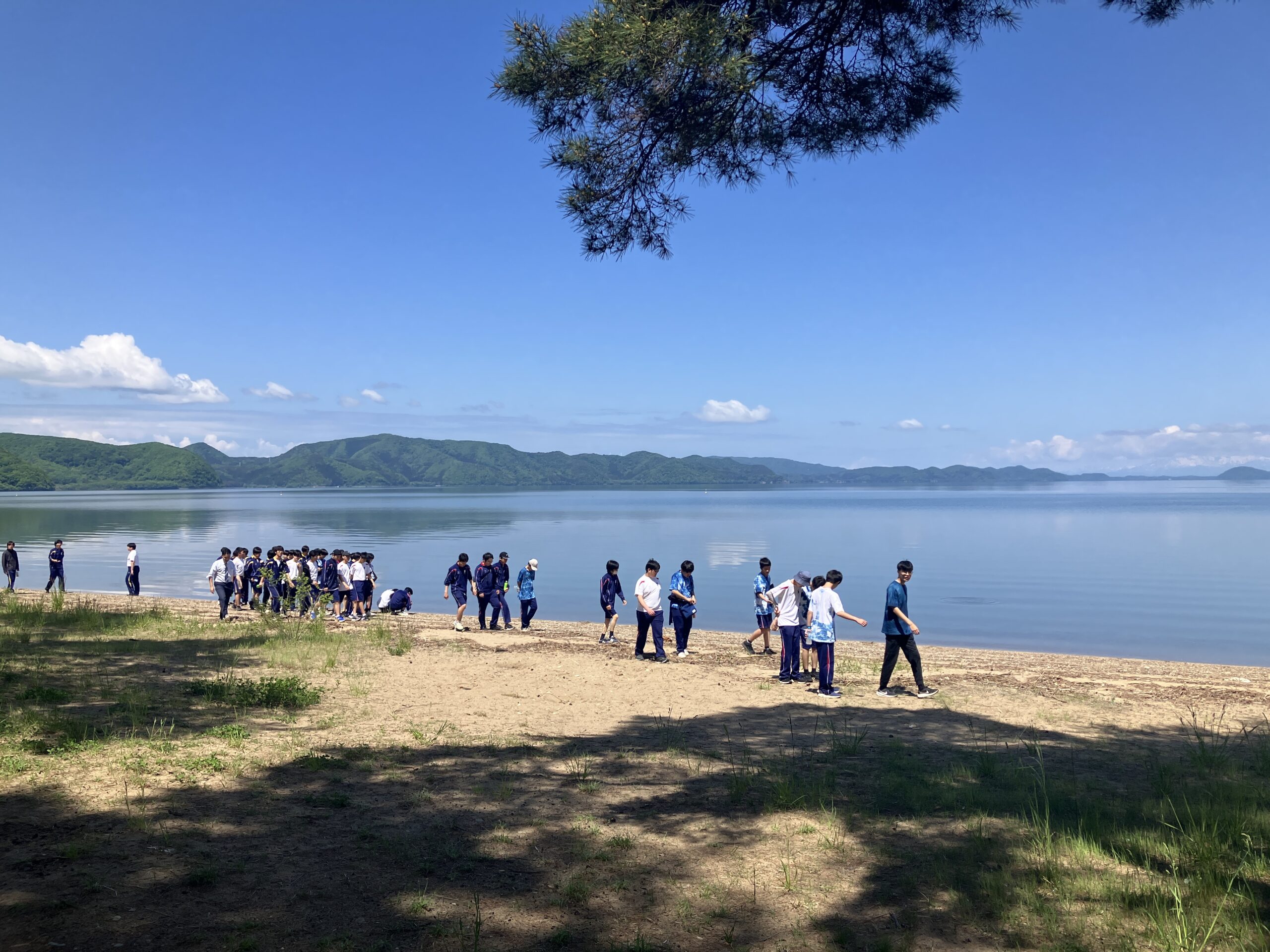 午前中は少年湖畔の村と猪苗代湖の周辺を歩きながら、猪苗代湖と周辺の林に起きている変化や自然における生物の共生についてなど様々なことを学びました。