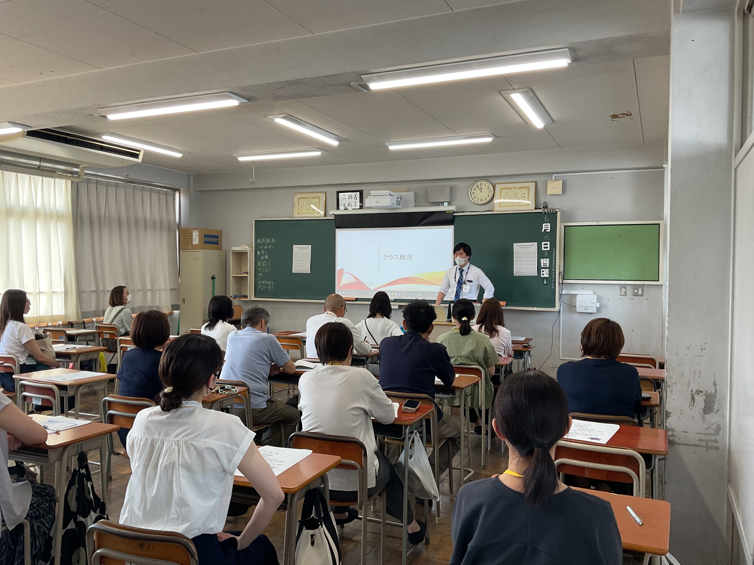全学年で第1回保護者会とは異なる科目の授業が公開され、多くの保護者の皆様に生徒の様子をご覧いただきました。 各クラス懇談会では、学校生活の様子や体育祭の報告、学業成績や夏の面談についての案内がありました。