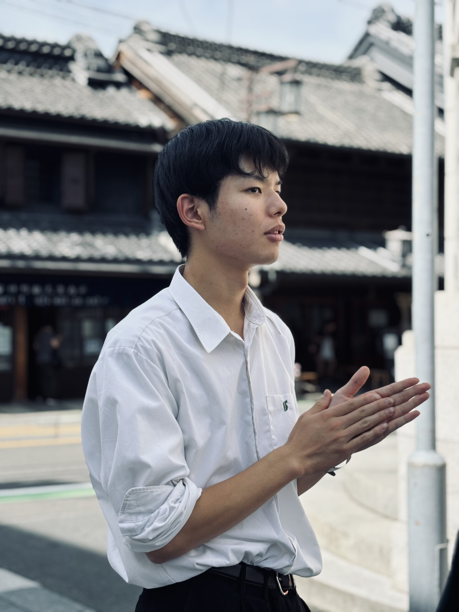 今回は、川越の建築文化に詳しい『川越の建物』の著者・神谷利男さんと協力し、生徒たちが川越の街を案内するツアーを担当しました。蔵造りの特徴や昭和から続く建物の趣など、写真では伝えきれない川越の歴史と文化を、実際に歩きながら来場者に紹介する貴重な経験となりました。