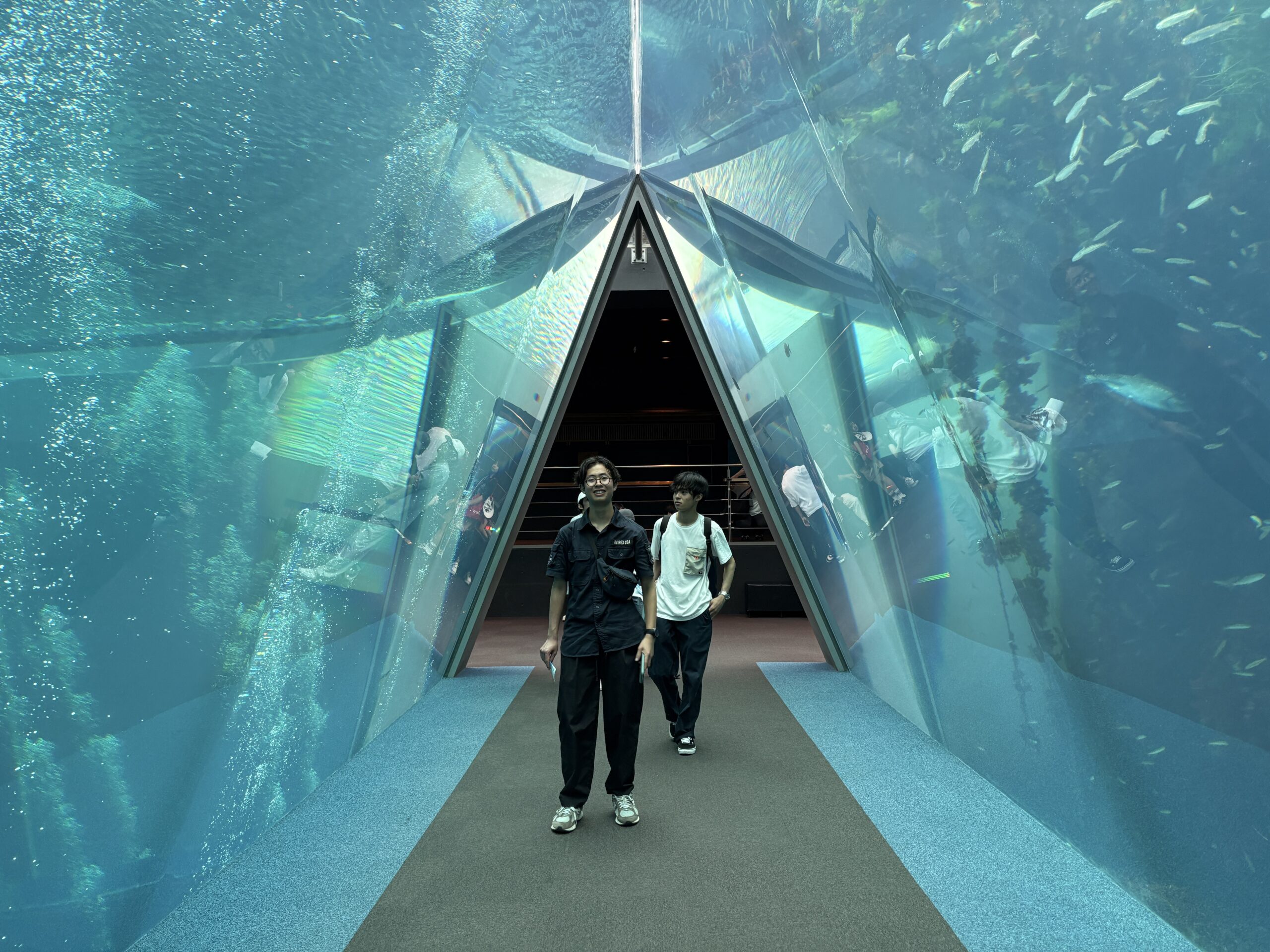 初日は、潮目の海や福島の里山環境をテーマにした水族館「アクアマリンふくしま」を訪れ、自由に館内を見学しました。国内外から研究者も訪れるこの施設で、生徒たちは自然の多様さや展示の工夫に触れ、水族館の新たな一面に気づく機会となりました。