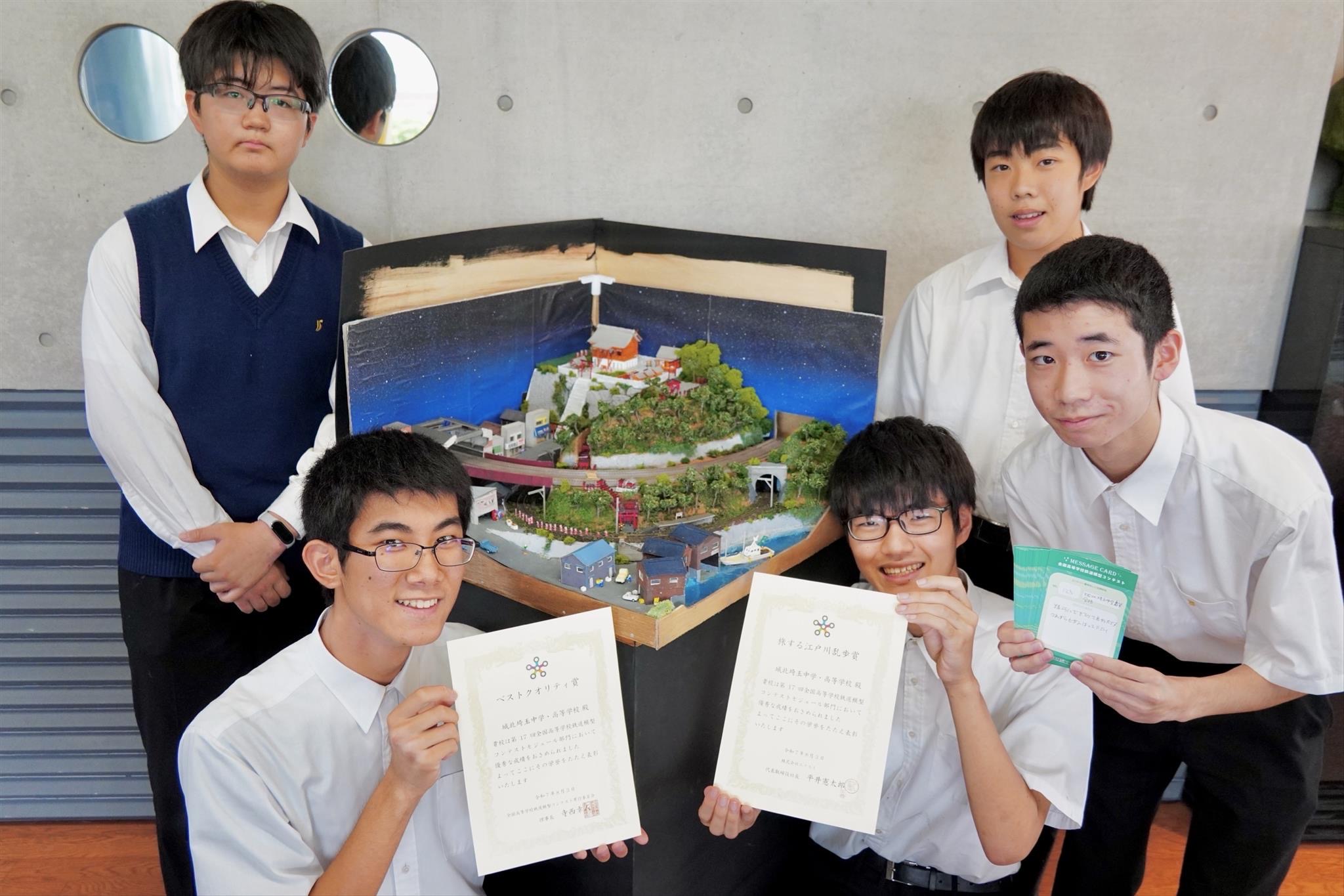 第17回全国高等学校鉄道模型コンテスト(2025)が8/1(金)〜3(日)に行われ,鉄道研究部の作品がモジュール部門において「旅する江戸川乱歩賞」と「ベストクオリティ賞」を受賞しました。賞状が届き,結果がコンテスト公式ウェブサイトに掲載されましたのでご報告いたします。