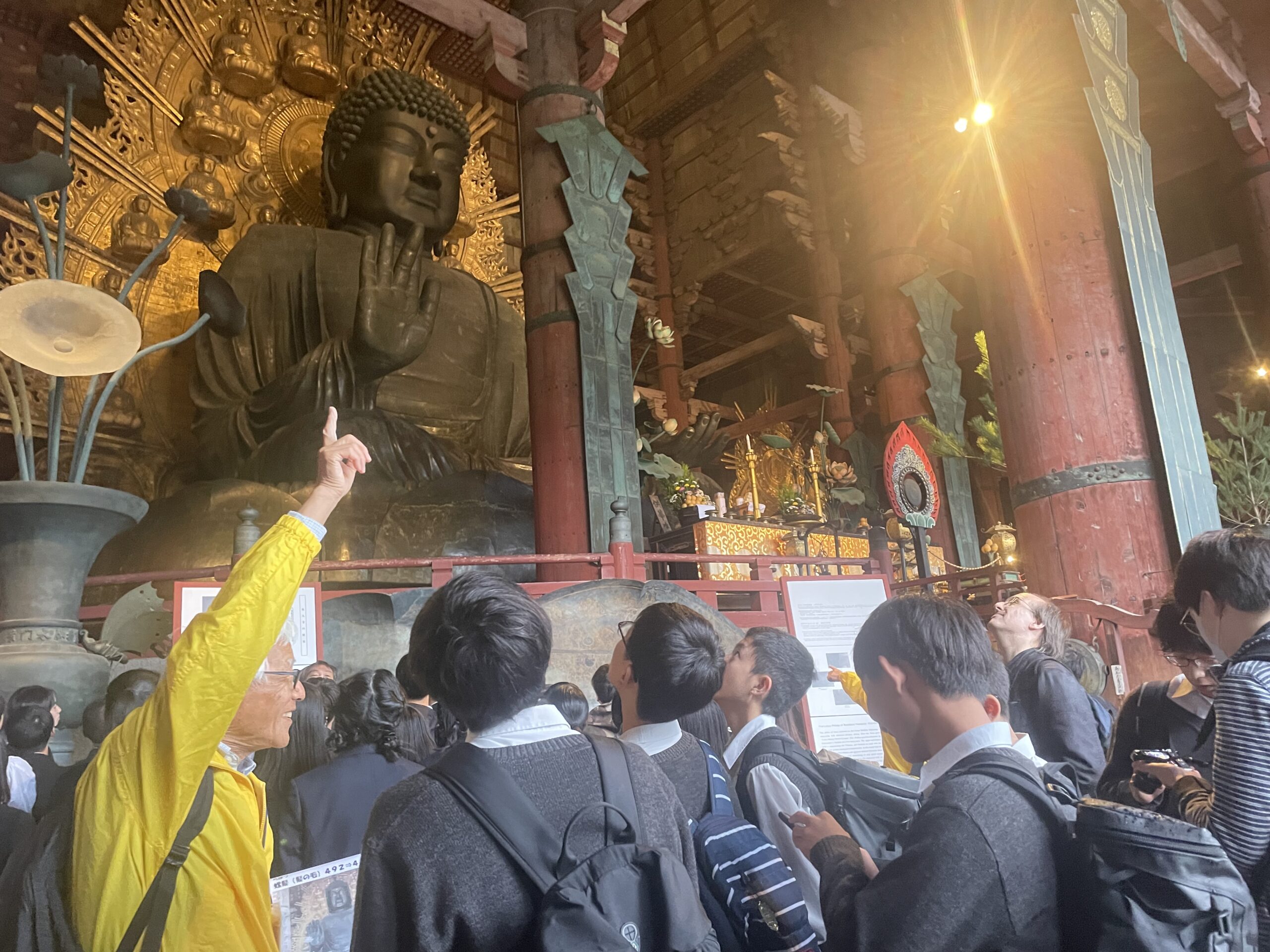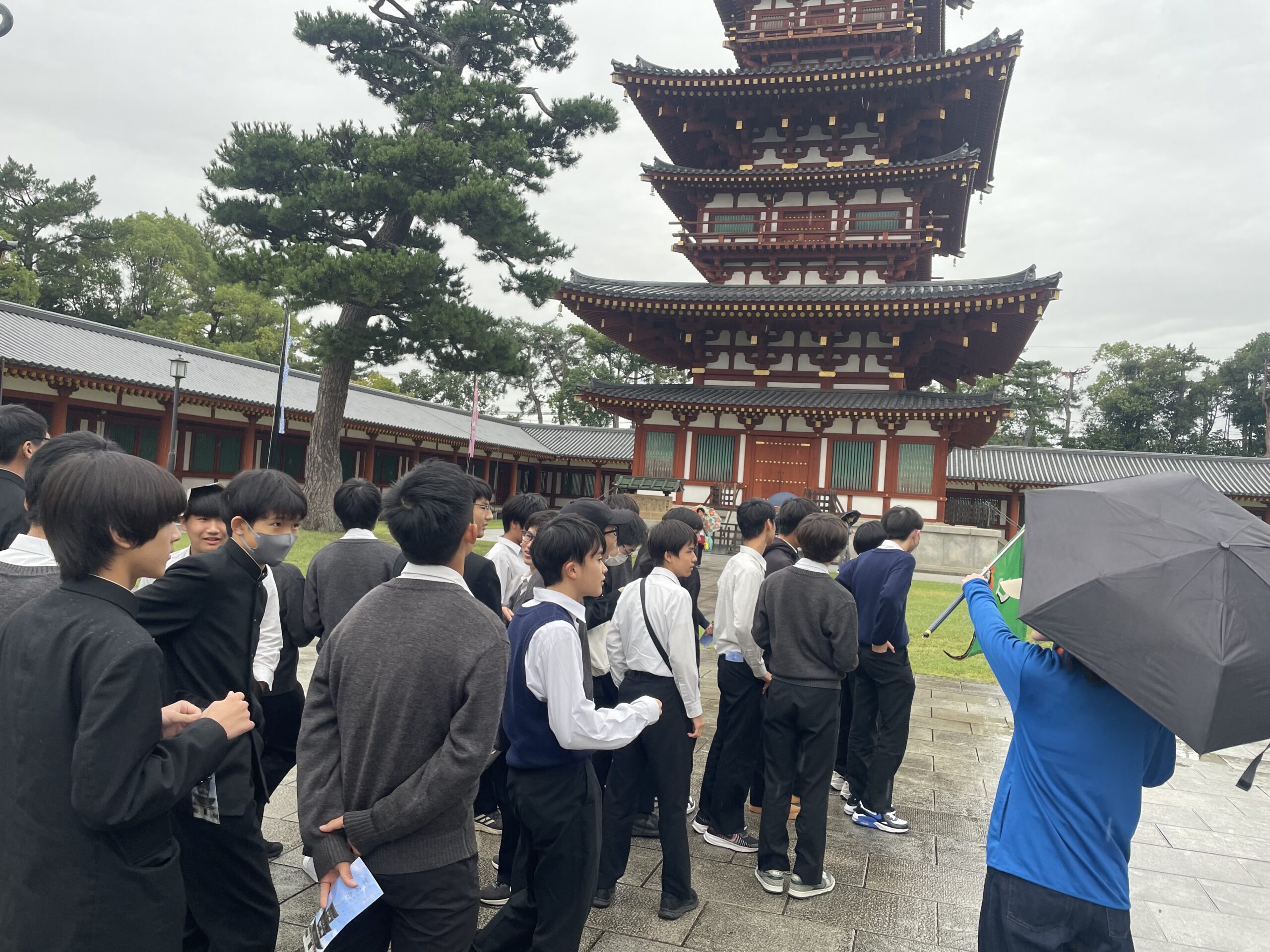 本日から3泊4日で中学3年生の修学旅行が始まりました。 東京駅を定刻通りに出発することができました。 本日の予定は奈良の薬師寺と奈良公園の見学でした。 薬師寺では楽しく学びになる法話を聞かせて頂きました。奈良公園ではガイドさんに案内して頂きました。メジャーを用いながらの大仏の大きさの説明に「そんなに大きいの」と新たな発見をしたり、実際に木で作られた金剛力士像に目を光らせたりと現地でしか味わえない深い学びができました。