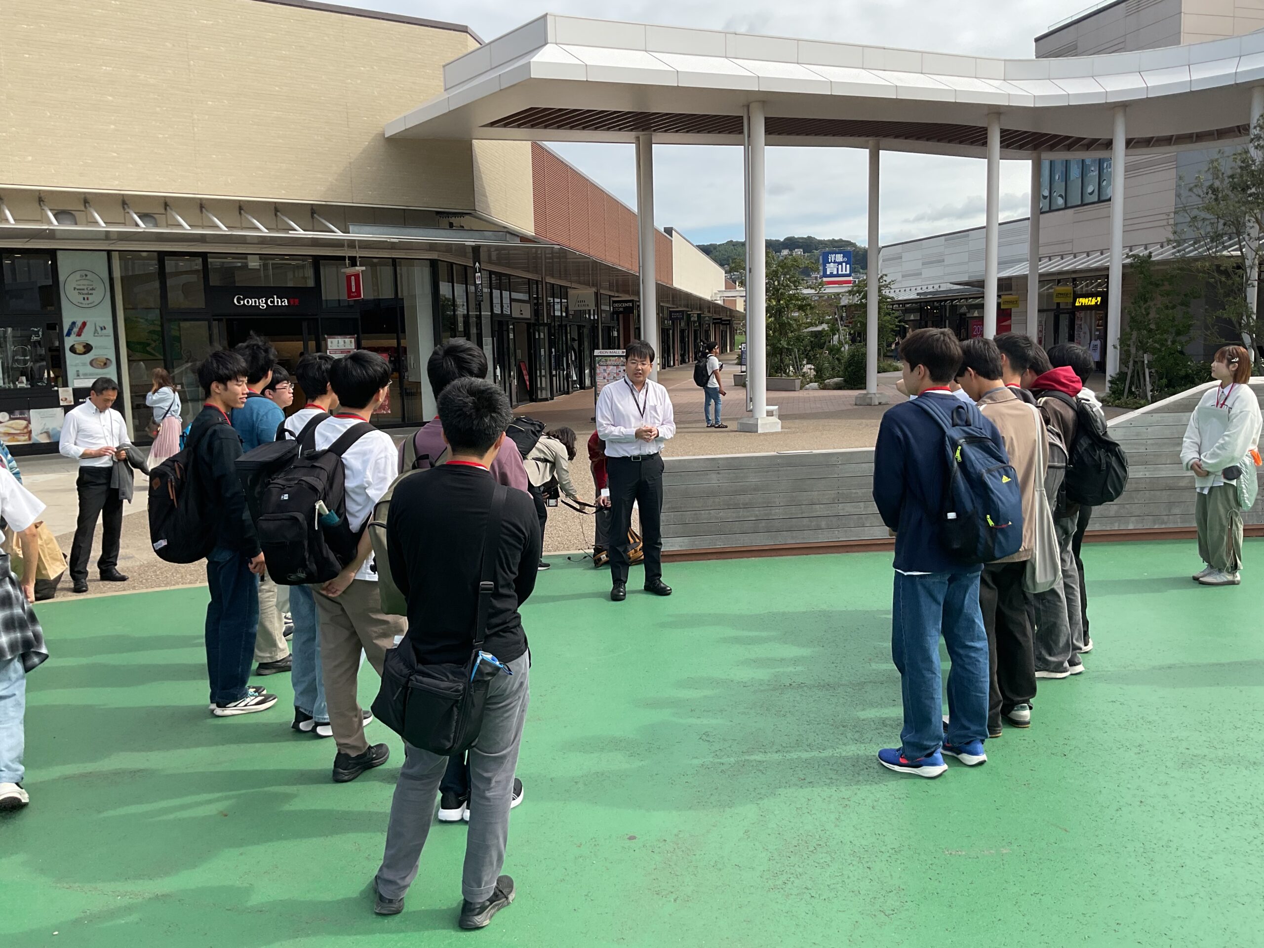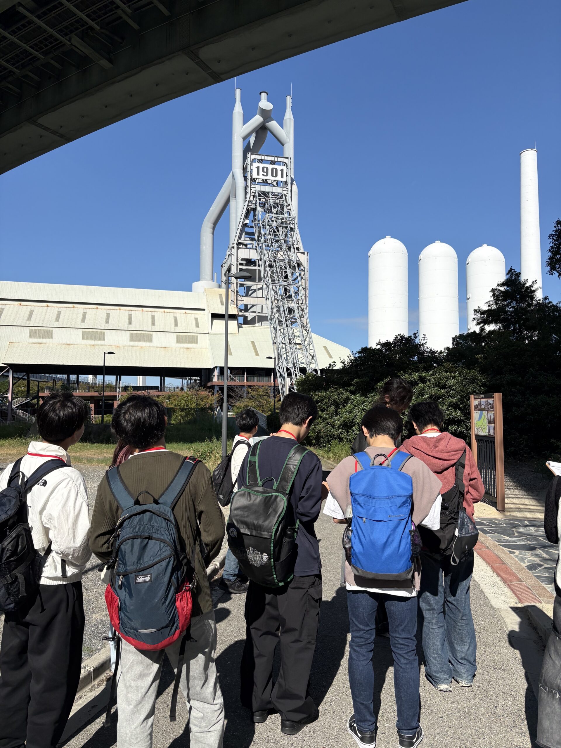「Rethink YAHATA」プログラムでは枝光コース・八幡コースに分かれ、SDGsへの取り組みについて町歩きを行いました。枝光コースでは、アウトレットでの地域との関わりとしてゴミ処理での工夫についてインタビューを行い、その後向かった八幡製鉄所関連施設では旧本事務所を見ながら大学生と意見を交わしました。また、八幡コースでは、八幡地区での戦後の町づくりを皮切りに、八幡地区を中心として大学生に案内してもらいながら町歩きを行ないました。