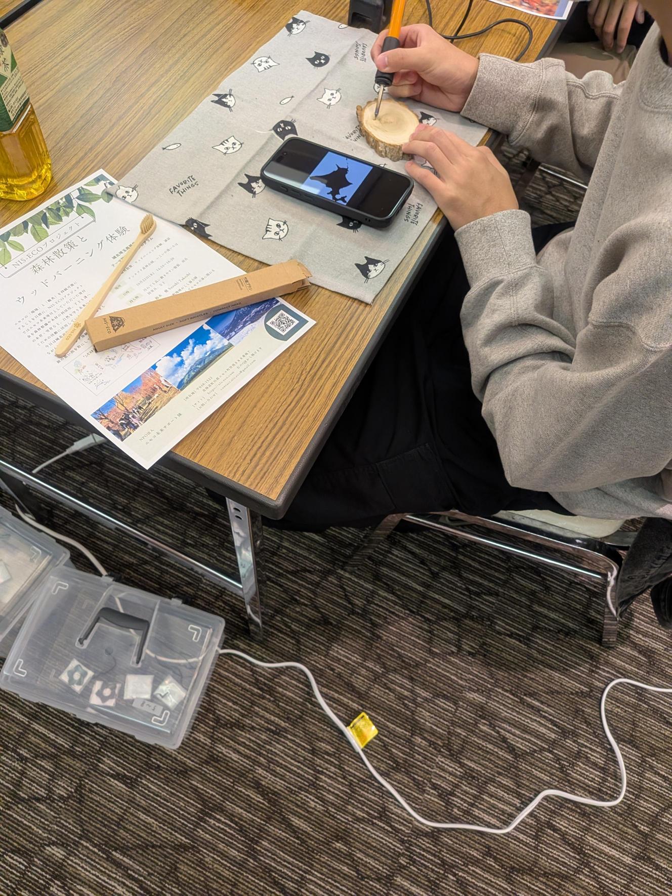 その後は、森林散策とウッドバーニング体験を行い、講話で学んだ内容を実際に体感することができました。特に、「林業」が首都圏で暮らす私たちの生活にも深く関わっていることを知り、環境と人とのつながりを改めて実感しました。