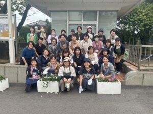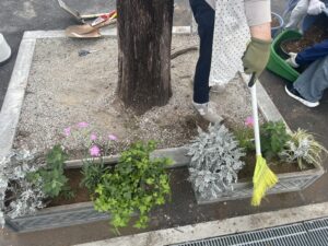 土の入れ替え作業中、バスを待つ生徒さんに「何をしているのですか?僕にもお手伝いさせて下さい」とお声を掛けて頂き、飛び入りで参加して頂くという、大変嬉しい一幕もありました。フカフカの土に生まれ変わったプランターでは、秋の花が美しく咲いてくれるのではないかと思います。