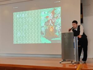 決勝戦では、中1と中2の生徒たちの見守る中、6名の代表がそれぞれの「推し本」を熱く紹介。中学2年1組 城戸君が紹介した『クスノキの番人』(東野圭吾著/実業之日本社)が、約200冊の中から「チャンプ本」に選ばれました。