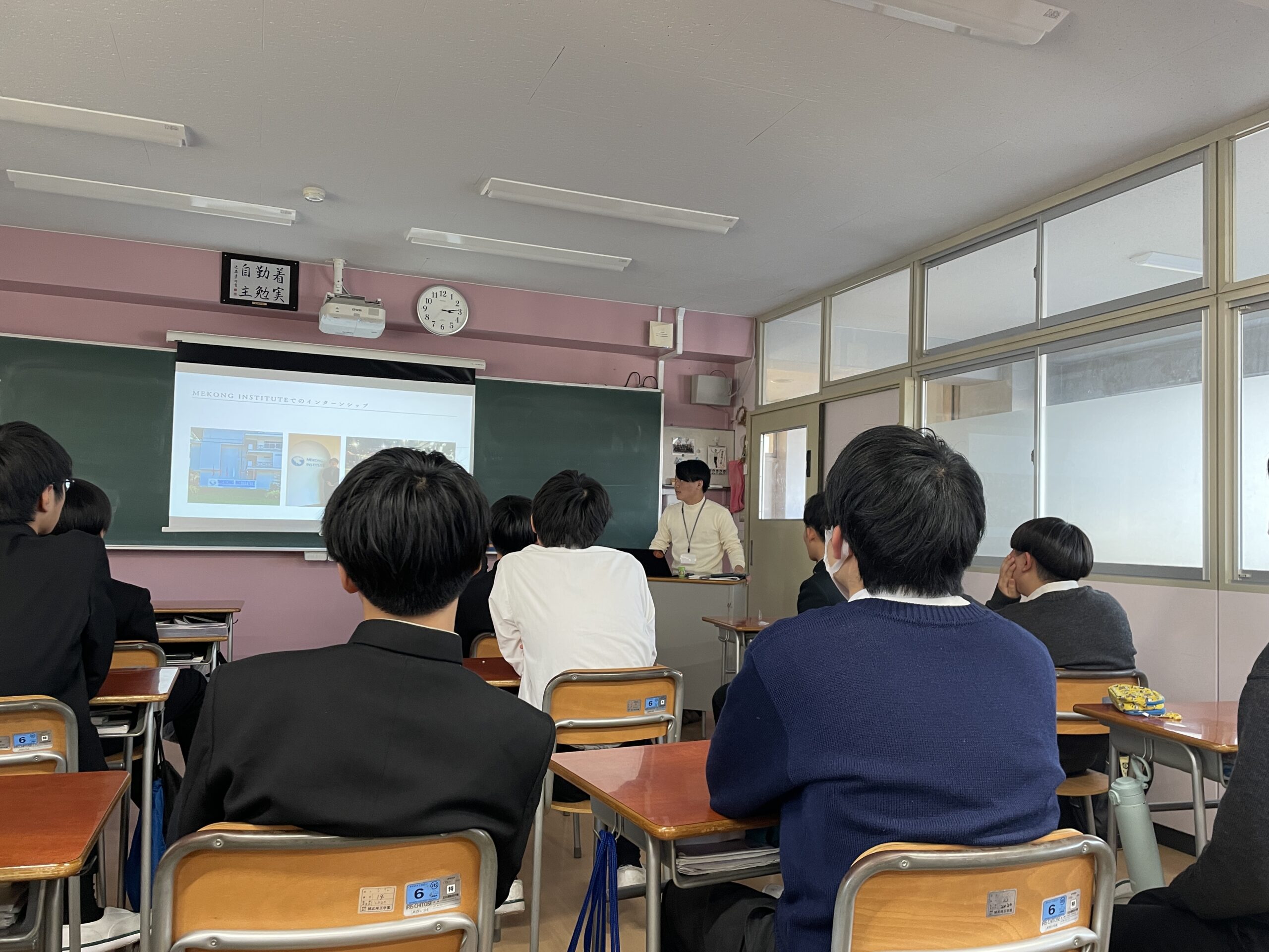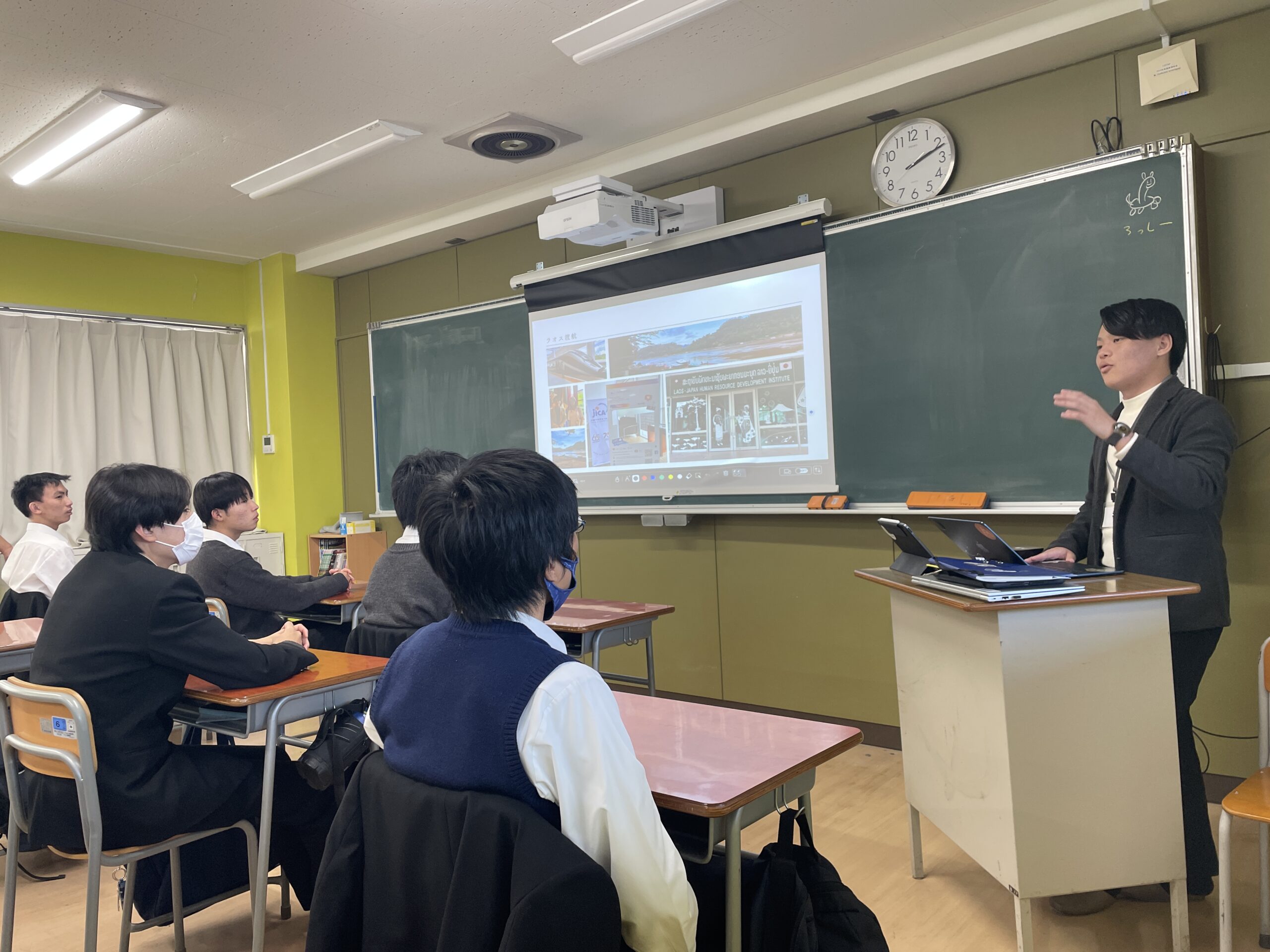 11月19日、本校フロンティアコース1期生OBの北條琉人さんにご来校いただき、各教室にてミニ講演をしていただきました。 高校時代の活動や、現在の大学での学びについて、各学年の状況に寄り添いながらお話しいただきました。
