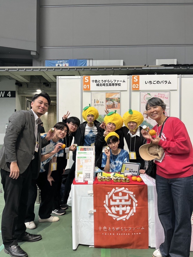 毛呂山の桂木ゆずに再び注目してほしいという想いや、6次産業化に向けた取り組みを来場者に伝えたり、試食を提供したりと、1日中大忙しでした。高校生が商談会場にいることは珍しいようで、他のブースの方から声をかけていただいたり、商談会に来場された本校OBの方にもお越しいただいたりと、新たな「縁」を築くことができました。