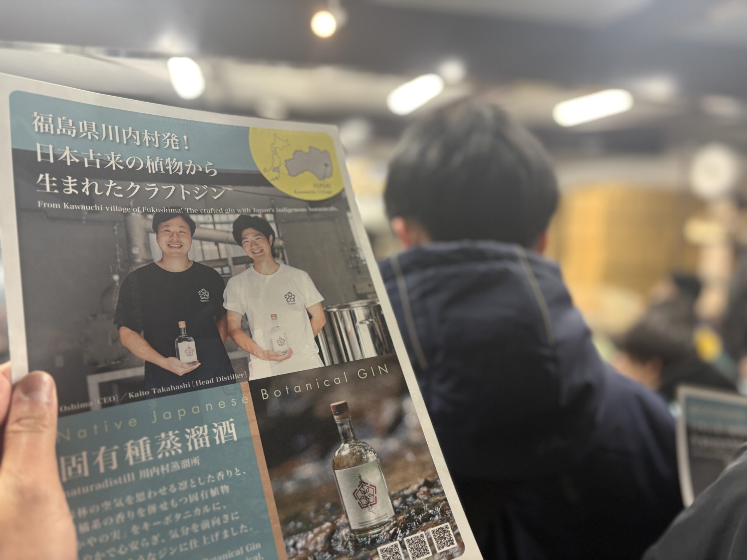 川内村の村民でもあまり名前を挙げないような“隠れた名産”であるカヤの実に着目し、それを使ったジンづくりに取り組んでいる方です。メインメンバー四人、サブメンバー四人の計八人で作業しており、直近の目標は「社員の収入を東京の平均年収に到達させること」だそうです。大企業が手を出さない領域にあえて挑むことで市場を切り開いており、最近はシンガポールへの輸出にも成功したとのことでした。ジンを選んだ理由は、自由度が高く、多様な植物を取り入れて香りを生かせるからだそうです。