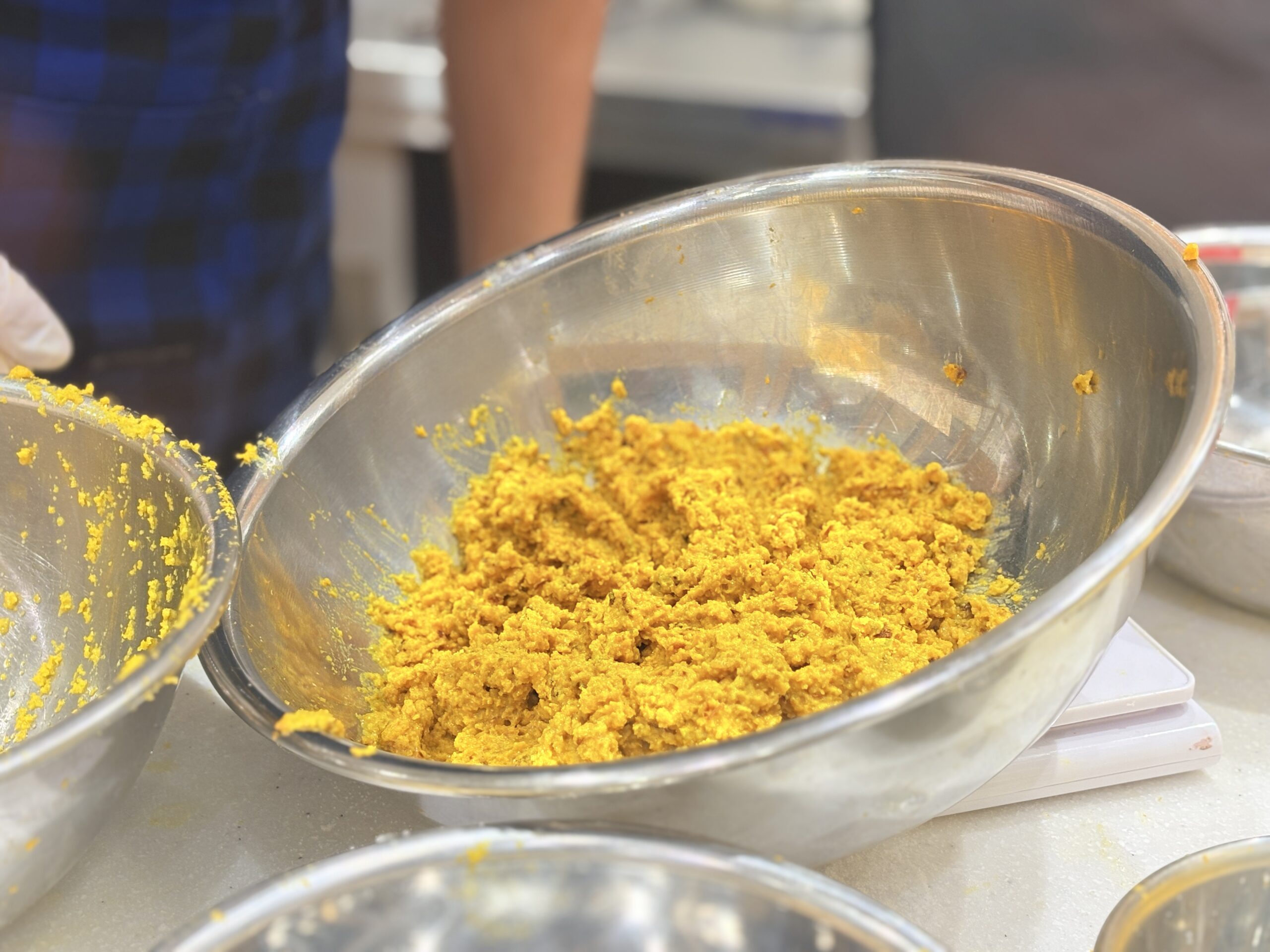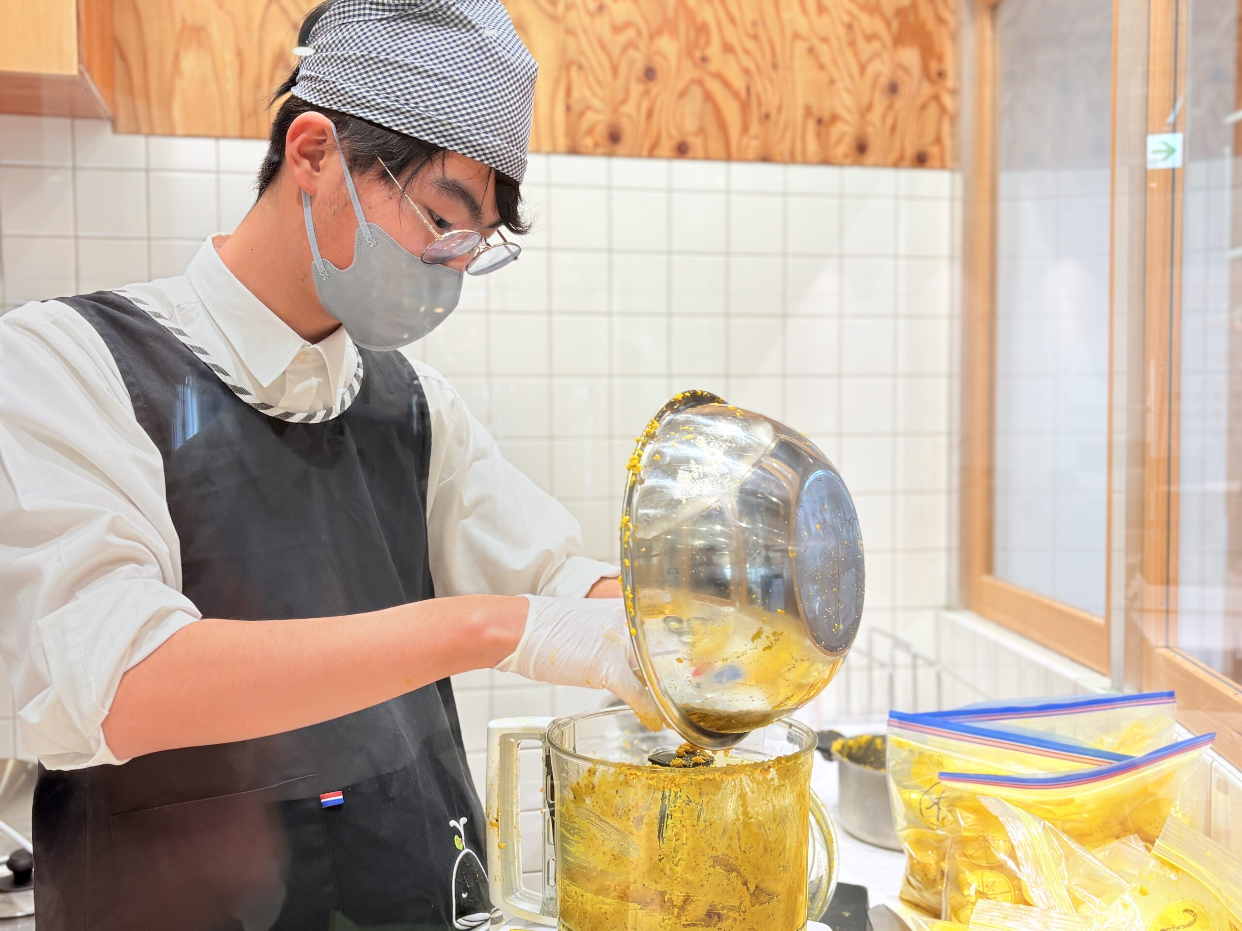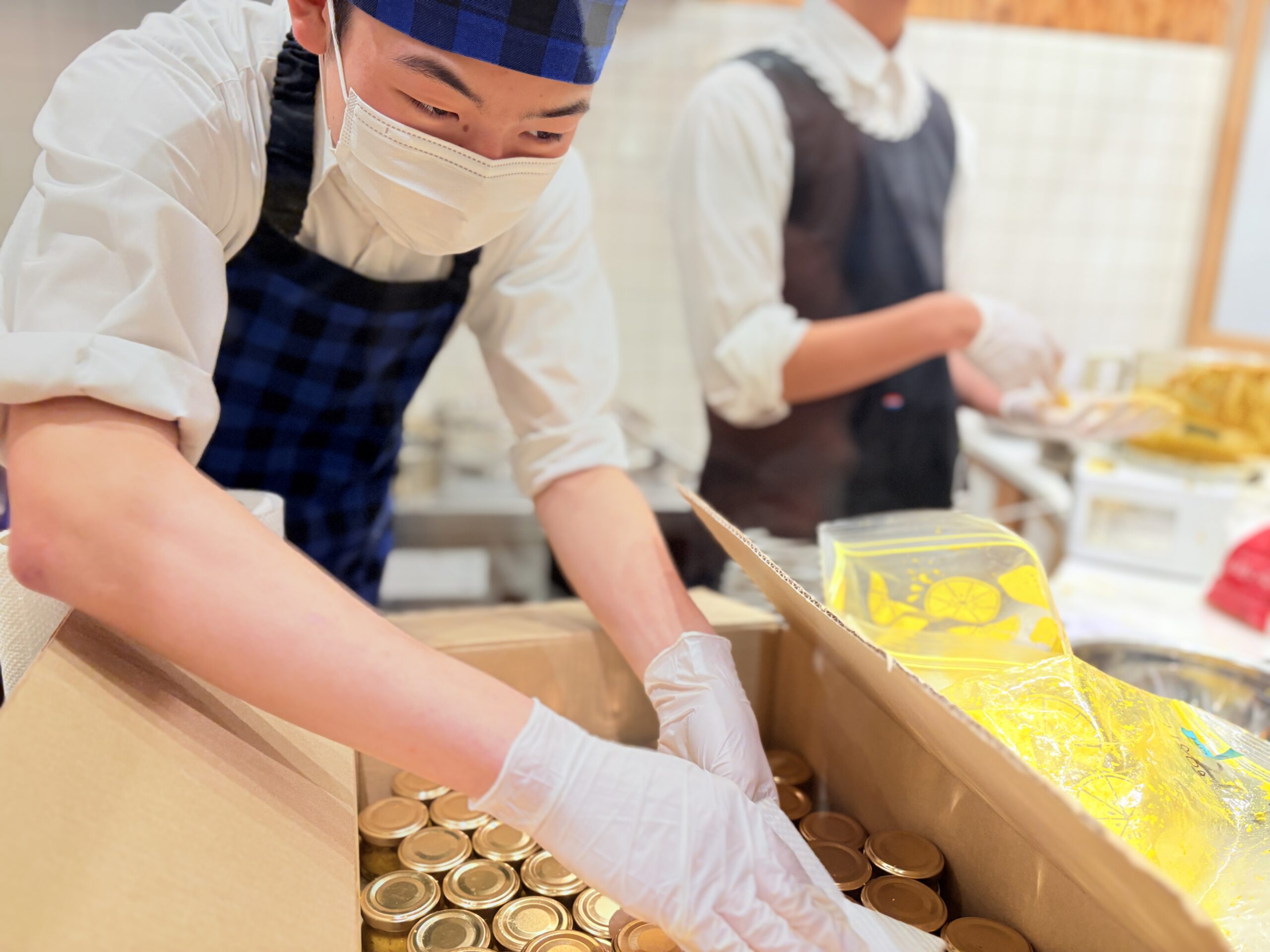 毛呂山町の桂木柚子を使用し、とうがらしは今年も十色とうがらしファームにご協力いただきました。それぞれの色に個性があり、生徒たちは素材の違いや味の特徴を比較しながら制作に取り組みました。
