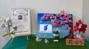 また、職員玄関のディスプレイも、生徒様方の卒業・入学・進級をお祝いする気持ちを込めて、満開の桜をイメージした飾りを作成いたしました。
