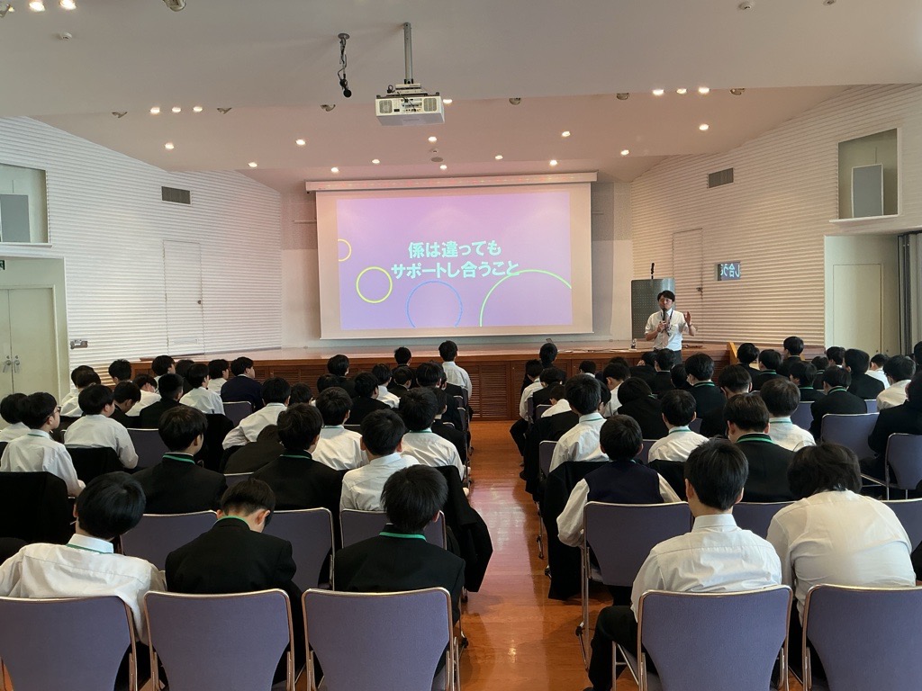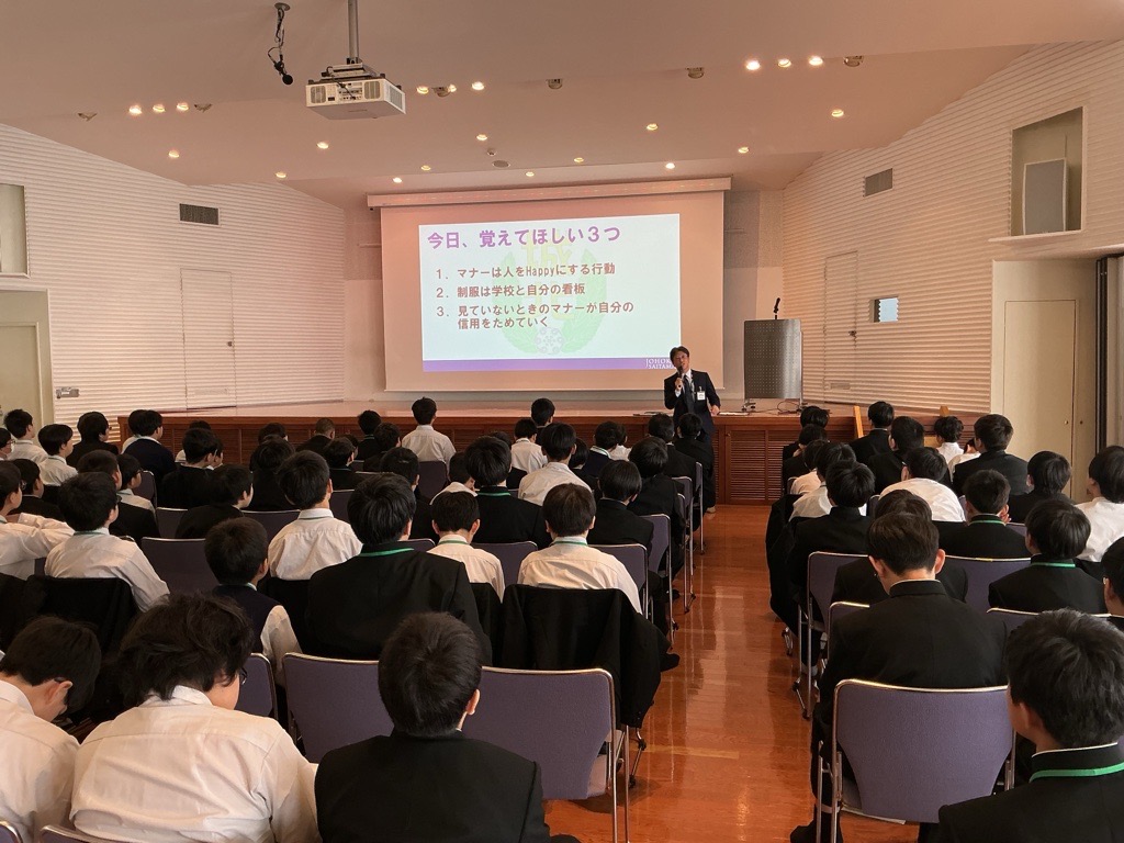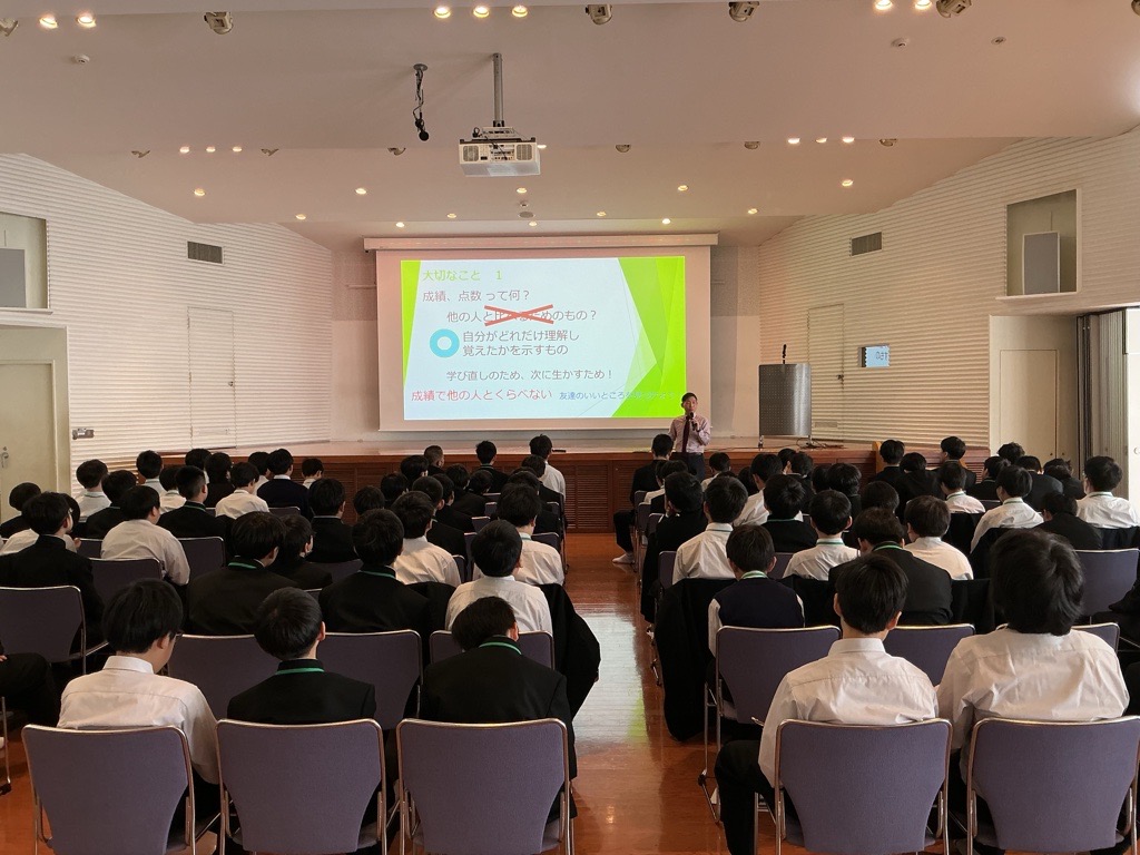 本日は、教務部長より「学びについて」、また、副校長より「公共のマナー」についての講話がありました。生徒たちは、授業やテストは他者と比較するためにあるのではなく、「学び続ける」姿勢そのものにつながることを知りました。また、自分のあり方やルール・マナーについて真剣に考えていました。