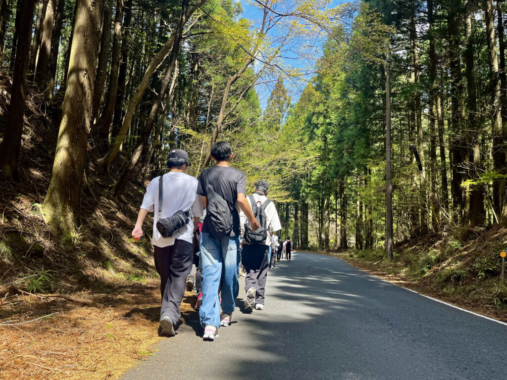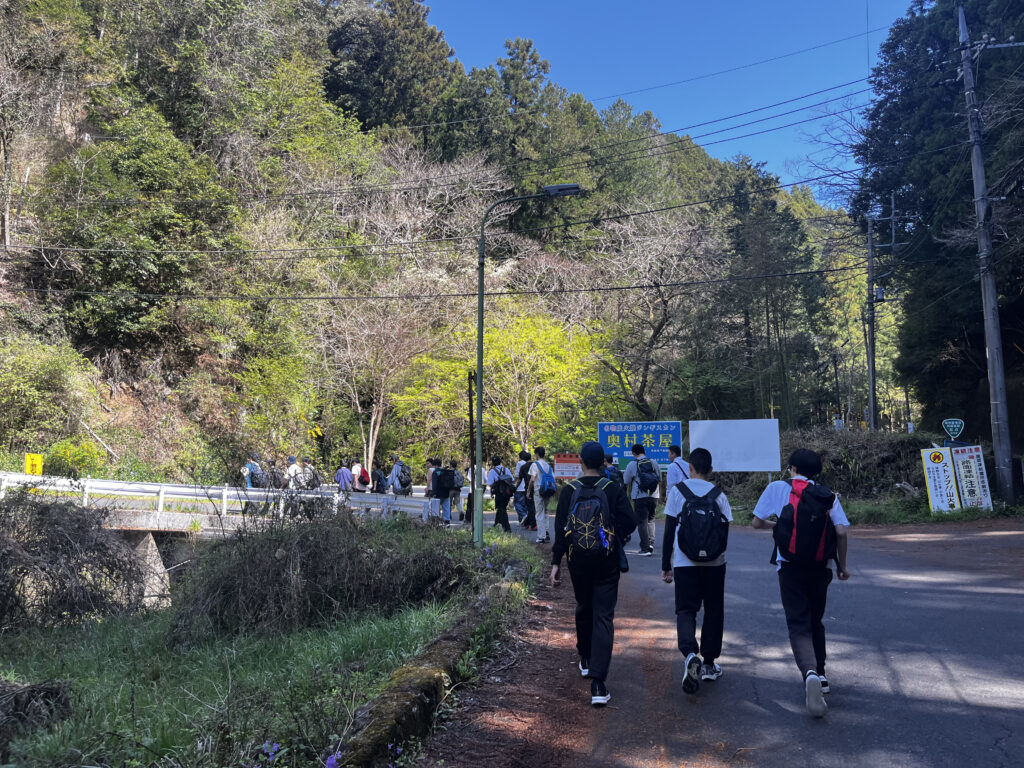 初めて長距離を歩く1年生は、出発前こそ緊張した表情を見せていましたが、先輩たちがそばにつき、声を掛け合いながら進んでいきました。